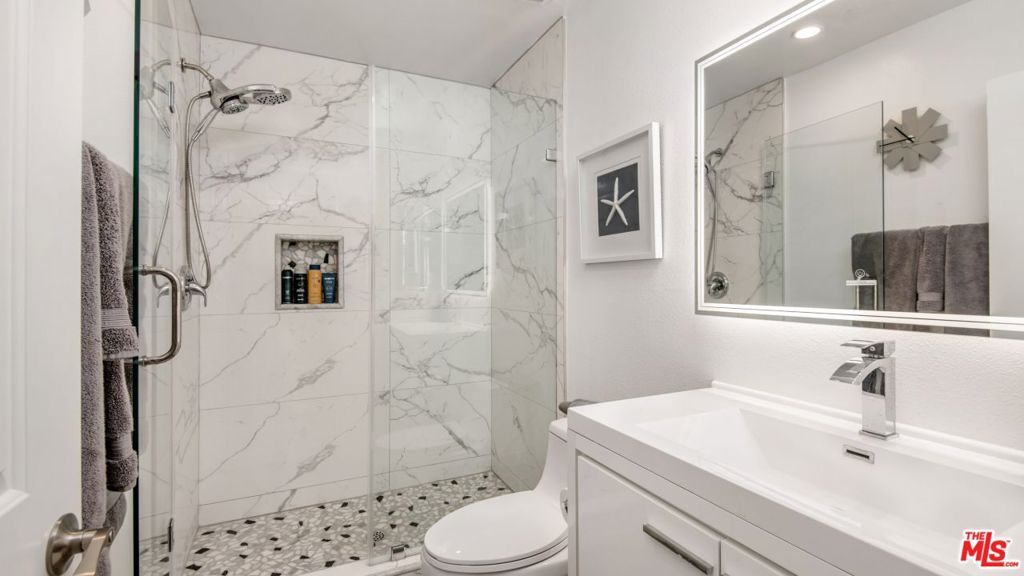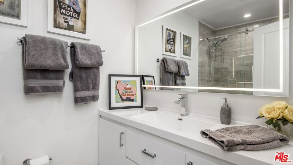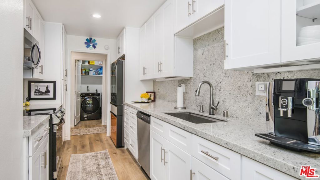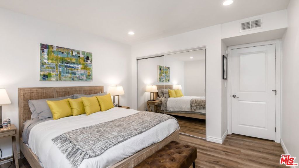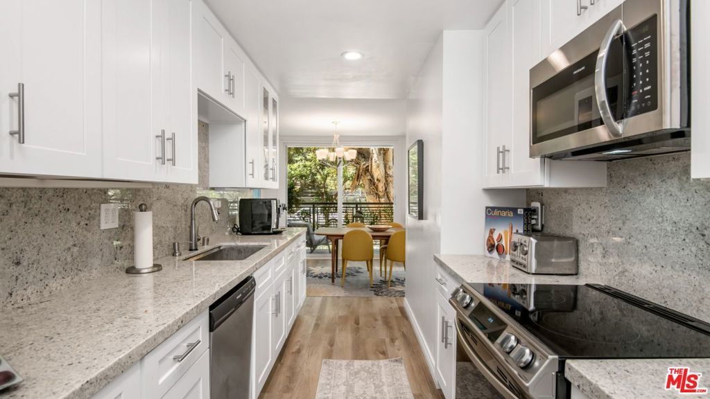 Rare opportunity in the coveted 90210 Beverly Hills zip code! This fully renovated 3-bed, 2-bath condo has had more upgrades that we can list, including all "Smart" devices of Alexa lighting, Nest thermostat, Schlage lock, Hunter Douglas electric blinds, and brand-new Samsung appliances (including a spectacular "Bespoke'' model fridge!) all operated from anywhere in the world, or by a simple voice or touch command in the condo. Other brand-new appliances include washer and dryer, microwave, and high-end electric stove with induction cooktop. Dishwasher, under cabinet lighting, garbage disposer, fresh Shaker cabinetry, touch-sensitive faucet, granite countertops and backsplash, and pantry with pull-out shelves complete the galley kitchen package. Other improvements include new MBR closet organizer and cabinets in laundry room and in-suite storage room/pantry to maximize what is already an abundance of storage space in this bright and airy unit, made possible by its corner main-floor location and 30-foot balcony overlooking Jacaranda tree-lined Palm Drive (with a magnificent Eucalyptus that is a piece of art in itself!). Recessed LED lighting; modern bathrooms with European vanities and LED lighted mirrors. Third bedroom is spacious and stunning, with a modern sliding door and mirrored wall just waiting to be your den, office, media room or bedroom. Living room and dining rooms each have sliding door access to the front balcony. Includes premium spacious two-car side-by-side secure underground parking spaces. The intimate 15-unit building itself was just this year renovated with new cladding, balconies and landscaping and all those improvements have been covered in already-paid special assessments! Walk to the most fashionable shopping, world-renowned restaurants, best health facilities, educational, entertainment and cultural events. Furnishings are negotiable. This home is a treasure, make it yours today!