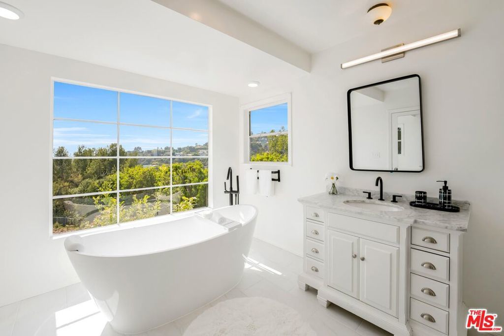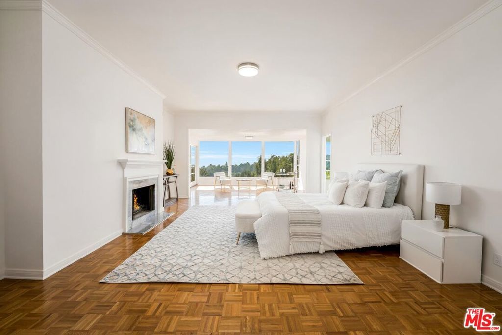 Private Brentwood Estate with ocean views spanning from Santa Monica Bay to Palos Verdes Peninsula, and Catalina. Across the canyon from the World-Famous Getty Museum, this custom built home boasts a perfect open floor plan, perfect for entertaining.It's the perfect party house with gated off street parking for 20 cars. The 3 newly remodeled bathrooms have new fixtures, tile floors, and showers. The 3 bedrooms have also been newly remodeled. There is also a maids bedroom, making it 4 bedrooms and 4 and a half baths. The grand sized master bedroom features its own fireplace and view of the city, and the newly remodeled master bath features elegant standalone tub, primed for relaxation.