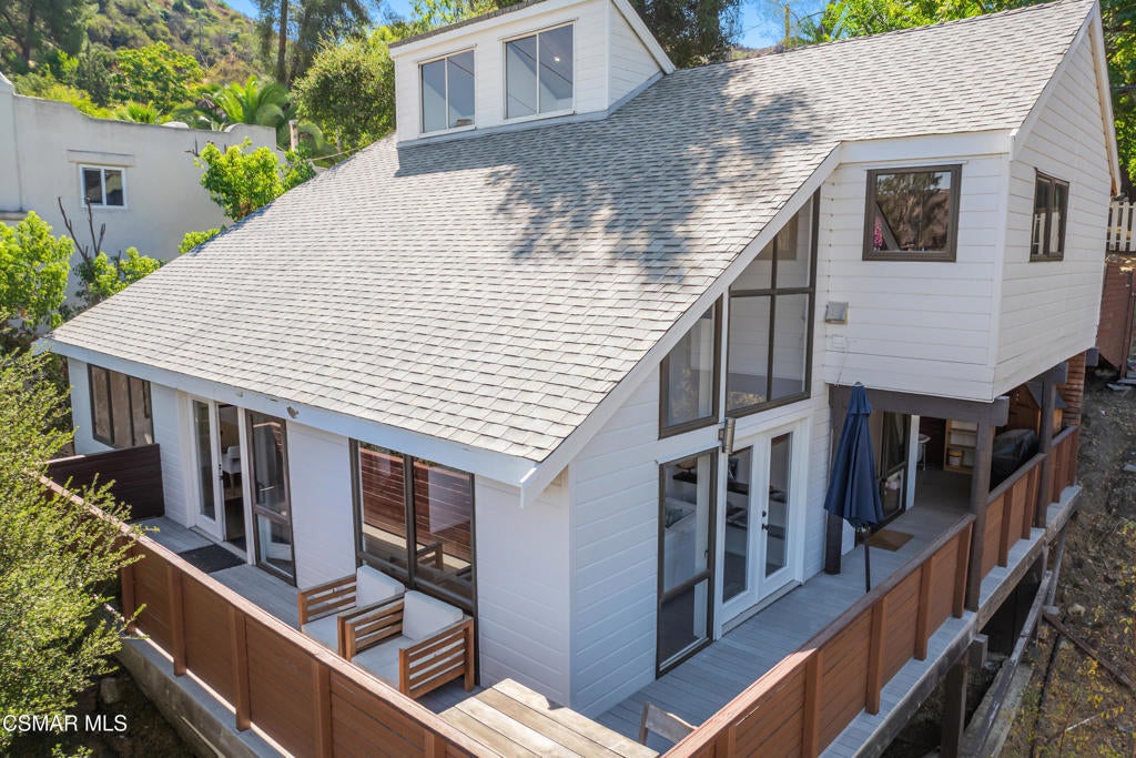 Live like you're on vacation all year long in this beautiful Malibou Lake hillside property. Situated on a double lot (2 separate parcels) with picturesque views and offering unlimited creative uses, you'll love this unique, multilevel property. Watch the seasons change on wrap-around decking, or spoil yourself while taking a hot bath in the vintage outdoor clawfoot tub. The reimagined space offers 3 bedrooms, 2 baths, light and bright gathering areas, wood plank flooring and vaulted ceilings. The updated open kitchen is an engaging spot to prep the best meals with a huge center work area and stainless appliances. Unforgettable dinners are served in a special dining room blessed with tree top vistas and warmed by natural sunlight. The bedrooms and baths were recently remodeled with a cool modern style and the restful vibes of the living room round out this eclectic masterpiece. The Malibu Lake area is set in the Santa Monica Mountains and offers hiking and a multitude of outdoor adventures. If it's your time to connect with nature, this could be your perfect home.