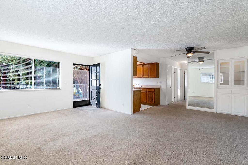 This charming top-floor condo features 2 bedrooms and 1 bathroom in a highly desirable area of Ventura. Just 10 minutes from stunning beaches, the freeway, and local shopping, it also offers easy access to Port Hueneme military base, only 20 minutes away.The bright and airy unit boasts picturesque tree top and park views, as well as, pee-a-boo views of the mountains from its elevated position. The primary bedroom includes a spacious closet, while a few recent upgrades add to the home's appeal, including a new oven, a new ceiling fan in the dining area, and a beautiful new vanity and lighting in the bathroom. In addition, there is a shared garage with additional storage space, and community pool and paths.Whether you're a first-time buyer or looking for a great investment opportunity, this condo is a fantastic find!