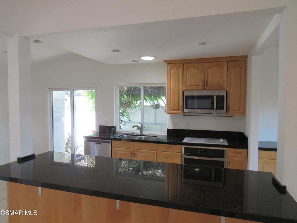 Seller says submit your reasonable offer..Reduced , great price per sq footage, Good Opportunity and Potential .Best Views and VALUE in Newbury Park under $900,000 for a single story home with +1700 sq ft freshly painted inside and outside, lots of natural lite, solar tubes inside, great OPEN Floorplan with smooth vaulted ceilings with recessed lighting in the living room, upgraded Kitchen area with island and upgraded cabinets, granite counter tops and appliances. laminate flooring with tile thru out, / dual pane windows, inside laundry room, wood burning fireplace, central air and heat It's about the Ambiance of this home, with really nice views all around the property, inside and outside... privacy, serenity, side yard for special moments, private rod iron fence in the large front courtyard to view Boney Mt.. plenty of room on the side for possible rv or 3rd car garage, plenty of parking. all the bedrooms have ceiling fans and mirrored closet doors. note the garage was converted to a family room with permits and reflected in the sq footage, note there is no garage, but can be converted back for about 4k-5k.. original garage door is still there.. here is your chance to put your own spin and enjoy the views