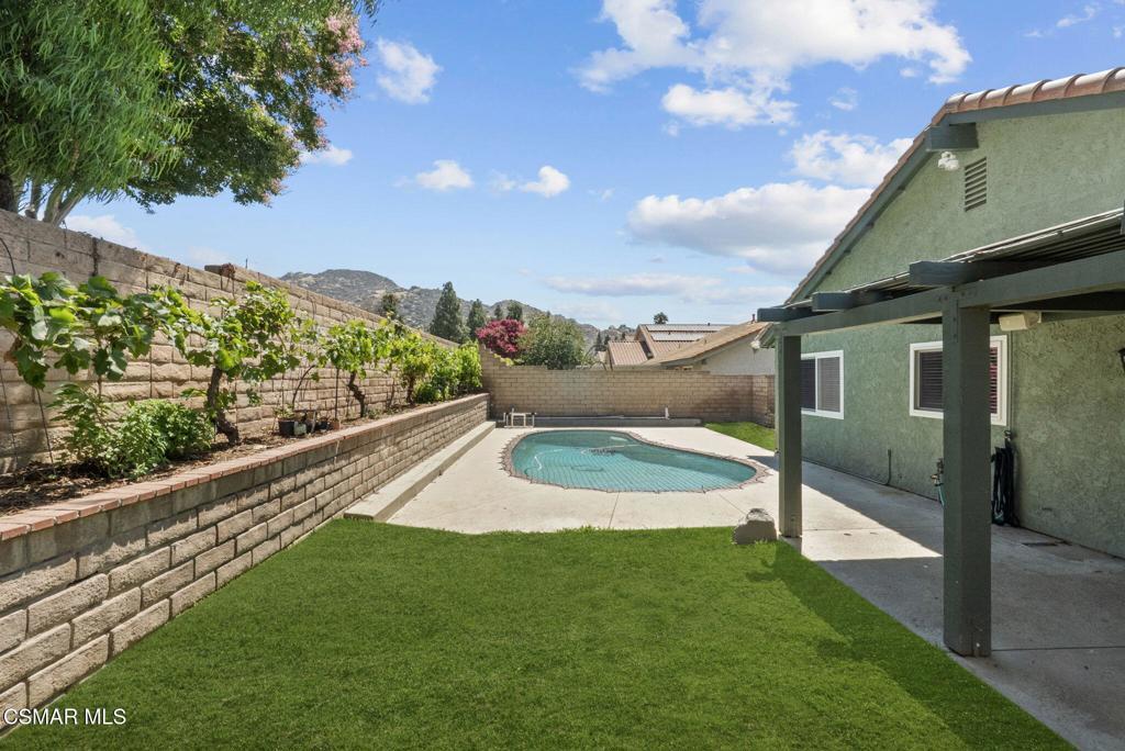 Welcome home to this upgraded East Simi Valley home with Pool, Views and large RV parking.This spacious and well-maintained 4-bedroom, 3-bathroom home offers 2,037 sq. ft. of living space on a 7,405 sq. ft. lot in a quiet, highly desirable East Simi Valley neighborhood. A downstairs bedroom and bath bathroom provide ideal flexibility for guests, extended family, or a home office.The remodeled kitchen features granite countertops, a double oven, and quality cabinetry. High ceilings and ceiling fans in most rooms enhance comfort, while upgraded electrical, dual-pane windows, solar, and a new roof offer peace of mind and energy efficiency.All bathrooms have been tastefully upgraded, and the home includes custom closet built-ins for smart, efficient storage. The backyard is built for entertaining, with a sparkling pool, porch misters, grapevines, herb gardens, and a spacious covered patio. Storage is outstanding--with a large shed, ample closet space, and RV parking complete with power hookup, sewer cleanout, and a new sewer line. The seller previously parked a 34' fifth wheel travel trailer with a 12.5' side-by-side behind it.Enjoy convenient access to local hiking trails, stunning views of the Santa Susana Mountains, top-rated schools, and quick freeway connections. This home is move-in ready and checks every box--location, upgrades, space, and flexibility. Some photos have been virtually staged.