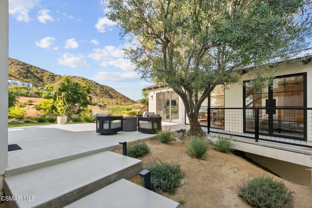 Mulholland Canyon Ranch Perched high above the Malibu coast and canyons, Mulholland Canyon Ranch is a rare and stunning equestrian retreat offering awe-inspiring mountain and ocean views across approximately 3.26 serene acres. This beautifully crafted estate includes 4 bedrooms and 4.5 baths. A thoughtfully designed 3 bedroom, 3.5 bath main residence and a dreamy 1 bedroom, 1 bath guest house, blending modern luxury with rustic charm. Step inside to find soaring ceilings, concrete floors, concrete counters, striking steel framed doors and windows that bathe the home in natural light. Enjoy breathtaking views and fresh breezes through expansive glass openings that blur the line between indoors and out. The luxurious primary suite features dual showers, a spa-like soaking tub, and a private balcony that sits high above the lush, manicured grounds - framing a gorgeous view of the ocean. Each bedroom offers a private en-suite bath and access to a shared balcony. The family room features built in closets, a dedicated desk area and its own private balcony with gorgeous views. Outdoors, indulge in a resort-style setting with covered seating, a sleek wet bar, outdoor shower and a tranquil reflection pond accented by a cascading waterfall. The lush, mature landscaping showcases stately olive trees and a vibrant tapestry of foliage, creating a serene and private retreat. Designed for the ultimate Malibu lifestyle, the property features versatile equestrian facilities including a lighted eight-stall barn with a tack room, multiple turnouts, two large corrals and a riding arena. A large covered and fenced structure offers flexible use as a stylish chicken coop, dog kennel, or creative outdoor space. With its celebrity pedigree and a park-like setting that is peaceful and private, this fully fenced and double gated property is the ultimate blend of nature, luxury and lifestyle, offering a rare opportunity to own a true Malibu retreat.