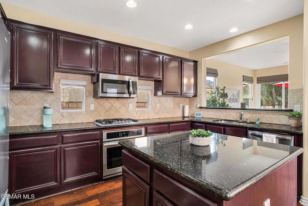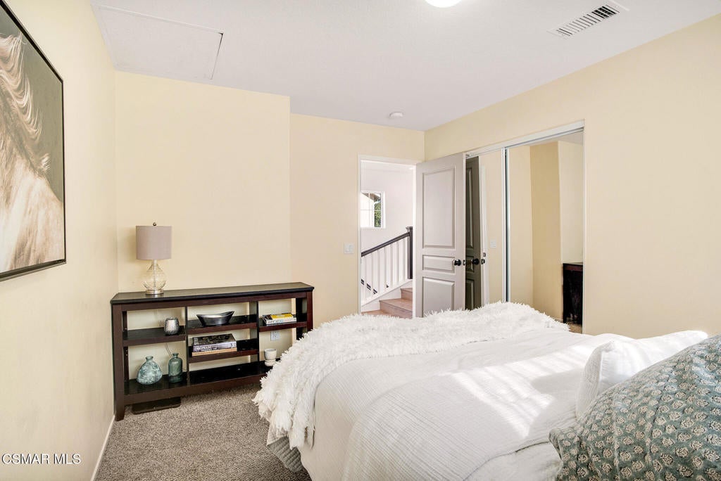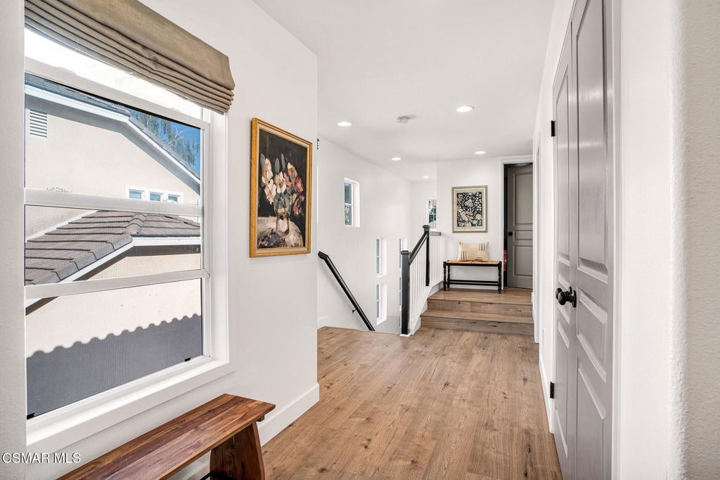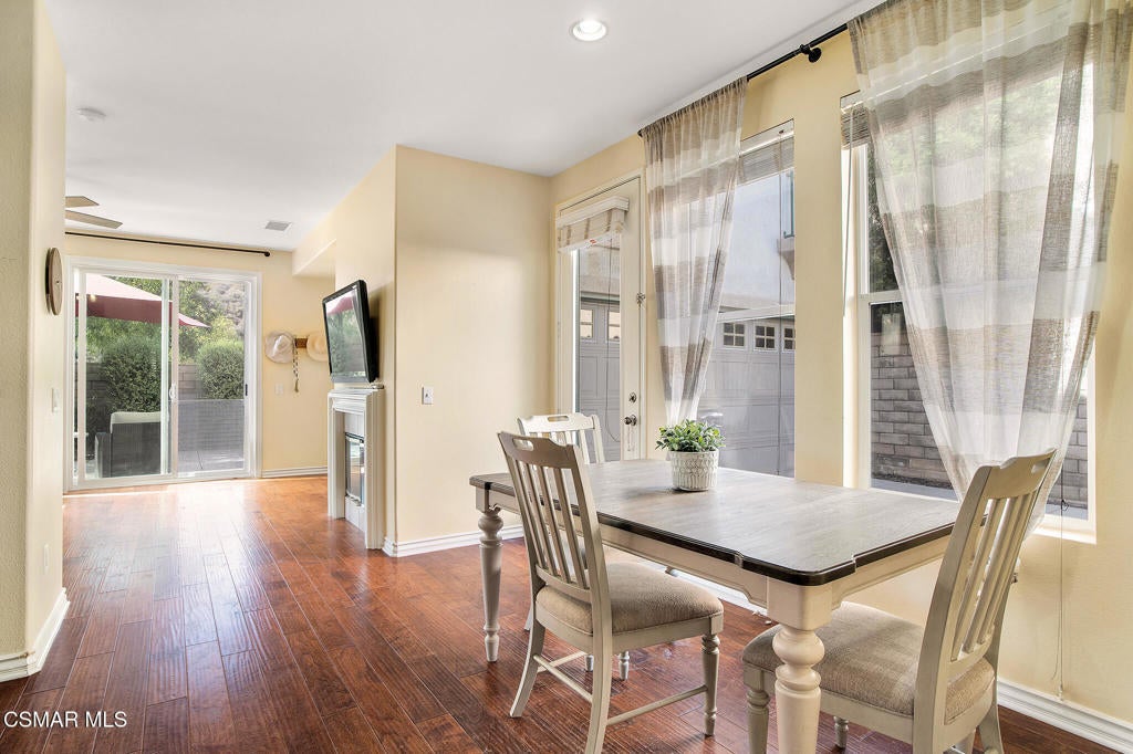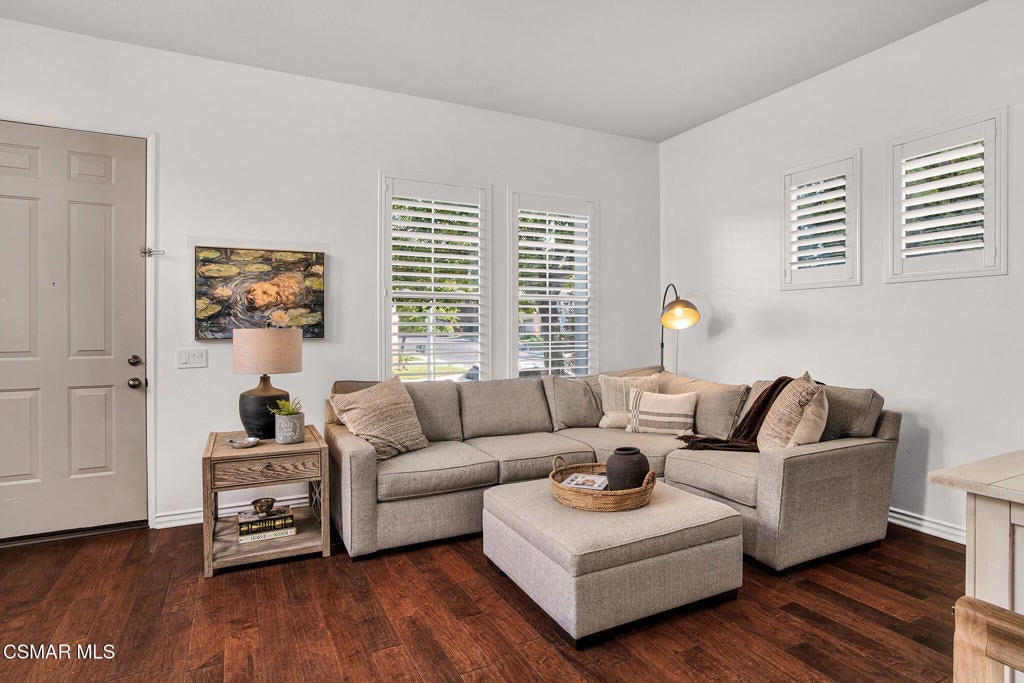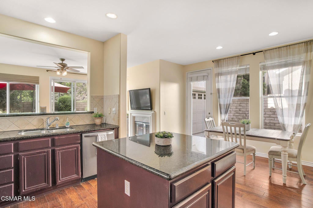 Here's your chance to own a home in the highly sought-after guard-gated Long Canyon Windmill community at Wood Ranch--a neighborhood known for its tree-lined streets, resort-style amenities, and easy access to parks, trails, golf, shopping, and dining. Offering 4 bedrooms, 2.5 baths, and 2,069 sq. ft. of living space on a 3,484 sq. ft. lot, this home combines comfort, style, and convenience in one inviting package. Step inside to a light-filled living room with soaring ceilings and warm wood flooring that set the tone for the open, welcoming layout with a downstairs remodeled powder room. The granite kitchen features dark wood cabinetry, a tumbled travertine backsplash, a center island with storage, stainless steel appliances, and a roomy pantry--perfect for both everyday meals and entertaining. Just off the kitchen is a dining area with three large windows, creating a bright and comfortable space for enjoying meals. The kitchen flows seamlessly into the family room, where a tile fireplace adds a cozy touch, and sliding doors open to a backyard with a concrete patio for outdoor dining and block wall fencing for privacy. Upstairs, wood-like flooring extends through most of the space. The primary suite is a peaceful retreat with hilltop views, a large walk-in closet, and an ensuite bath with a soaking tub, separate shower, and dual-sink vanity. Three additional bedrooms and a full hall bath with dual sinks provide plenty of space for family, guests, or a home office, and the upstairs laundry room adds convenience. The front yard features lush landscaping with terracotta tile accents, and the property includes a direct-access two-car garage. As a Long Canyon resident, you'll enjoy four sparkling pools and spas, three clubhouses, a fitness center, tennis courts, playgrounds, and scenic walking and biking trails--all within a secure, beautifully maintained setting.