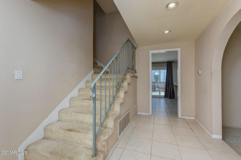 Spacious 4 Bedroom home with double RV access!! Over 40 ft paved RV access behind the gates on both sides. Inside is a sprawling 2 story home with a downstairs bedroom and bath. The property features a living room with a fireplace, a large formal dining room and a kitchen with newer stainless appliances including a double oven, breakfast bar, tile floors & recessed lighting. The kitchen opens to the family room. Upgraded downstairs bath with a tiled tub/shower with glass doors and recessed lighting. 2 upstairs bedrooms both have sliding glass doors leading to a balcony area. Upstairs hall bath with newer granite counter & vanity. There is also newer fixtures in the hall bath. Spacious primary bedroom with attached bath. All upstairs bedrooms have mirrored closet doors, ceiling fans, six panel doors and recessed lighting. Other features include dual pane windows & sliders and a newer A/C & heater. Private backyard with a newer stamped concrete patio and RV access area. There is also some newer fencing in the backyard. Underlayment (paper) replaced on the tile roof in 2024. Great opportunity!!
