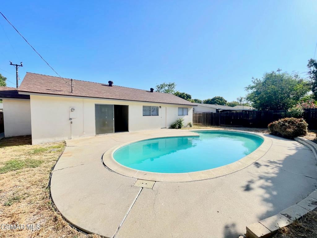 Welcome to this 4-bedroom pool home on Stinson St with a NEW roof! The primary suite features its own bathroom with walk-in shower, while a secondary bedroom offers direct pool access. The spacious living room has an extra-wide sliding door, and the dining area sits just off the updated kitchen with new cabinets, counters, stove, and hood. Enjoy new vinyl plank flooring throughout, 2 full baths, and convenient garage access with laundry hookups. 2-car garage included. This home is ready for your final touches!