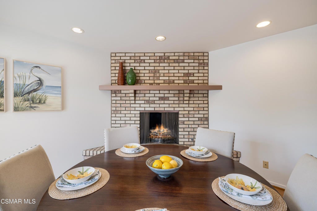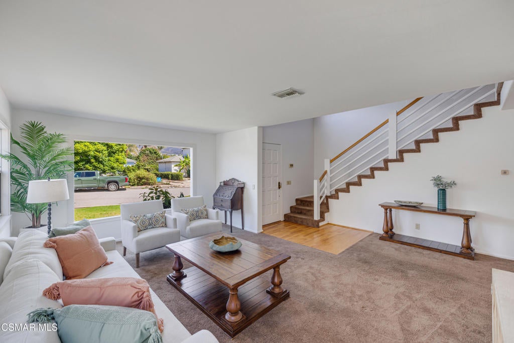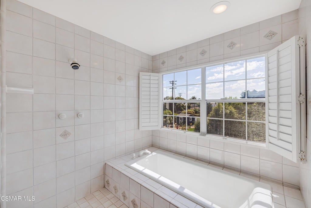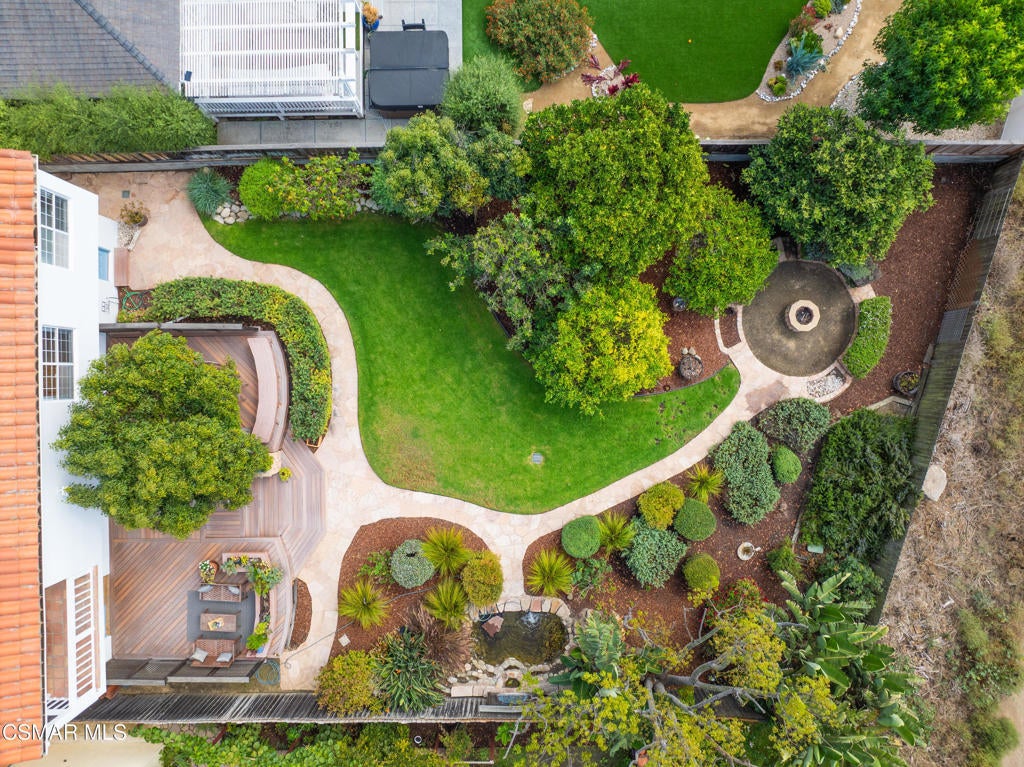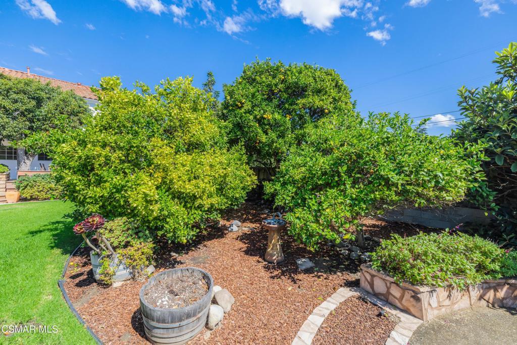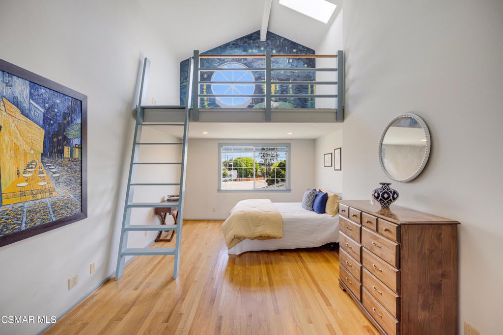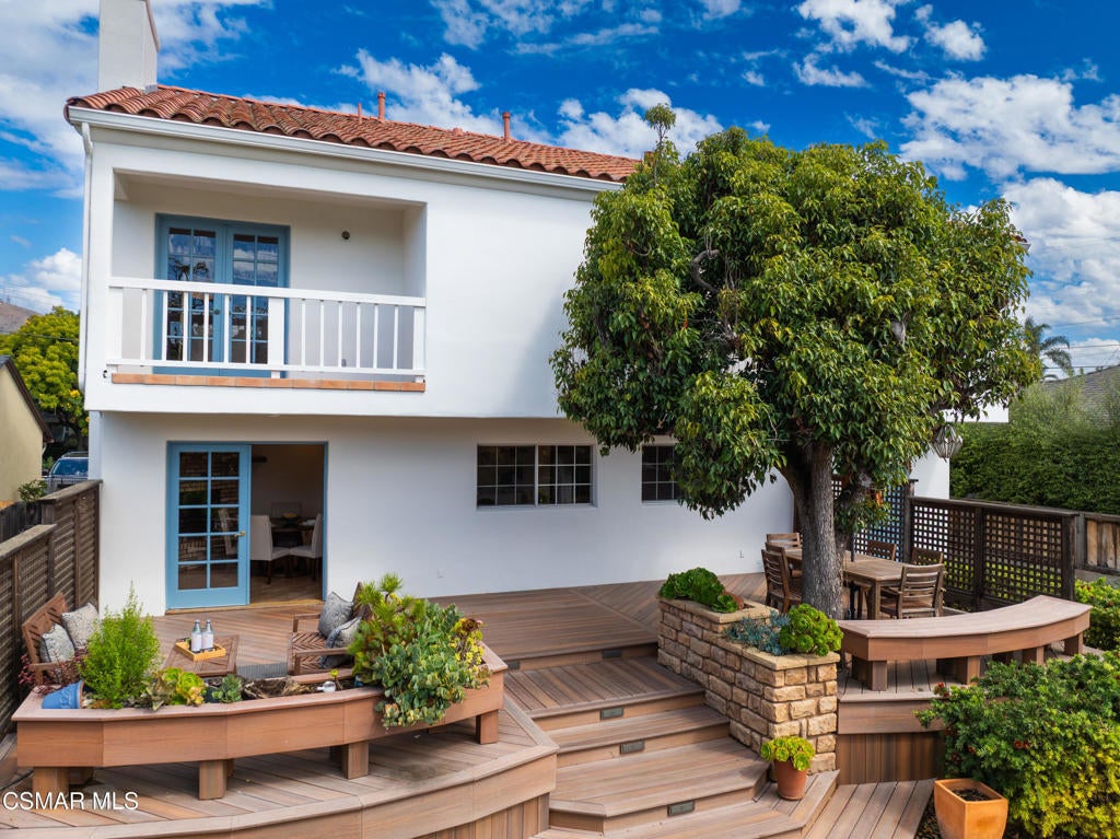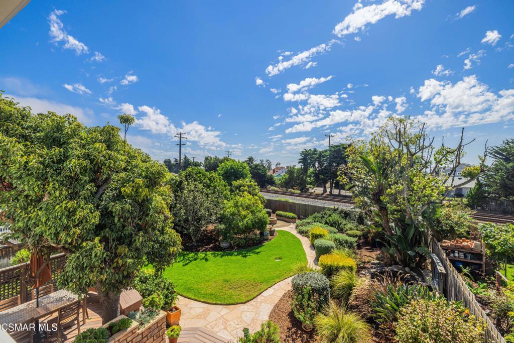 Live near the Sun and Surf like a dream come true. Striking Spanish Revival inspired Ventura coast home, originally built in 1949 and re-built new in the late 1980's. Offering approximately 3,001 square feet across two levels, this residence combines timeless character with modern comforts. The main floor features a spacious den or office with a full bath, a formal living room with a large picture window, and a generous kitchen designed to gather everyone in the heart of the home. Kitchen highlights include a charming fireplace, commercial grade stove with griddle, ample cabinetry, extensive counter space, and multiple windows and French doors that open to the verdant backyard. With the fire glowing and conversations flowing onto the patio, this kitchen is an entertainer's dream. A dramatic staircase leads to the upstairs bedrooms, all filled with natural light. Three bedrooms share a well appointed hall bath with dual sinks and a full tub shower. One whimsical bedroom features a loft with a picture window, sparking the imagination. The dramatic primary suite offers soaring ceilings, a massive walk in closet, and a private study or office with its own brick fireplace. Step out onto the balcony and enjoy views of the lush garden below and, on clear days, the sparkling Pacific Ocean. Located near the historic coastal railway line passing 4 times daily, this home offers convenience and charm without heavy freight traffic. The trains pass quickly typically under 30 seconds. Additional features include a three car tandem garage with cabinetry, an indoor laundry room, and a backyard designed for both beauty and ease of living. Multiple seating areas, a water feature, a gas fire pit, citrus trees, and an easy care deck create a magical outdoor setting. This remarkable property invites you to immerse yourself in coastal living, with the beautiful beach less than a mile away.