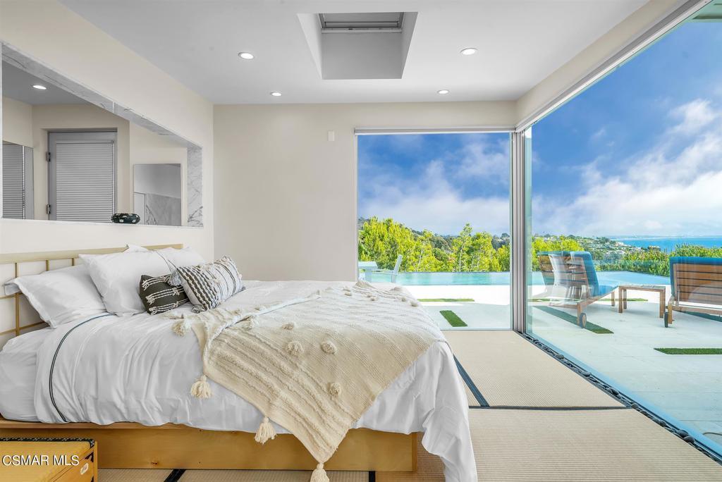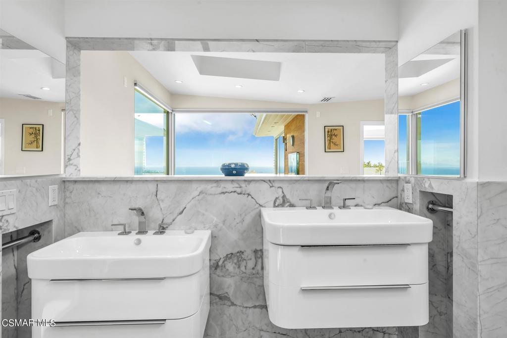 Located on the pinnacle of the desirable Sunset Mesa community, this striking contemporary beckons with panoramic ocean, coastline and mountain views throughout. The modern and updated kitchen boasts beautiful Lapis Lazuli stone and snow white marble, along with top of the line appliances. The welcoming floor plan offers high ceilings and a great room that opens to the custom outdoor entertainment area. Enjoy the amazing sunsets from various outdoor seating areas, including a fire pit. Other features include a freshwater indoor/outdoor aquarium wall, a putting green and an amazing 60 foot lap pool. An incredibly flexible floor plan offers the opportunity to lock off a separate 1 Bd + 1 Ba apartment with living area and full kitchen. This magnificent home offers a very quiet, private and serene setting while being conveniently situated minutes away from wonderful beaches, shopping and dining.