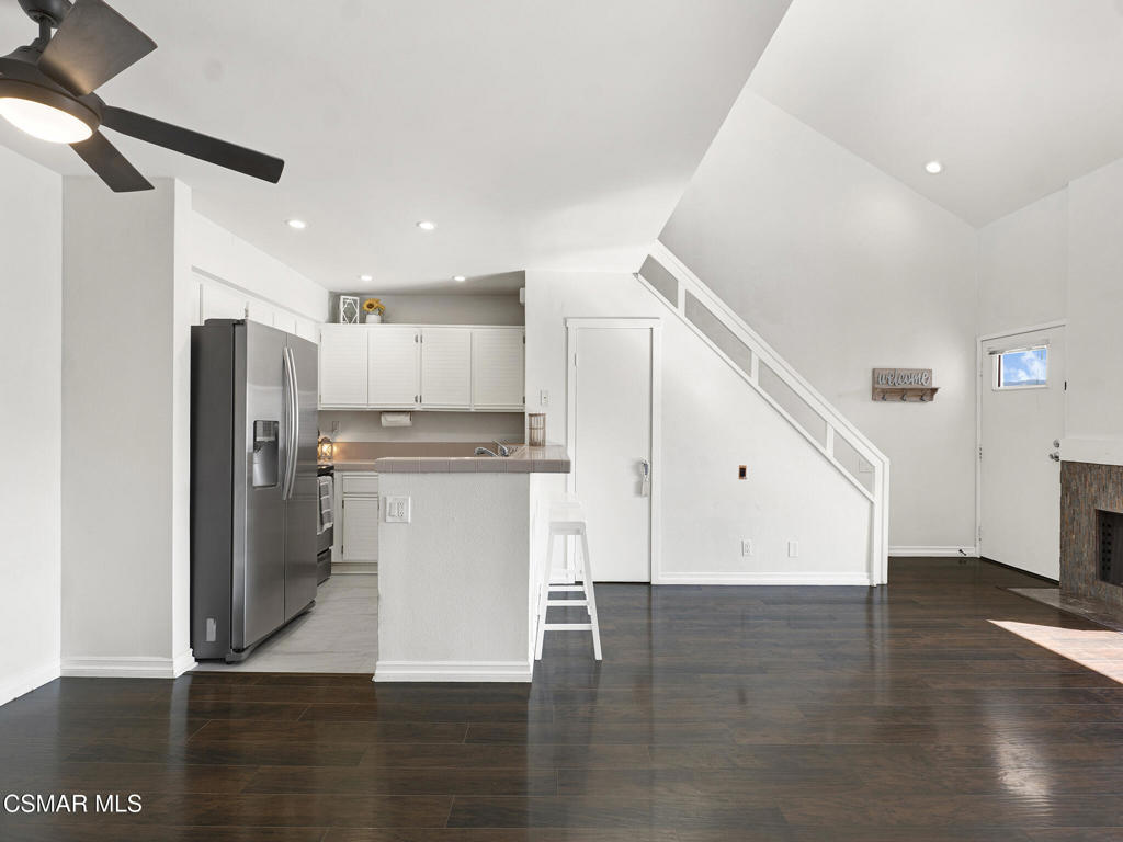 This is the sign you have been waiting for! A light and bright spacious condo with a huge open loft and two, yes 2 outdoor living spaces!! Upon entry you are greeted with a light and bright open floorpan and high vaulted ceilings. The kitchen offers a breakfast bar and dining area overlooking the family room, fireplace and main floor balcony. Also on the main floor is the primary suite that includes a large bathroom with plenty of counter space, walk-in closet and separate shower room. You also have your very own in unit laundry closet. Upstairs you will find a large open bright loft and a slider leading to yet another private outdoor deck/roof top patio ready for sunbathing, BBQ or outdoor dining while enjoying our fabulous California weather and sunsets. The loft is perfect for an office, game room, extra sleeping or guest quarters. This particular back unit offers one of the best and quiet locations in the complex being just steps away from one of the 2 pools as well as the extra allotted parking area. Which your guests will just absolutely LOVE when they come to visit! Also includes a private 1 car garage, central A/C, recessed lights and so much more. This fantastic condo is such a great find located in the beautiful Simi Valley Perfect for the commuter as well! Don't hesitate to check this one out!!