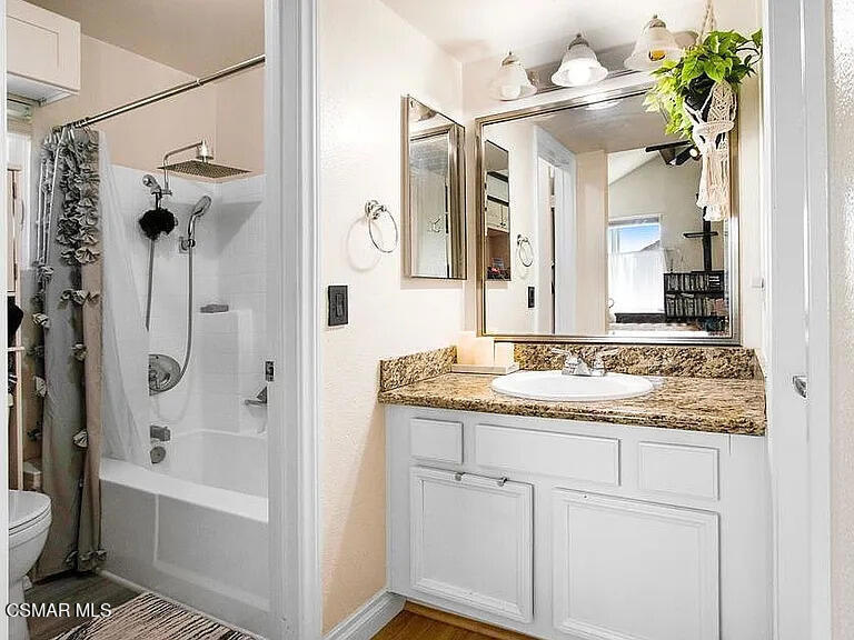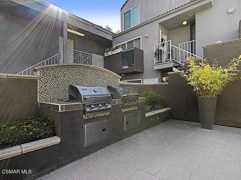 Welcome to The Entourage, one of Burbank's most sought-after condo communities, located in the heart of the Media District just moments from Disney, Warner Bros., and NBC Studios. This charming 1 bedroom 1.5 bath condo on 2nd floor is the BEST VALUE in BURBANK and overlooks the peaceful courtyard and offers ultimate privacy with no one above you. Bright and move in ready this condo features laminate wood flooring and track lighting in living room, granite countertops, stainless steel appliances and tile flooring in the kitchen that opens to the dining and living area. The first floor also has a 1/2 bath and balcony. On the 2nd floor you'll find a spacious primary suite with high ceilings, built ins, a vanity area separate from the bathroom with granite counter top and a large walk in closet! Newer laminate flooring has been installed throughout as well as ceiling fans and other upgraded finishes. The community boasts a gym, spa / BBQ lounge area, gated parking, laundry room, and is situated on a beautiful tree lined street with ideal proximity to studios and shopping / dining. MUST SEE !