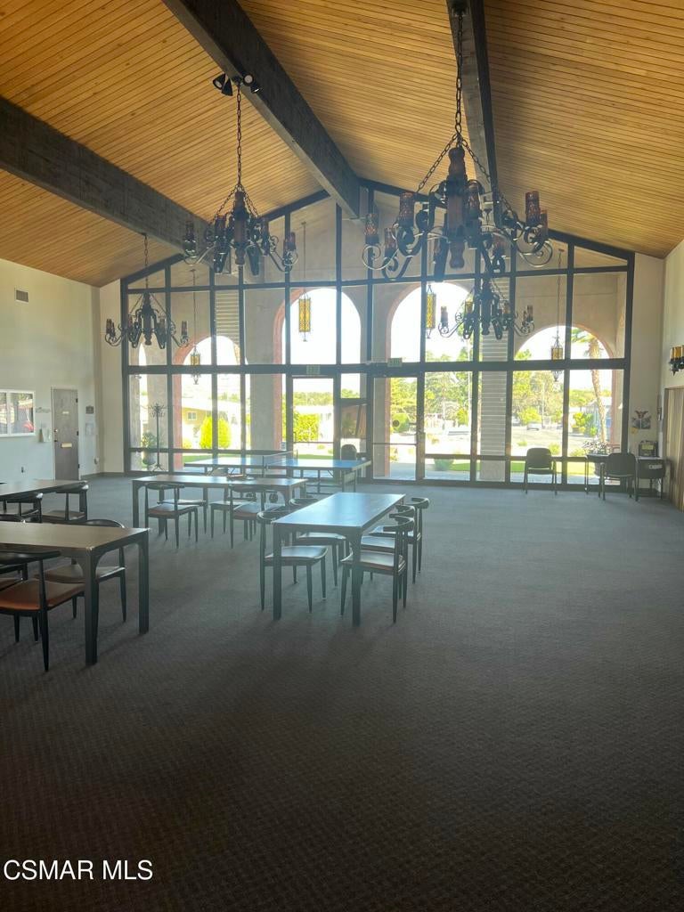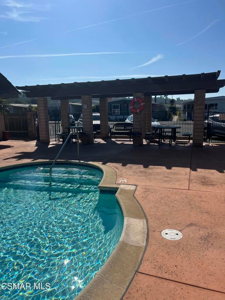 Located in the Ojai Villa Estates (55+) Park, towards the center of the park with easy access to the clubhouse and bike trail. The living room has vaulted ceilings. Newer appliances and flooring in the kitchen with dual-pane windows throughout. The primary bedroom has a very large closet with an attached bathroom. From the front porch, there are beautiful mountain views. This park requires buyer approval prior to purchase.