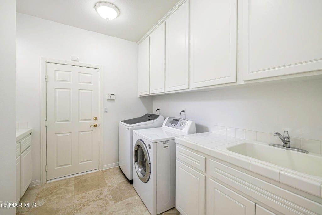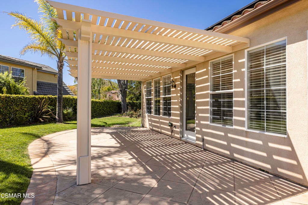 Enter into the 24 hour guard gated community at Woodridge Estates and you step into a calm, lush setting surrounded by beautiful hiking trails and stunning mountain views everywhere. This beautiful newer single-story home with an additional loft area is a true find. This 3,100 sq. ft. home features owned solar panels, an oversized grassy yard, a perfectly placed in ground spa, with a stunning location on the view side of the street. The primary suite with one potential bedroom is on one side of the house with the other two bedrooms with a jack & jill bathroom and powder room on the other. The spacious living space offers a formal living room, office/study area, formal dining room, and a large kitchen that opens to the family room. The high ceilings of this newer home make the home feel even larger than 3100 sq. ft.. The lot size is unusually large for Woodridge Estates and offers so many enjoyment options. Centrally located in Thousand Oaks close to schools, dining and shopping.