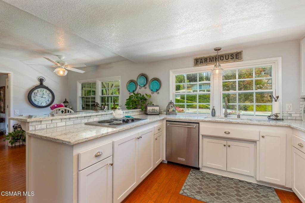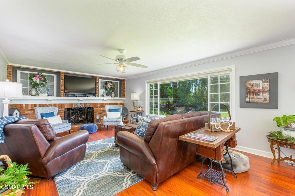 Welcome to this spectacular single level plan C model, in the coveted Kevington neighborhood of Thousand Oaks. This home offers, 4 bedrooms, 2.5 bathrooms, approx. 2,515 sq. ft of living space and situated on approx. 16,552 sq. ft lot with views. Great spacious floorplan offering remodeled chef's kitchen with adjacent eating area and breakfast bar.Large living room, separate dining room, huge family room with brick fireplace, wood mantle and a highlighted picture window looking out to the backyard. Some of the upgrades include dual pane windows & smooth ceilings. Concrete tile roof, York HVAC system & interior/exterior paint completed in 2020. All 4 bedrooms are at the far wing of the home. The large lot has tons of possibilities. Backyard offers large concrete patio with covered porch perfect for entertaining. Two car garage with direct access. Excellent central location within close proximity to top rated schools, parks, shopping, restaurants and hiking trails.