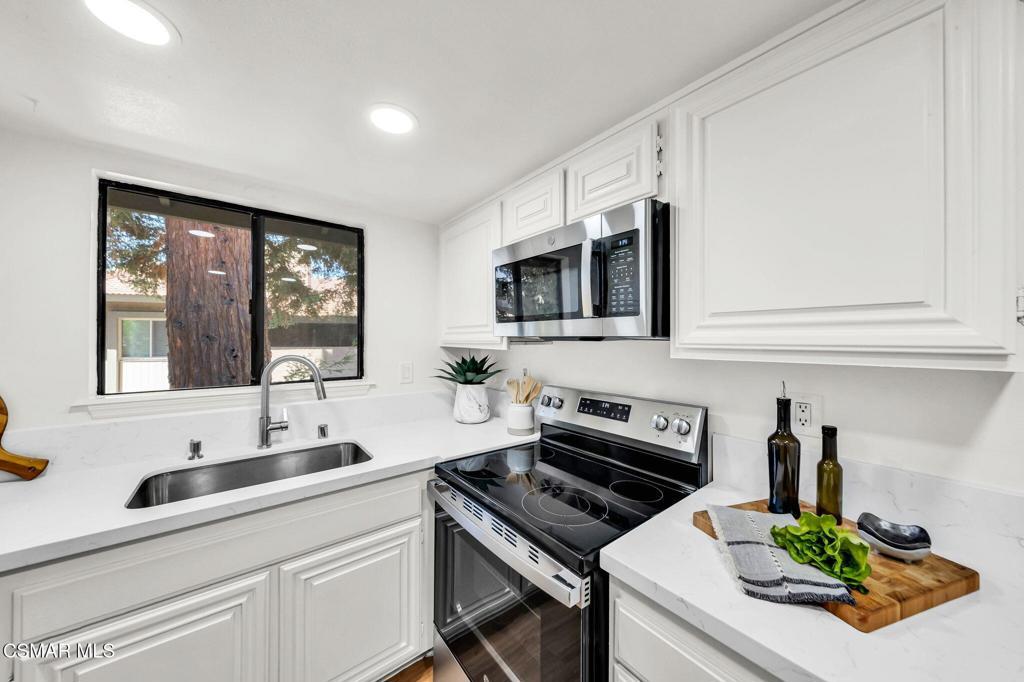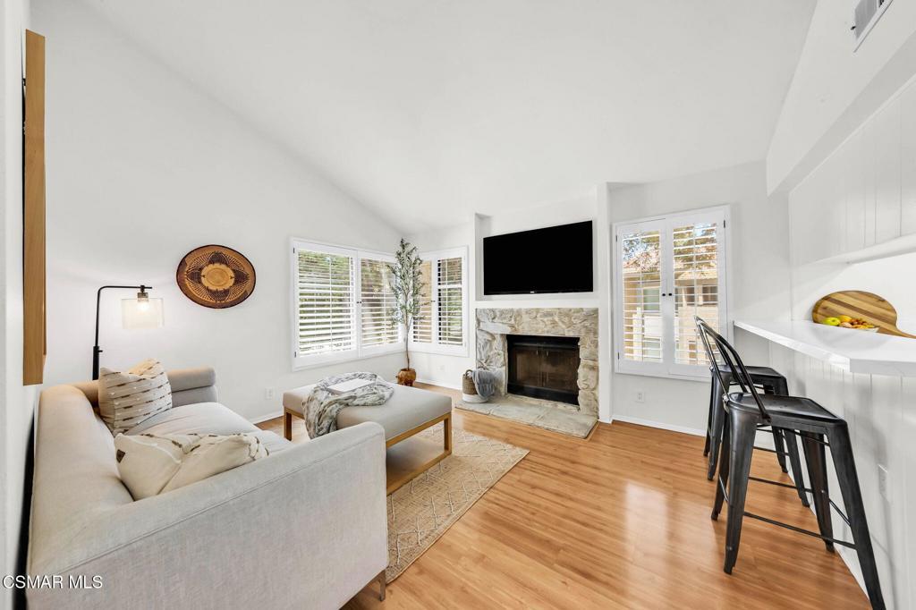 Seller Financing Available! If you've had your sights on Oaknoll Villas, the desirable 55+ community in Thousand Oaks, then you've got to see this stunning two bed, two bath, 1147 SF remodeled penthouse model that's the largest floor plan available. As you enter this bright and spacious home, located on the upper level, you'll immediately notice the vaulted ceilings, light-colored flooring, and the Zen feeling of this remarkable condo. This open floor plan has such a great flow, with the living room and dining room cojoined, then opens to the family room with fireplace, an abundance of windows with shutters, and an updated kitchen with quartz counters, additional seating at the bar, and new dishwasher, stove and microwave. For additional flow, the living room opens to a delightful balcony with tree-top views. Down the hall of this newly painted condo are the refreshed bathrooms with quartz counters, and two very spacious bedrooms with new carpeting. Another added benefit is the inclusion of the stackable washer & dryer in this move-in ready home. Oaknoll Villas has wonderful community amenities including pool, spa, clubhouse, gym, billiard room, card room, shuffleboard courts, yoga room, butterfly garden and dog park. The HOA includes trash, cable/internet, complimentary plumbing service, plenty of guest parking and landscape maintenance. This active senior community is centrally located and very close to nearby parks, Conejo Valley Botanical Garden, shops and restaurants, The Oaks Mall and the Hillcrest Center for the Arts.