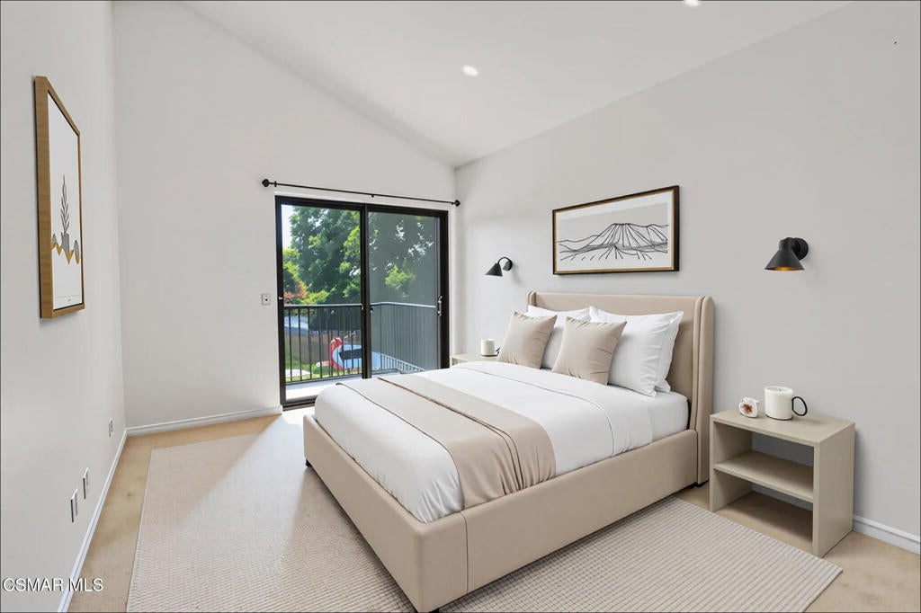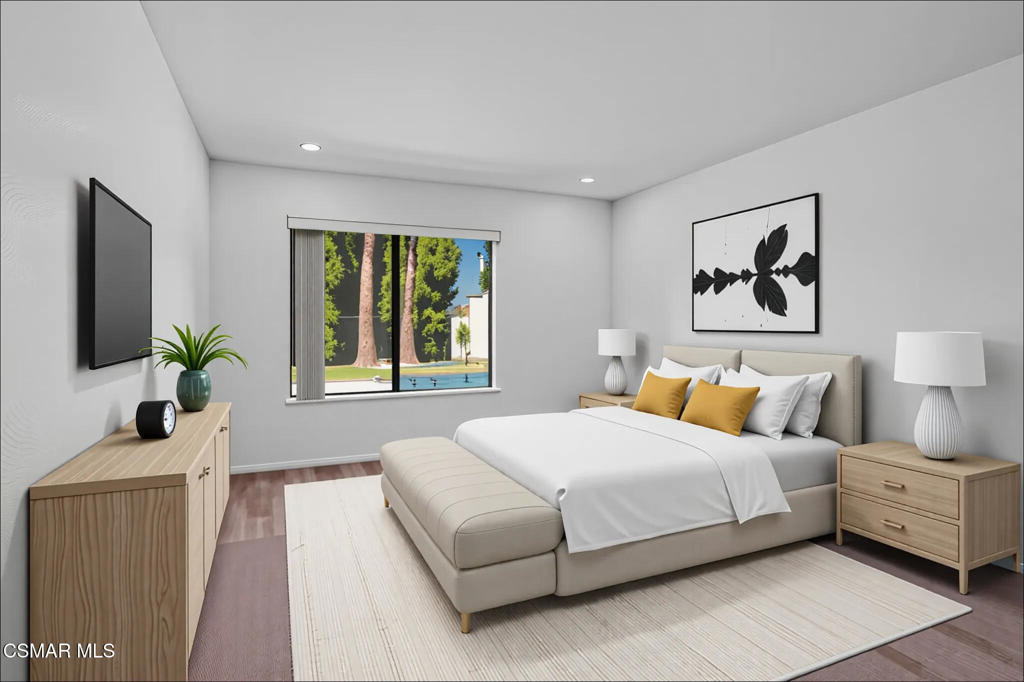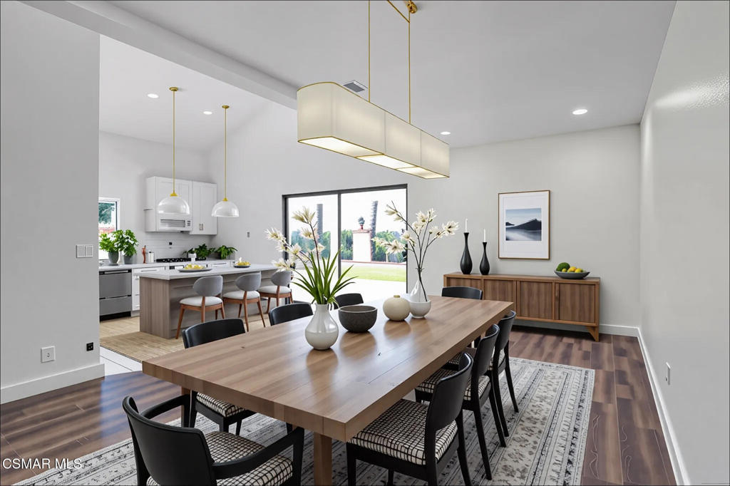Welcome to this stunning 4-bedroom, 3-bathroom home, tucked away on a quiet and private cul-de-sac in one of Western Simi Valley's most sought-after communities. With breathtaking views, a sparkling pool and spa (re-plastered in 2025), and an entertainer's dream backyard, this home truly has it all. Step inside to a grand living space featuring soaring vaulted ceilings, recessed lighting, and a classic brick fireplace. A flexible bonus area off the living room is perfect for a formal dining room or home office. The spacious kitchen opens to a large, versatile area that can function as a dining room or family room--complete with a convenient wet bar and direct access to the backyard. Downstairs, a guest bedroom with pool views and a full bathroom offers comfort and convenience for visitors. The recently remodeled staircase leads to new laminate flooring that flows seamlessly through the upper hallway. Upstairs, the expansive primary suite showcases panoramic mountain views, while the two guest bedrooms feature vaulted ceilings, recessed lighting, and private access to a large shared balcony. The entertainer's backyard is a true retreat, offering a newly plastered pool and spa, brand-new artificial turf, a large covered patio, a built-in gas fire pit, and a side yard with real grass--perfect for pets or play. Save on utilities with 2024-installed solar panels and Tesla batteries, providing energy efficiency and peace of mind. Don't miss this rare opportunity to own a beautifully updated home with unmatched views, privacy, and lifestyle amenities in a prime Simi Valley location.
