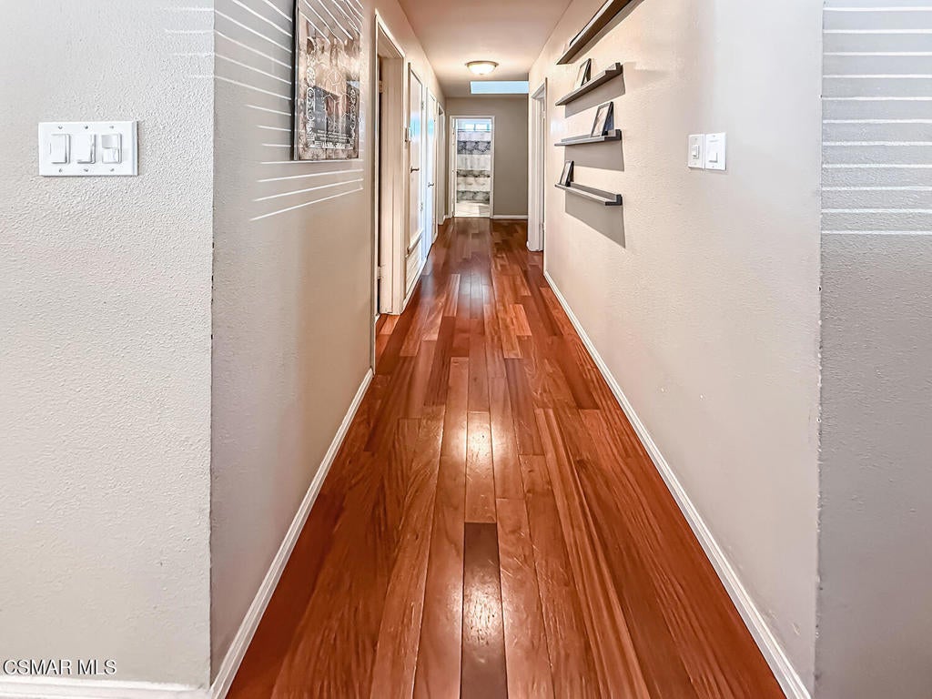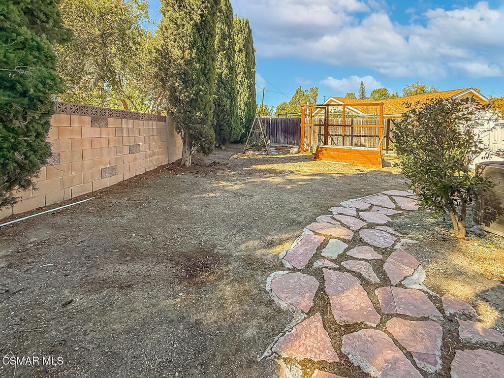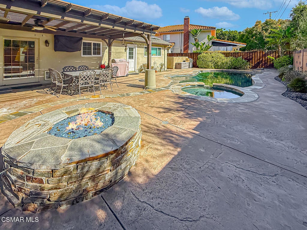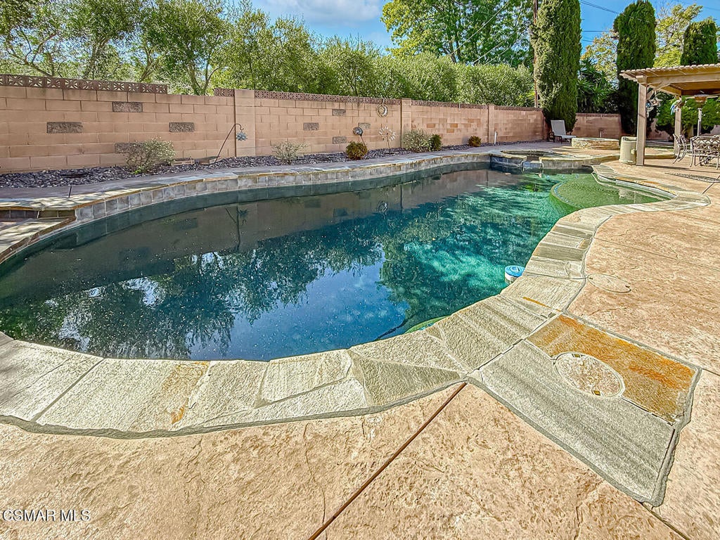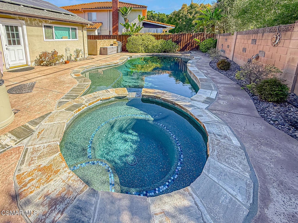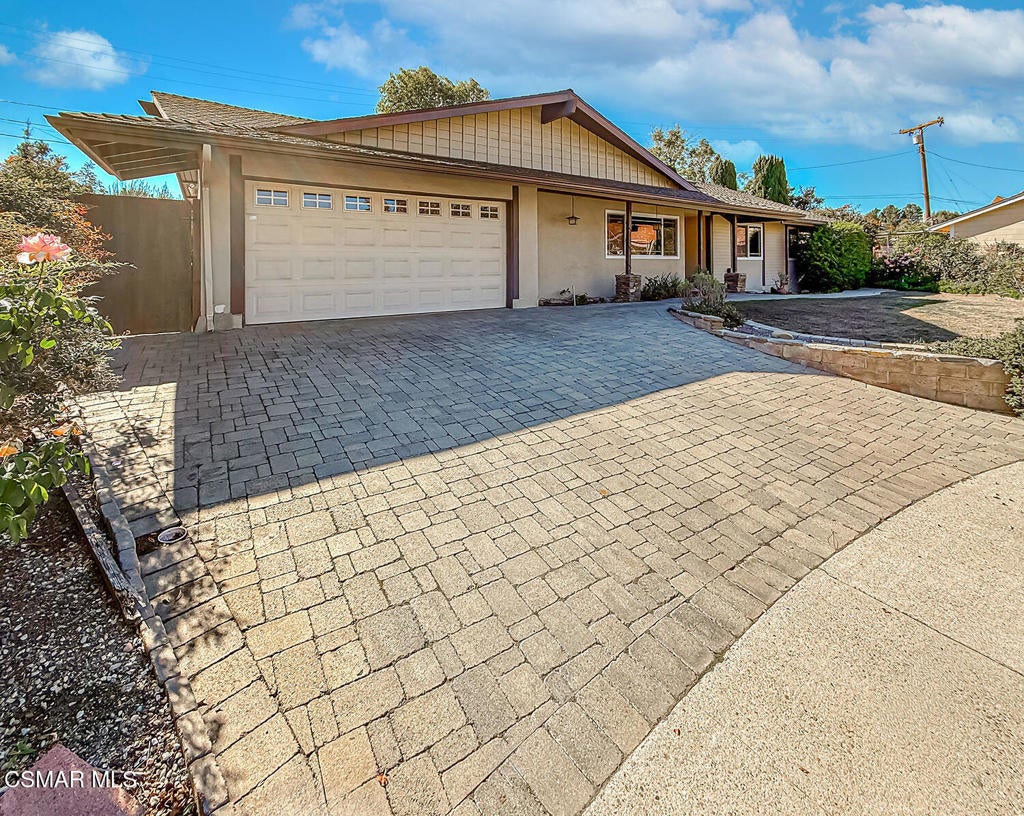 Upgraded Single-Story Pool Home with PAID-OFF Solar and a Backyard Retreat in the Heart of Thousand Oaks! Nestled on a quiet CUL-DE-SAC in an established neighborhood, this 3-bedroom, 2-bathroom has upgraded features with BIG-ticket improvements already done for you. The home's curb appeal is enhanced by the handsome paver-stone driveway & walking paths which lead to the front door. Inside the home you discover gorgeous REAL wood flooring, NO interior steps, and MULTIPLE skylights. Your immediate Living Room is centered around a classic brick-surfaced gas fireplace and lit by a soaring skylight above, offering a cozy sun-splashed space to relax or gather with guests. Adjacent, the spacious Kitchen offers a roomy center island, tile counters, a large skylight which fills the room with light, and a flanking dining area that has sliding glass to backyard views.The home's Primary Suite is a tranquil retreat, privately positioned at the rear of the home with a WALK-IN closet and windowed doors to the backyard patio. The remodeled en-suite bathroom includes a completely REDONE shower, a standalone soaking tub, and a SEPARATE vanity room with a sprawling granite-topped vanity.Two secondary bedrooms provide plenty of closet & living space, serving as flexible accommodations for guests, family, or home office use. They utilize the hall bathroom which is updated with a granite-topped vanity and a tile-walled tub/shower combo -- move-in ready and stylishly finished.The highlight of this home is the exceptional backyard space -- step out onto the stamped colored concrete patio with to take in the scene: a pebble-surfaced in-ground pool & spa, stacked-stone surfaced gas fire pit, and a wide covered patio perfect for outdoor dining or unwinding in the shade. The mature landscaping, privacy fencing, and verdant surroundings create a peaceful ambiance that invites everyday relaxation or weekend entertaining. The LARGE side yard adds even more functionality, offering ample space for an ADU gardening, play, or additional storage.Other major upgrades include a fully owned and PAID-OFF Solar System for major energy savings and an upgraded Bryant HVAC system for efficient year-round comfort. Laundry is located inside the garage, and the attached 2-car garage offers additional built-in storage.Ideally located near local parks, shopping, dining, and award-winning Conejo Valley Unified Schools, this is a rare opportunity to own a beautifully maintained and smartly upgraded pool home in a central Thousand Oaks neighborhood. At this location you also have CLOSE Proximity to Los Robles Hospital, Thousand Oaks High School, the Janss Marketplace, and the STUPENDOUS Wildwood hiking & biking trails, public tennis courts / soccer fields / playgrounds!