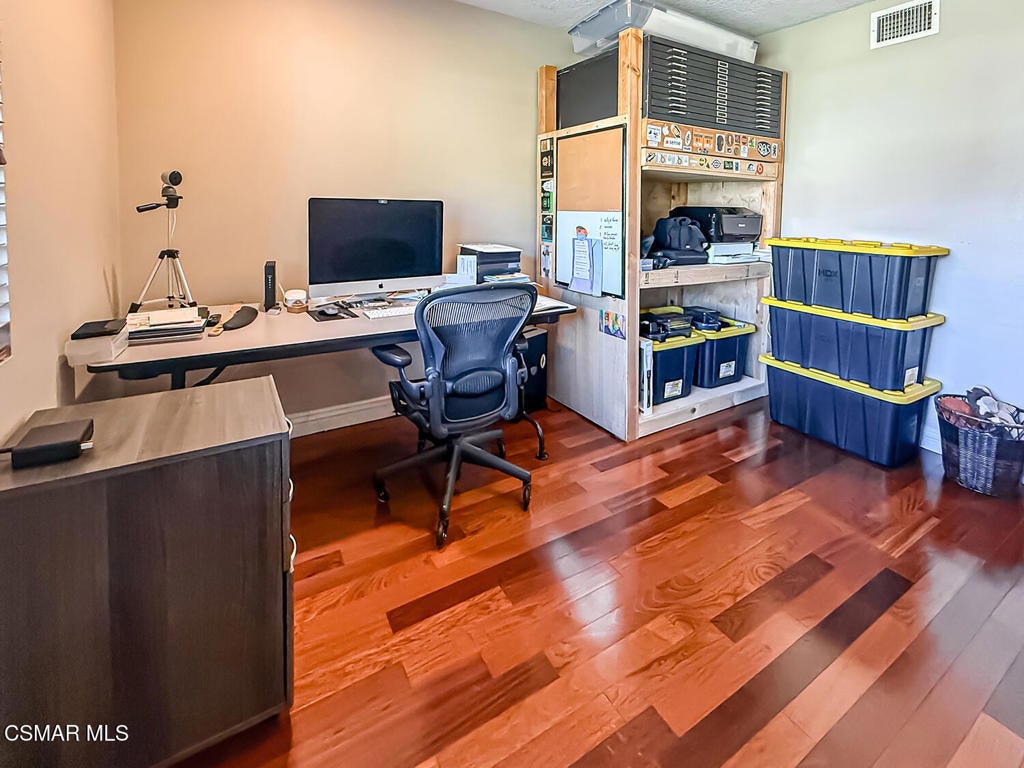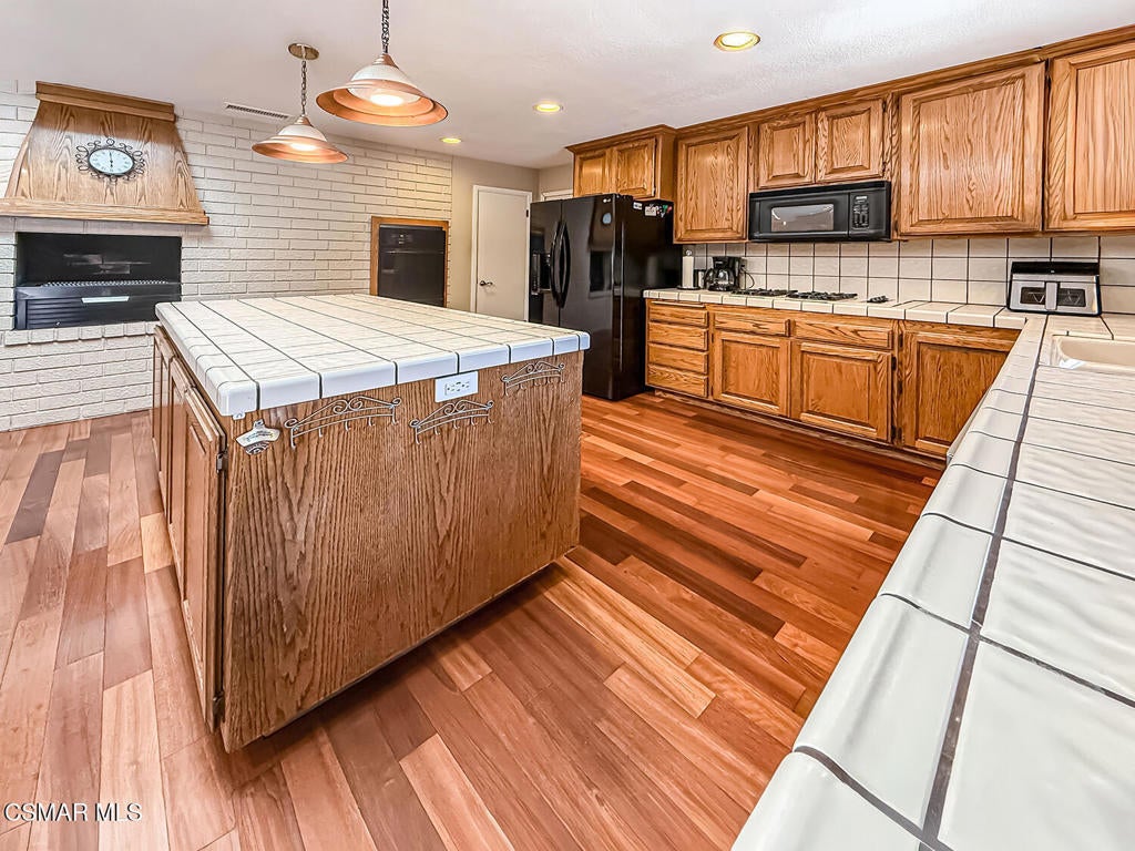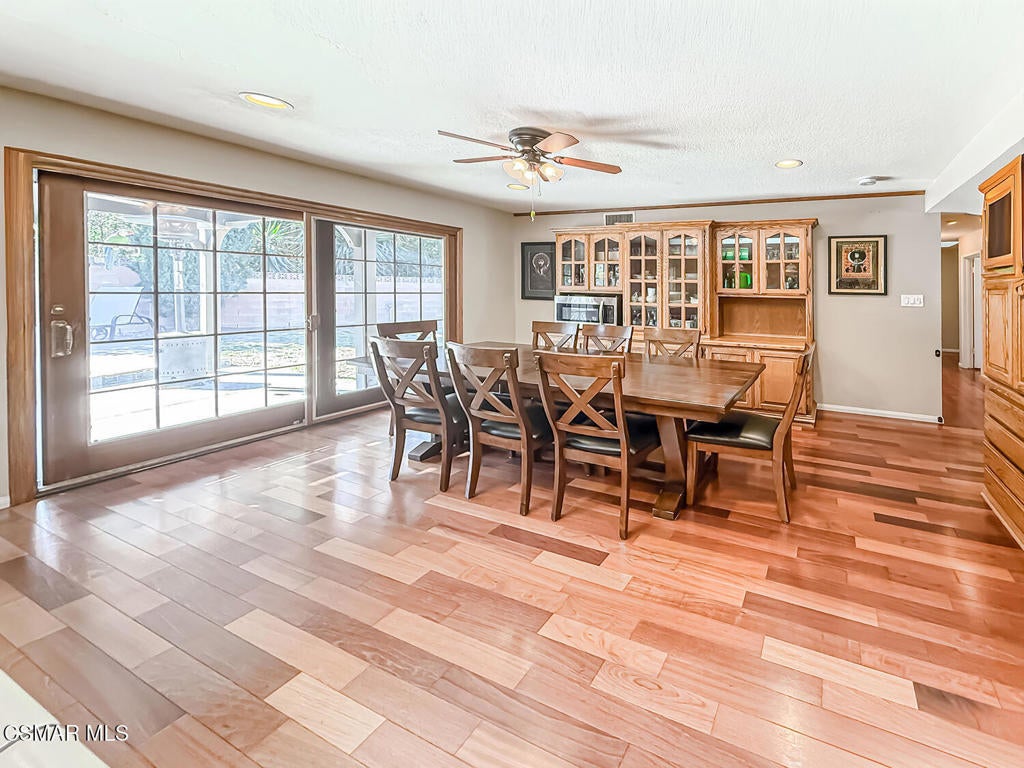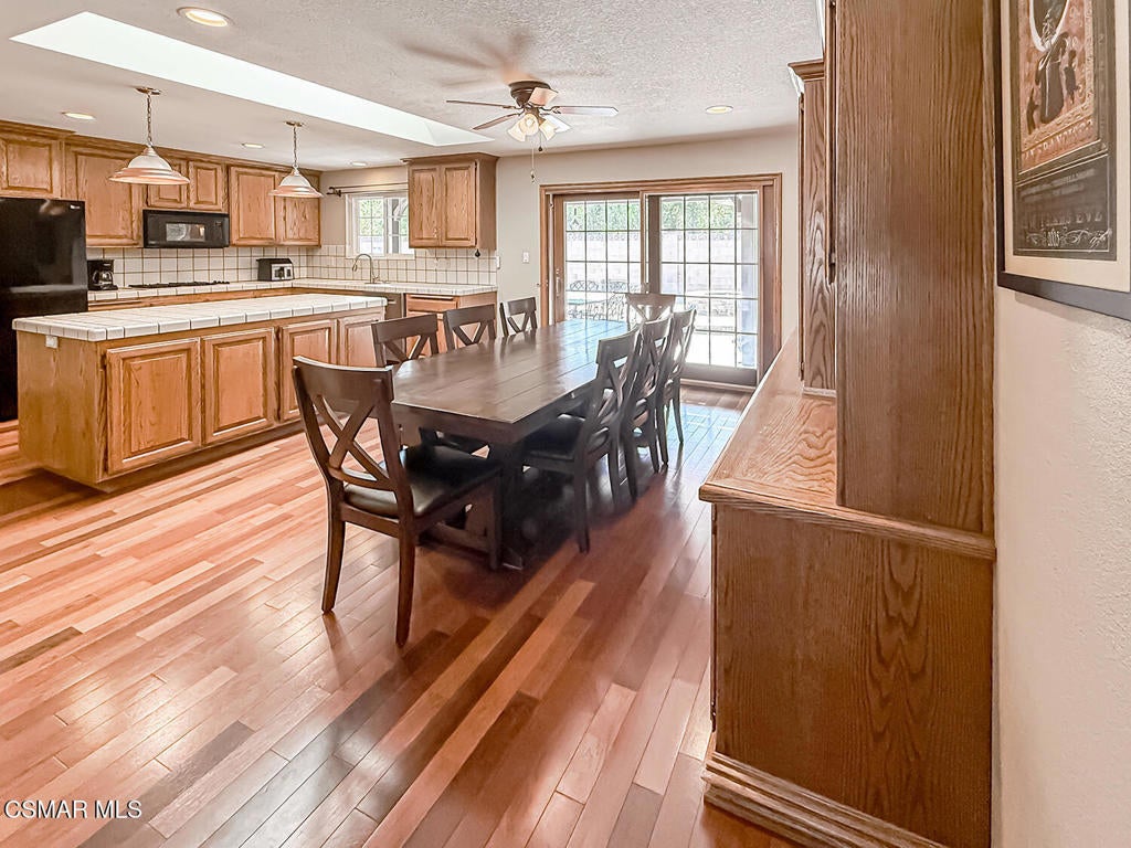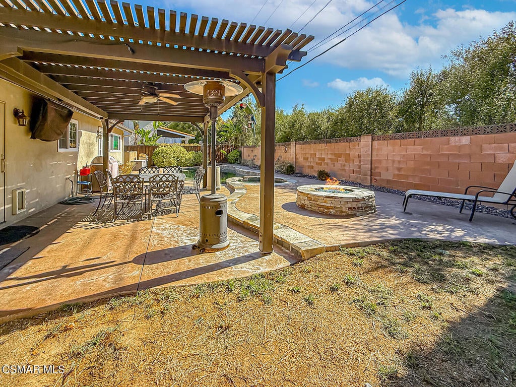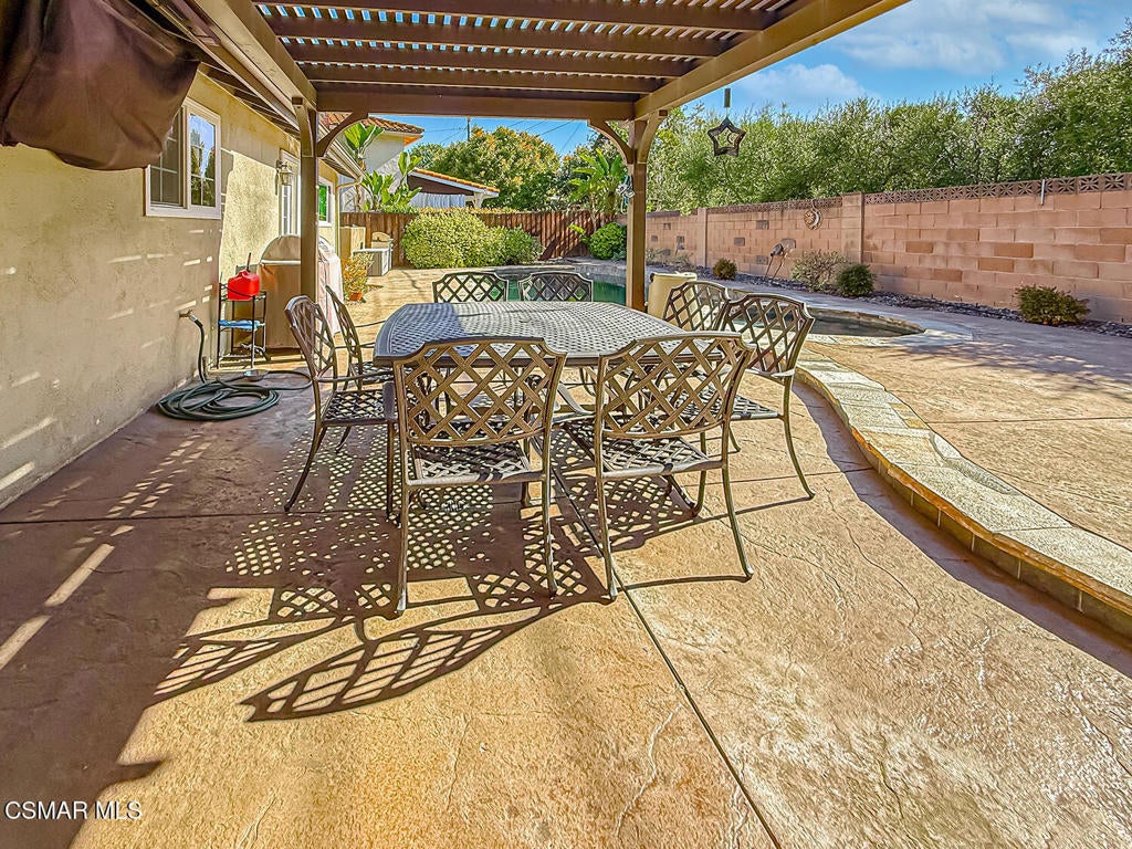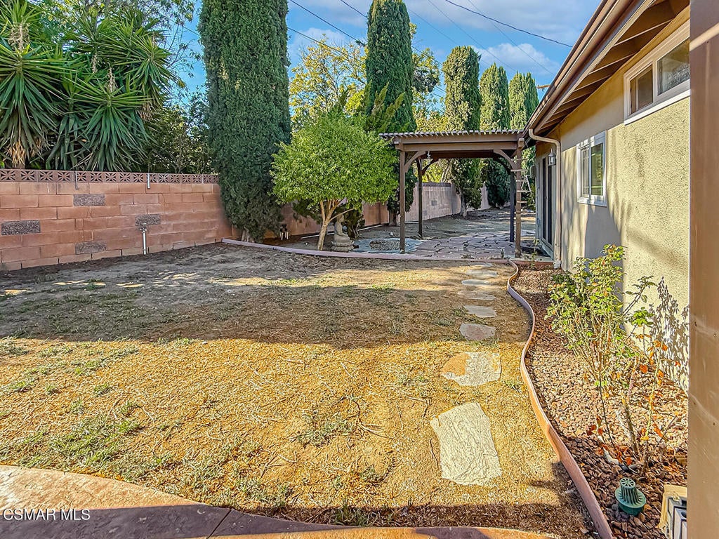Upgraded Single-Story Pool Home with PAID-OFF Solar and a Backyard Retreat in the Heart of Thousand Oaks! Nestled on a quiet CUL-DE-SAC in an established neighborhood, this 3-bedroom, 2-bathroom has upgraded features with BIG-ticket improvements already done for you. The home's curb appeal is enhanced by the handsome paver-stone driveway & walking paths which lead to the front door. Inside the home you discover gorgeous REAL wood flooring, NO interior steps, and MULTIPLE skylights. Your immediate Living Room is centered around a classic brick-surfaced gas fireplace and lit by a soaring skylight above, offering a cozy sun-splashed space to relax or gather with guests. Adjacent, the spacious Kitchen offers a roomy center island, tile counters, a large skylight which fills the room with light, and a flanking dining area that has sliding glass to backyard views.The home's Primary Suite is a tranquil retreat, privately positioned at the rear of the home with a WALK-IN closet and windowed doors to the backyard patio. The remodeled en-suite bathroom includes a completely REDONE shower, a standalone soaking tub, and a SEPARATE vanity room with a sprawling granite-topped vanity.Two secondary bedrooms provide plenty of closet & living space, serving as flexible accommodations for guests, family, or home office use. They utilize the hall bathroom which is updated with a granite-topped vanity and a tile-walled tub/shower combo -- move-in ready and stylishly finished.The highlight of this home is the exceptional backyard space -- step out onto the stamped colored concrete patio with to take in the scene: a pebble-surfaced in-ground pool & spa, stacked-stone surfaced gas fire pit, and a wide covered patio perfect for outdoor dining or unwinding in the shade. The mature landscaping, privacy fencing, and verdant surroundings create a peaceful ambiance that invites everyday relaxation or weekend entertaining. The LARGE side yard adds even more functionality, offering ample space for an ADU gardening, play, or additional storage.Other major upgrades include a fully owned and PAID-OFF Solar System for major energy savings and an upgraded Bryant HVAC system for efficient year-round comfort. Laundry is located inside the garage, and the attached 2-car garage offers additional built-in storage.Ideally located near local parks, shopping, dining, and award-winning Conejo Valley Unified Schools, this is a rare opportunity to own a beautifully maintained and smartly upgraded pool home in a central Thousand Oaks neighborhood. At this location you also have CLOSE Proximity to Los Robles Hospital, Thousand Oaks High School, the Janss Marketplace, and the STUPENDOUS Wildwood hiking & biking trails, public tennis courts / soccer fields / playgrounds!