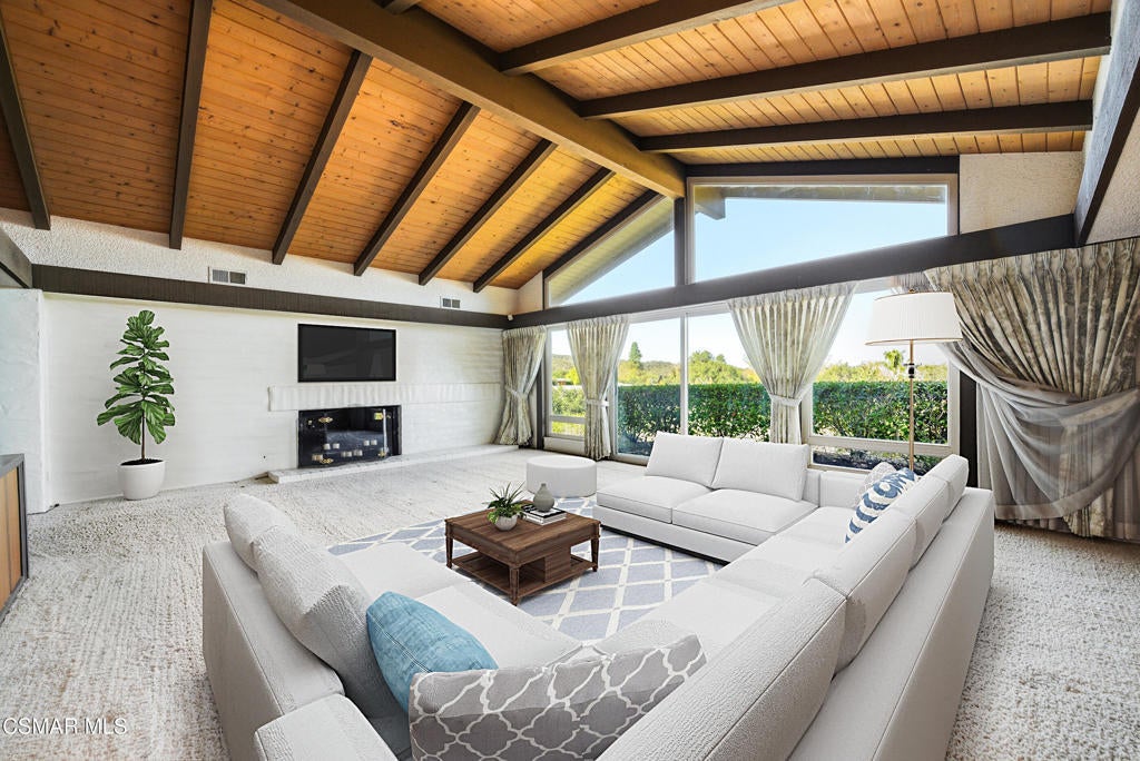 A Rare Opportunity to Create your Dream Estate in one of Thousand Oaks most coveted hidden enclaves! Tucked behind the private gates of Los Robles Hills Estates, this single-story residence (no steps inside) sits on over an acre of land, surrounded by mature trees, sweeping Conejo Valley views, and the kind of quiet luxury that is increasingly hard to find. With only 28 custom homes, this exclusive community offers unmatched privacy, natural beauty, and a lifestyle defined by space and serenity. Step inside and experience the scale of a home designed for both grand entertaining and effortless daily living. 4,544 square feet of open, flowing interiors include soaring vaulted ceilings, expansive gathering spaces, and an impressive great room anchored by a classic wet bar. This expansive room effortlessly adapts to your vision, whether it's a plush, wraparound sectional for game day gatherings, a sophisticated billiards setup, or multiple intimate lounge areas for relaxed entertaining. Sunlight pours through a wall of windows, creating a warm, inviting glow and a seamless harmony between indoor living and the tranquil beauty of the outdoors. A spacious entertainer's kitchen anchors the home, connecting to light filled living and dining rooms with beautiful vaulted ceilings and timeless architectural character. Every corner of the residence invites you to envision your own elevated style, whether modern or classic luxury. The floorplan features 4 bedrooms and 3.5 baths, including a private wing with two generous secondary bedrooms and a serene primary suite offering a walk-in closet, sliding glass doors, a vanity area, sunken tub, and separate shower. A large indoor laundry room and flexible bonus room with a cedar-lined walk-in closet provide additional options for an office, staff quarters, fitness room, or creative space. Outside, the possibilities are endless. The expansive view lot offers room to reimagine the grounds with resort worthy outdoor living, pool, gardens, entertaining patios, or anything else your lifestyle inspires.A three-car garage, two-car covered carport, and long private driveway ensure ample parking for residents and guests. The property also features a detached multi-purpose studio shed, an ideal space for hands-on projects, creative pursuits, or simply organizing the essentials of daily living. It's a flexible extension of the home that adapts effortlessly to your needs. And while the estate feels worlds away, you're just minutes from Westlake Village, top rated amenities, and beloved hiking and biking trails.This is more than a home, it's a canvas for your vision. A rare opportunity that doesn't come around very often in one of the Conejo Valley's most prestigious neighborhoods. Photos have been virtually staged