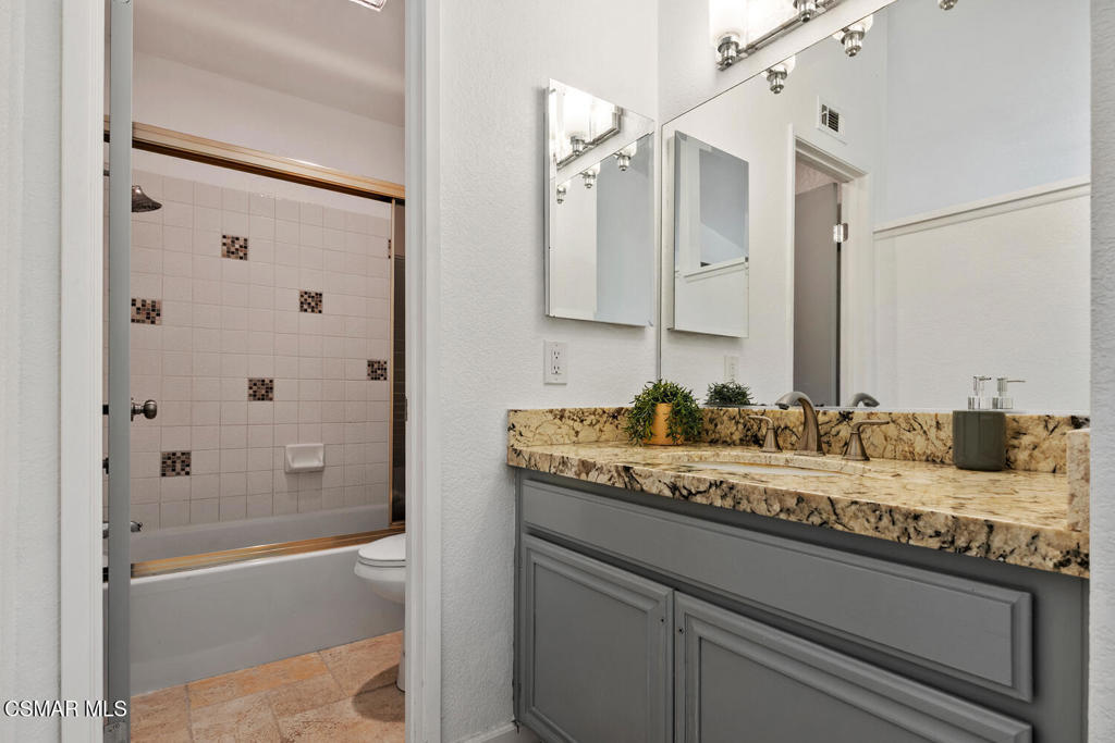 Discover effortless living in the desirable gated community of Camarillo Springs. This beautifully maintained 3-bedroom, 3-bath townhome offers an ideal layout with a full bedroom and bathroom conveniently located on the main level--perfect for guests, multigenerational living, or a home office. The bright kitchen features granite countertops and overlooks the inviting dining and living areas, which open to a private patio ideal for relaxing or entertaining. Upstairs, you'll find dual primary bedrooms, each with an en-suite bath, along with a spacious landing area offering built-in storage cabinets for added convenience. The attached 2-car garage provides direct access and ample storage. Residents of this sought-after community enjoy secure gated entry, a sparkling pool and spa, and a clubhouse for gatherings. Surrounded by scenic hillsides yet just minutes to shopping, dining, golf, and the beach, this home blends comfort, privacy, and coastal accessibility. Perfect as a full-time residence or serene weekend retreat, this is Camarillo Springs living at its finest.
