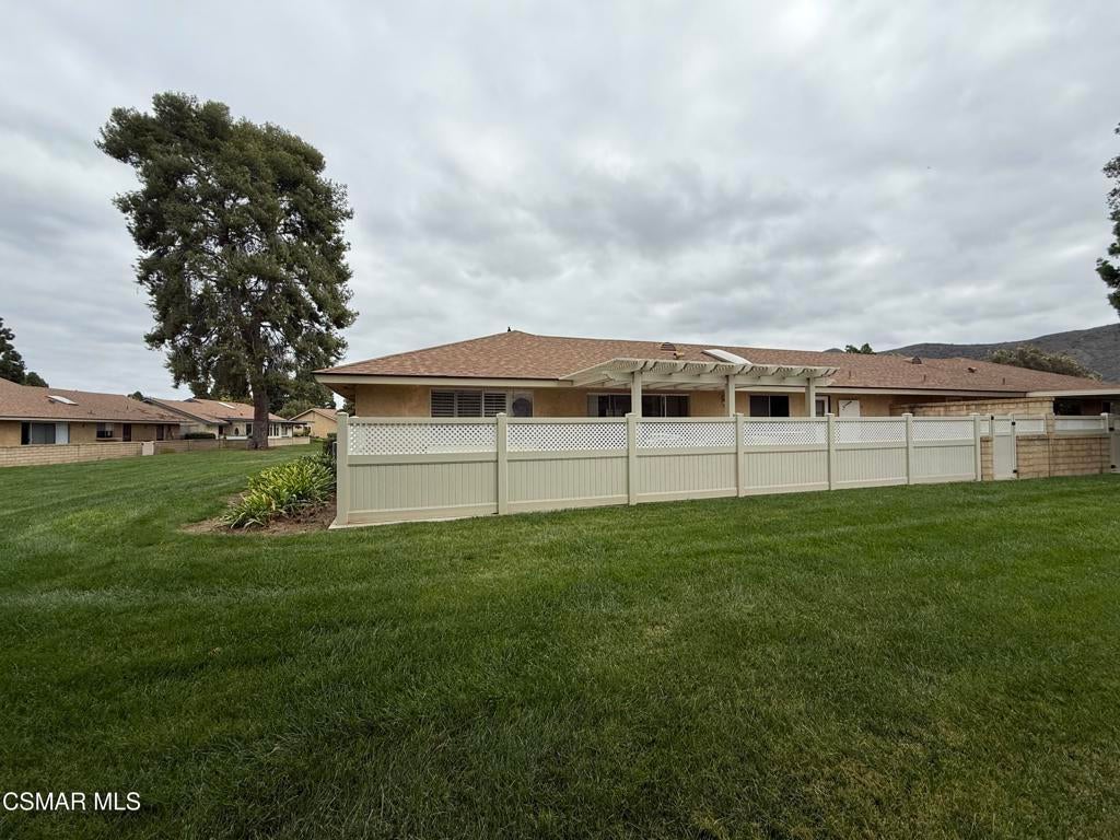 Wonderful home in beautiful community of Leisure Village. Anyone can buy but occupant must be 55 or older. The community is surrounded by mature landscaping, open spaces, mountain views and abundant greenbelts. The single level home features an excellent floorplan with remodelled ktichen and adjacent laundry area, formal dining area open to living room with high ceiling and large sliders to the spacious covered and enclosed patio. There are three bedrooms with large windows overlooking the greenbelts, and two bathrooms. Additional improvements include plantation shutters and laminate flooring throughout. Numerous community amenities including RV parking, 18 hole golf course, tennis courts, gardens, billiards, library, clubs, swimming pool and spa, and more!
