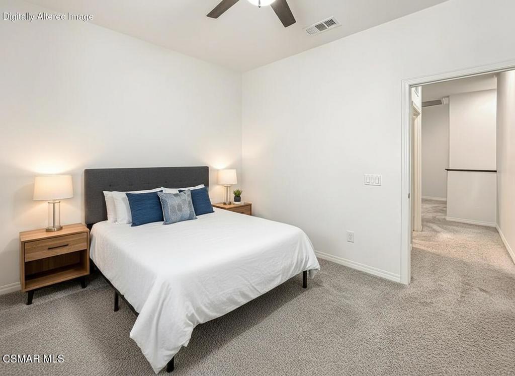 One lucky buyer is about to score the deal of the neighborhood. Priced at just $300 per square foot, this home sits far below recent comparable sales at $780K-$805K--an incredible opportunity to own in the highly sought-after River Village community, one of the few warrantable townhouse developments in the Santa Clarita Valley.Built in 2016 by Beazer Homes, this residence lives like a standalone home and showcases several of the builder's premium upgrades, including upgraded flooring, a granite kitchen island, designer faucets, and under-cabinet lighting that elevates the entire kitchen experience.The entry level offers direct access to the attached two-car garage and a private bedroom with its own en-suite bath--ideal for guests, in-laws, or multigenerational living. This level also opens to a cozy outdoor space perfect for morning coffee or evening relaxation.Upstairs, natural light pours into the open-concept great room, where the upgraded kitchen features Energy STAR appliances and custom cabinetry. Recessed lighting and ceiling fans create an inviting ambiance throughout. This floor also includes a full bedroom and bathroom, along with a covered deck for year-round enjoyment.The top level is anchored by a spacious primary suite complete with dual sinks, a soaking tub, separate shower, and generous walk-in closet. Two additional bedrooms share a convenient jack-and-jill bath, and the laundry room is thoughtfully located on the same level.Additional features include a tankless water heater and Beazer's Energy STAR certification for long-term efficiency and comfort.River Village residents enjoy resort-style amenities--pool, spa, playground--all within a secure, gated community close to shopping, dining, and easy freeway access.Some images have been digitally enhanced.
