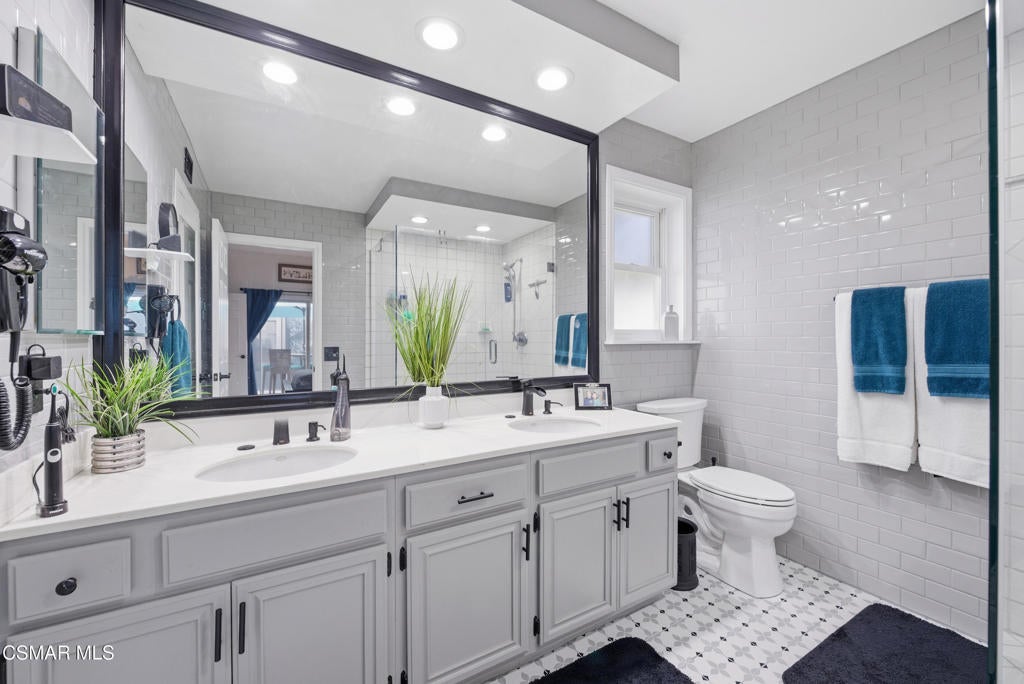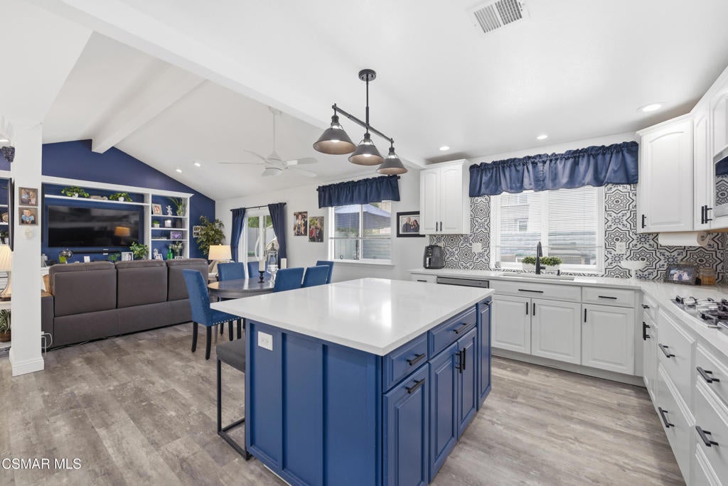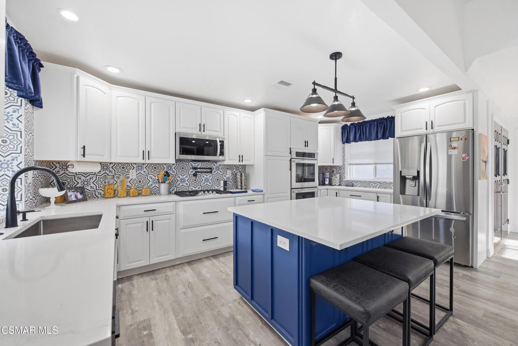 Beautifully upgraded home in Central Simi Valley. 3 bedrooms and 2 baths with 1470 sq ft of living space on 4791 sq ft lot. Interior has been completely remodeled with laminate flooring and fresh interior paint. Kitchen is newly remodeled with custom cabinets, quartz countertops, stainless steel appliances and center island breakfast bar. Both bathrooms have been upgraded with newer vanities and countertops, custom tile and glass shower doors and enclosures. Other features include recessed lighting, dual-pane windows and slider, central heat and AC. The rear yard is designed for entertaining and outdoor grilling!! Built in BBQ and serving bar with refrigerator and hot and cold running water, nice size patio area and artificial turf.Close to parks, shopping, restaurants and schools, there are NO HOA fees...