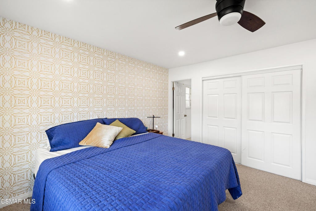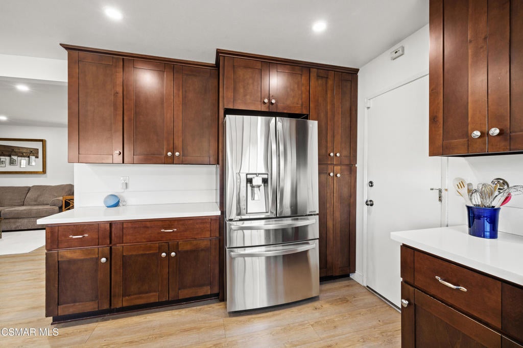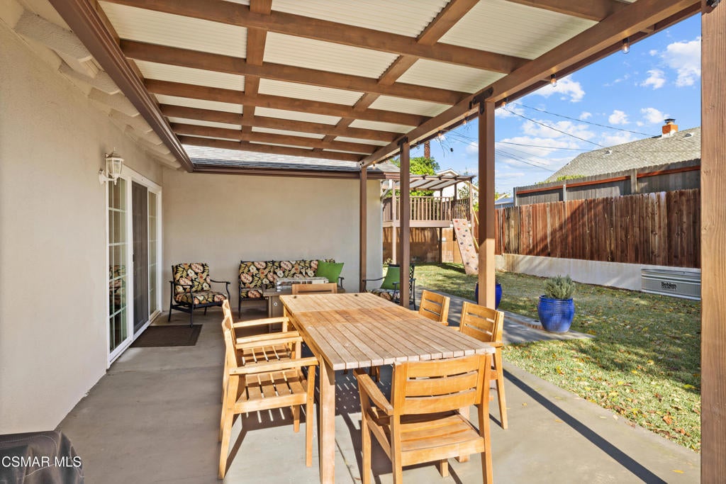 Welcome home to this charming single-story beauty in the heart of Newbury Park. This corner lot provides privacy, stunning curb appeal, in addition to plenty of light throughout the home. With 3 bedrooms, 2 bathrooms, this home is perfect for any buyer. Once you enter you will notice the open floorplan. Formal living room enjoys traditional brick framed fireplace. Delightful kitchen comes with stone counters, stainless steel appliances, and a separate eating area. Primary bedroom has its own en suite bathroom with updated vanity and tiled shower. Secondary bedrooms share bathroom with updated vanity and tiled tub shower. Enjoy the peaceful backyard with covered patio w/lights and plenty of room for entertaining. Amenities include recessed lights, laminate flooring, dual paned windows, central AC/heat and house alarm system. Close to schools, parks and shopping! This is a home you don't want to miss!