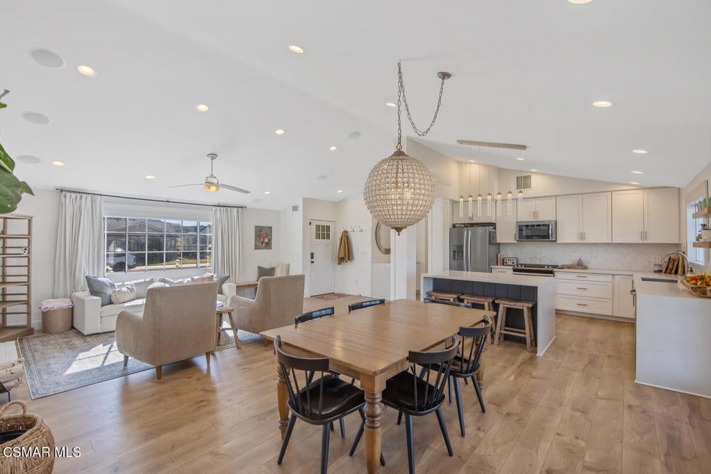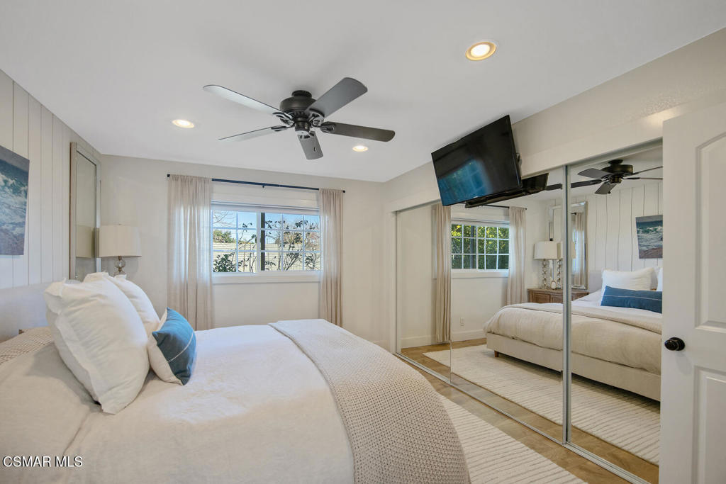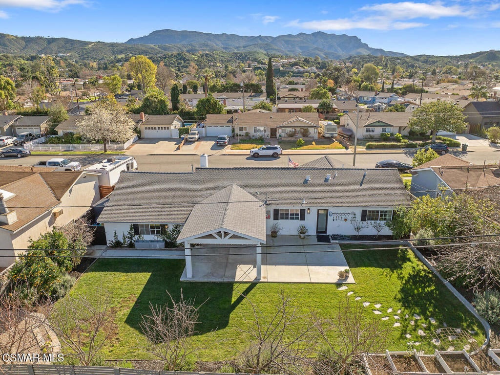 Nestled in the heart of Newbury Park, this beautiful single story home offers three bedrooms, two bathrooms, and a versatile bonus room--perfect for a home office, guest suite, creative studio, or playroom. High ceilings enhance the open, airy feel, while the light-filled, thoughtfully designed kitchen serves as the heart of the home. Additional highlights include an indoor laundry area and effortless indoor-outdoor living. The backyard backs to a wash, providing added privacy, and features lush landscaping and 11 mature fruit trees, creating a peaceful, productive oasis ideal for entertaining, gardening, or simply unwinding. Enjoy mountain views from both sides of the home, further enhancing the sense of space and natural surroundings. This exceptional home seamlessly blends comfort, flexibility, and an unbeatable location.