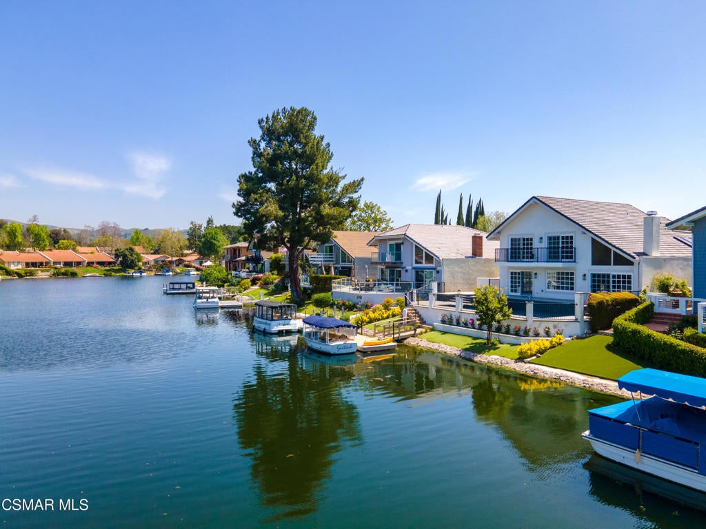 This rare, lake front rental is located on the guard-gated Westlake Island with sweeping views of the marina and Santa Monica Mountains! It is newly renovated with hardwood flooring throughout, soaring vaulted ceilings, striking marble fireplace, skylights, and a built-in outdoor barbecue with a sprawling patio and sparkling pool. The gourmet kitchen boasts gorgeous countertops, top of the line appliances, built-in Miele coffee machine, plus a light and bright open floor-plan that seamlessly flows to the open family room with sliding doors leading to the patio, offering the ideal layout for modern living. The downstairs bedroom is perfect for a guest room or office space with an additional powder room complete with a shower. The primary retreat is a luxurious sanctuary designed for ultimate relaxation and comfort. The bedroom boasts a beautifully remodeled ensuite bathroom, featuring dual sinks and sleek modern finishes. Unwind in the deep soaking tub or enjoy the convenience of a separate glass-enclosed shower. Ample closet space provides plenty of storage, while the cozy sitting area offers a tranquil spot to take in the stunning lake views. An expansive deck overlooking the water leads to a private dock with a boat, perfect for a sunset cruise or visiting one of the lakefront restaurants. Boat, walk or bike to Westlake's best dining, retail shops or yacht club just minutes from the property, plus exemplary Las Virgenes schools, nearby parks, playing courts and hiking/biking trails. This is the very best of Southern California lake life!