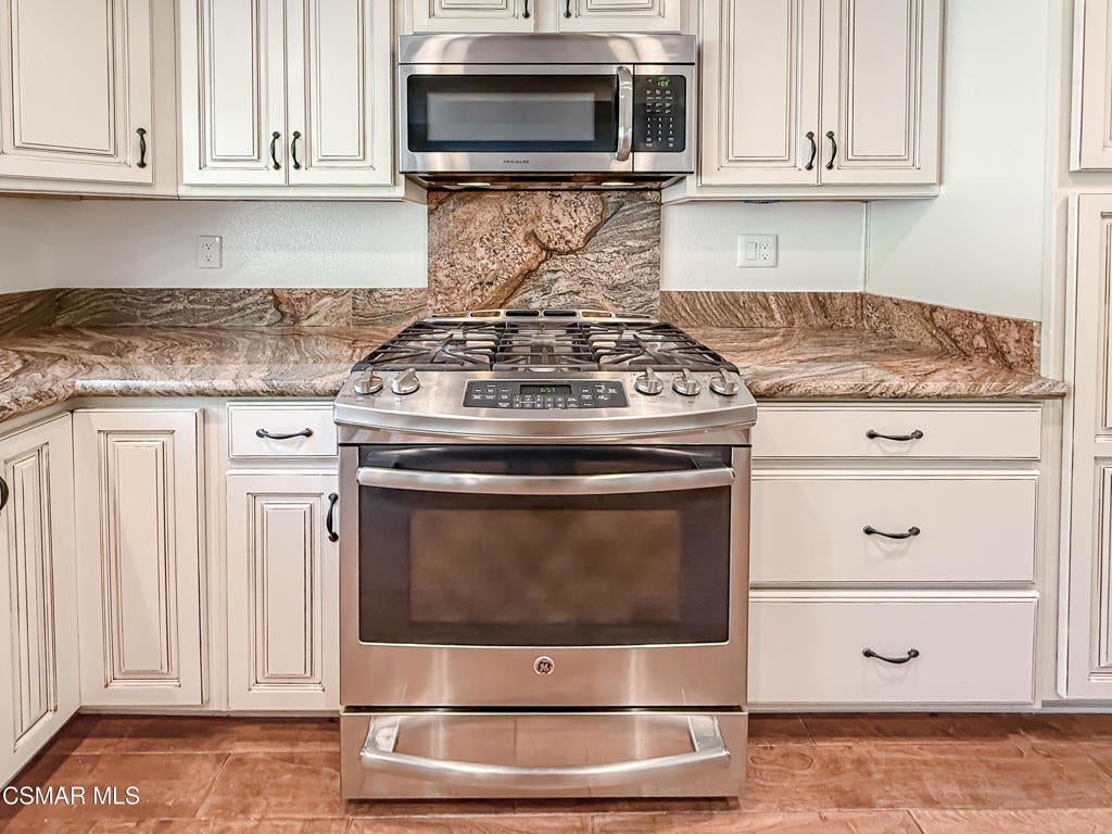 Welcome home to your private sanctuary in this fabulously remodeled 4-bedroom, 3-bath home in a much-sought-after Thousand Oaks cul-de-sac. From the moment you arrive, you are greeted by a majestic sycamore tree, setting the tone for the warmth and charm that await inside. The property features premium finishes throughout. This residence showcases elegant granite and limestone finishes that elevate every space. The recently redesigned kitchen is a chef's dream, featuring modern appliances, custom cabinetry, granite counters, and a convenient wet bar perfect for both daily living and entertaining, as you gather around the stunning, solid limestone slab fireplace, the heart of the home.Wake up each day in your primary suite to serene views of the wilderness, with nature becoming part of your everyday peace and tranquility. The primary suit has two walk in closets with cedar flooring. The bathroom is a retreat with a freestanding soaking tub, a bidet, and a new shower with glass enclosures highlighted by limestone tile, plus a rain shower fixture to enhance.Two other bedrooms upstairs share a bathroom that has been redone with new tile floors.The lofty entry with clear story window highlights the staircase On the 1st Level, there is a downstairs bedroom with a full bath. A separate room with a washer and dryer and cabinetry for property storage leads to the garage. Adjacent to the laundry room is the three-car garage. Within the garage stairway leads up to an extra (NON permitted) bedroom that can be used as a Home Office or art studio, which has its own shower.Situated on a peaceful cul-de-sac in Thousand Oaks. This lovely home offers the perfect combination of tranquility and convenience. Thousand Oaks is consistently ranked as one of the best places to live in California, with excellent employment opportunities contributing to its reputation as a family-friendly haven. Enjoy the safety and serenity of your neighborhood while remaining close to shopping, dining, highly rated public schools, and all that Thousand Oaks has to offer. This is more than a house--it's a lifestyle. Don't miss this rare opportunity to own a truly wonderful home in one of Southern California's safest and most desirable communities