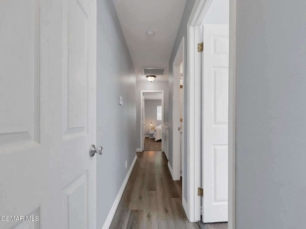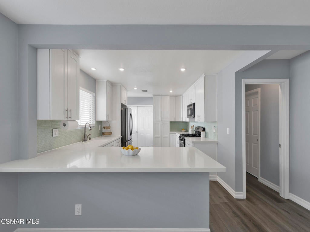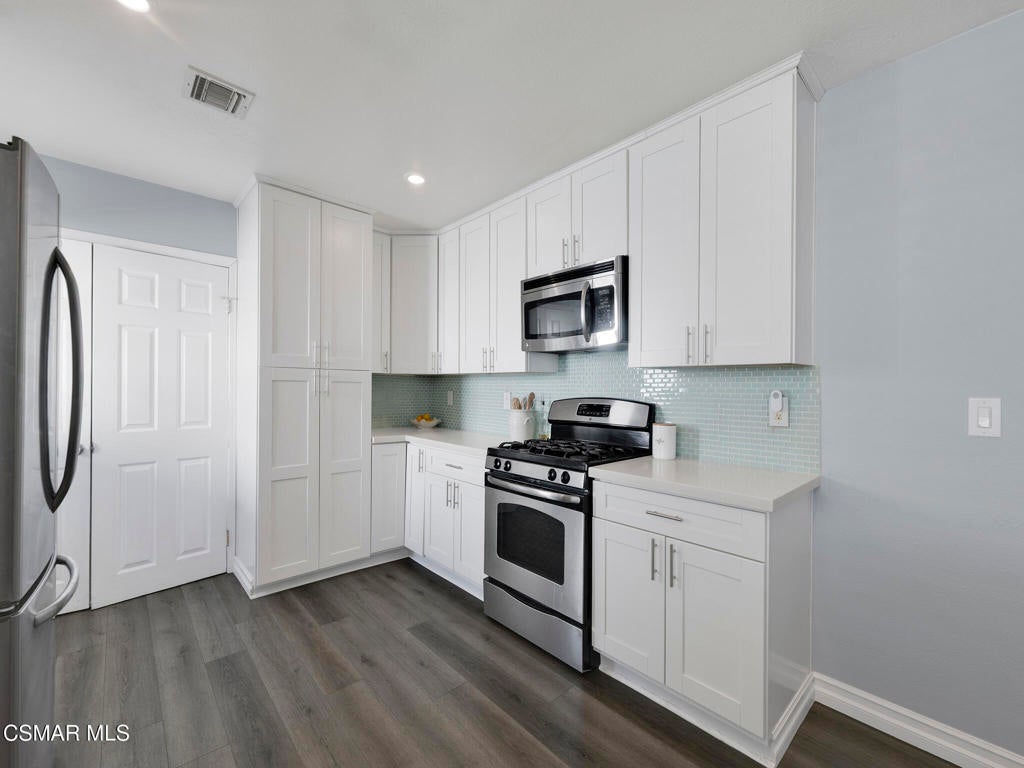 Beautiful updated single-story three bedroom, two bathroom home nestled in the heart of Thousand Oaks. This light filled home features vinyl wood plank-style flooring, recessed lighting, a neutral color palette and a faux fireplace with mantle - all contributing to an airy, charming and calming vibe. The thoughtfully designed kitchen offers white quartz countertops, soft-close cabinetry, stainless steel appliances, and a modern backsplash. Additional highlights include renovated bathrooms, dual-pane windows, central A/C, newer roof and indoor laundry. The private entertainer-friendly backyard includes mature cypress trees for privacy, spa hook-ups, and outdoor cafe string lighting. Enjoy access to shopping, dining, freeways, and nearby hiking and biking trails. This exceptional home is the ideal starter home for a buyer looking to get into a home NOT a project, it is turn-key and seamlessly blends comfort and convenience - come check it out!