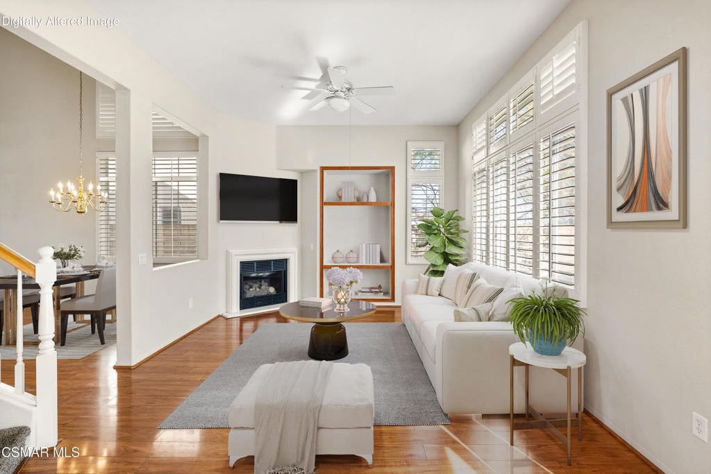 Welcome home to this stunning two-story residence nestled on a quiet street in the highly sought-after Dos Vientos community. Offering 4 bedrooms and 3 bathrooms, this beautifully maintained home combines comfort, functionality, and style. Step inside to soaring vaulted ceilings and an abundance of natural light that create a bright, open atmosphere. The spacious kitchen features ample counter space, abundant cabinetry, a walk-in pantry, and sleek stainless-steel appliances--perfect for everyday living and entertaining. The versatile floor plan includes a convenient downstairs bedroom and full bathroom, ideal for guests or multi-generational living. Enjoy gatherings in the inviting family room with decorative fireplace, as well as the formal living and dining rooms designed for effortless entertaining. Upstairs, the generously sized primary suite offers a private retreat with an en-suite bathroom featuring a large soaking tub, separate shower, and plenty of space to unwind. Two additional bedrooms, a full hall bathroom, and a dedicated laundry room complete the upper level. Step outside to your private backyard backing to open space, providing tranquility and added privacy, along with a spacious side yard. Additional highlights include a 2-car garage, dual-pane windows, recessed lighting, and elegant plantation shutters throughout. Residents enjoy HOA amenities including a pool, spa, and playground, and the home is conveniently located near parks, shopping, hiking trails, and award-winning Sycamore Canyon School K 8. This is an exceptional opportunity to own a beautiful home in one of the area's most desirable neighborhoods. Don't miss it!