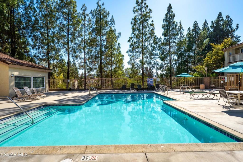 Welcome to this exquisite 1-bedroom 1- bathroom remodeled condo, a true urban oasis that seamlessly combines modern luxury with the tranquility of nature. Nestled in the heart of Oak Park, this residence offers a serene escape from the bustling world outside, with its most captivating feature being the breathtaking greenery & mountain views. As you enter into the condo, you'll be greeted by an open concept living space adorned with sleek, contemporary finishes and an abundance of natural light. The living area seamlessly flows into a stylishly appointed kitchen, complete with quartz countertops, custom cabinets, and newer appliances creating a space that is both functional and aesthetically pleasing. The living room with a stylish modern hardwood floors, smooth ceilings, and cozy fireplace opens to a private patio. Step onto the patio, and you'll be greeted by the mesmerizing view of trees that provide shade, privacy, and a sense of calmness. The oversized bedroom offers a walk-in closet, and large windows that frame the stunning outdoor scenery. This condo not only offers a luxurious living space but also provides a sense of community, complete with amenities such as sparkling pool, spa, tennis court, fitness center, racquetball and basketball court, volleyball area, and BBQ picnic spaces!