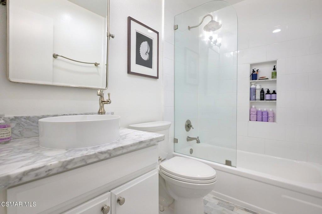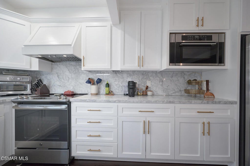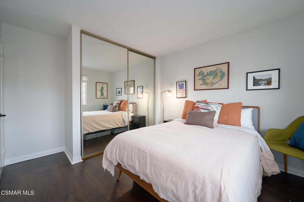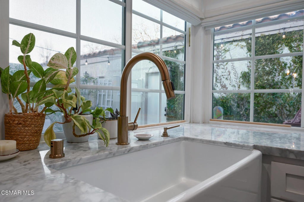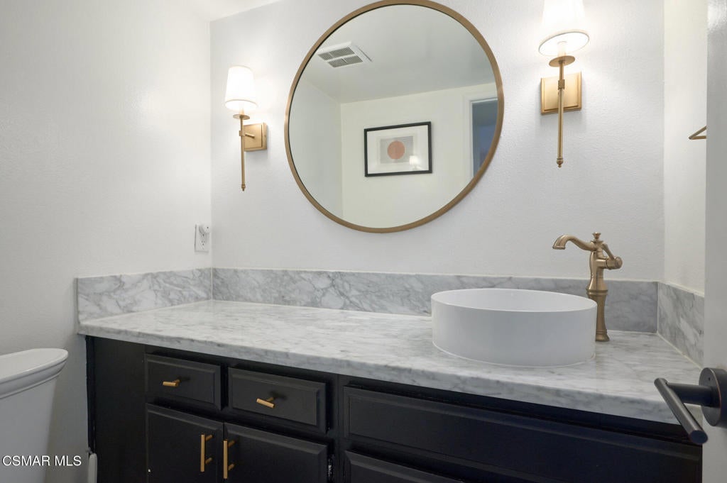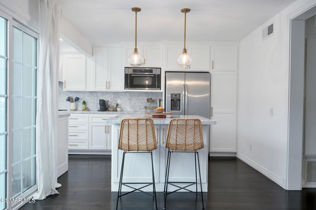 Stylish and remodeled, this light-filled Thousand Oaks East townhome offers sophisticated living, with everything you need close by. Enter through a large, gated front patio into a stylish main living space, featuring rich espresso-hued hardwood flooring, a sunny window seat, built-in desk, shelving and a cozy fireplace. A formal dining room flows seamlessly into the decorator perfect eat-in kitchen with crisp white cabinetry, marble counter-tops, stainless steel appliances and a center island with breakfast bar. An adjacent dry bar with a built-in wine rack enhances your entertaining. Enjoy al fresco dining on the private rear patio illuminated by twinkling overhead lights. There's a chic renovated powder room on the main level as well. Upstairs, the spacious primary suite impresses with vaulted ceiling, balcony and generously sized walk-in closet. En-suite bathroom with oversized vanity and tub/shower, plus 2 additional bedrooms and remodeled full shared bath. Large 2-car garage provides ample storage and the washer and dryer completes this attractive, move-in ready home. Sparkling community pool, tennis/pickle also. Available furnished or unfurnished. Ultra convenient to shopping, cafes, great dining, entertainment and services, excellent Conejo Unified schools, parks, playgrounds, miles of trails and a dog park are right down the street. Easy access to 23 & 101 Freeways.