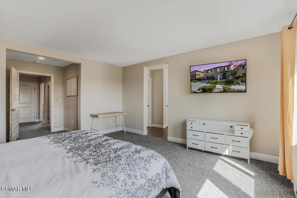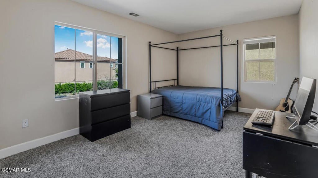 Welcome to this inviting two-story, 4 bedroom and 2.5 bath home located in the popular and energy efficient Living Smart Homes community in Moorpark. This desirable home features separate living and family rooms with a light and bright interior.The open floor plan incorporates comfortable living with a gourmet kitchen boasting stainless appliances, a center island,granite counters and stylish cabinetry. A sliding glass door off the family room leads to the private rear yard that backs to open space. The second floor includes 4 spaciousbedrooms and a separate laundry room with washer and dryer for convenient access. The spacious primary bedroom with walk-in closet offers a scenic window view of the open spaces with a view to the local hills. The main bathroom features a dual granite vanity and separate tub and shower. Additional enhancements include carpet, tile and wood like flooring, dual pane windows, energy efficient 13-SEER air conditioning system, low-VOC insulation and water conserving devices. Installed solar panels that will need to be connected to a service provider. Front yard landscaping is maintained by the HOA. The community includes a gated pool and spa and nearby scenic trails, Mammoth Park with 7.5 acres of play areas, multi-use field, a picnic pavilion, lighted tennis and sports courts and trails that link to the surrounding area. Convenient access to Metrolink, major freeways, retail shopping, restaurants and award-winning schools. You will be pleased and excited to call this your home.