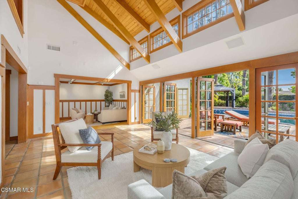 Custom Built Craftsman In The Heart Of Chatsworth.Located in one of Chatsworth's most desirable neighborhoods, this custom built Craftsman estate beautifully blends timeless character with elevated modern living. With 5 bedrooms and 5 bathrooms, this expansive residence offers an ideal balance of comfort, scale and versatility perfectly suited for both everyday living and effortless entertaining.From the moment you step inside, you are welcomed by soaring vaulted ceilings and a light filled open floor plan designed to feel both grand and inviting. The home features a formal den with a charming bay window, an impressive great room, a cozy family room and an upstairs loft complete with a built-in bar. This layout offers an exceptional layout for gathering, relaxing, and hosting in style.At the center of the home, the chef's kitchen is thoughtfully designed with both beauty and function in mind, featuring a large center island, abundant cabinetry and an oversized walk in pantry that makes daily living as seamless as it is stylish.The primary suite is a true retreat, offering a spacious bedroom, a private sitting room, a spa like bath with a sunken soaking tub, and a generous closet. Each of the additional bedrooms is beautifully appointed, providing comfort and privacy for family and guests alike.Designed to embrace the very best of Southern California living, the home's resort style amenities include a private sauna, sparkling pool and spa and inviting indoor outdoor spaces that create the perfect backdrop for year round enjoyment. A 2 car garage plus an additional carport offer ample parking and convenience.This exceptional property offers easy access to transportation, shopping, dining and everyday conveniences. It is just minutes from Chaminade College Preparatory Middle School, The Vineyards at Porter Ranch and Northridge Fashion Center which places top rated schools, upscale retail and popular restaurants within close reach.This is a rare opportunity to own a thoughtfully designed Craftsman residence in a premier Chatsworth location, where timeless style, comfort and convenience come together beautifully.