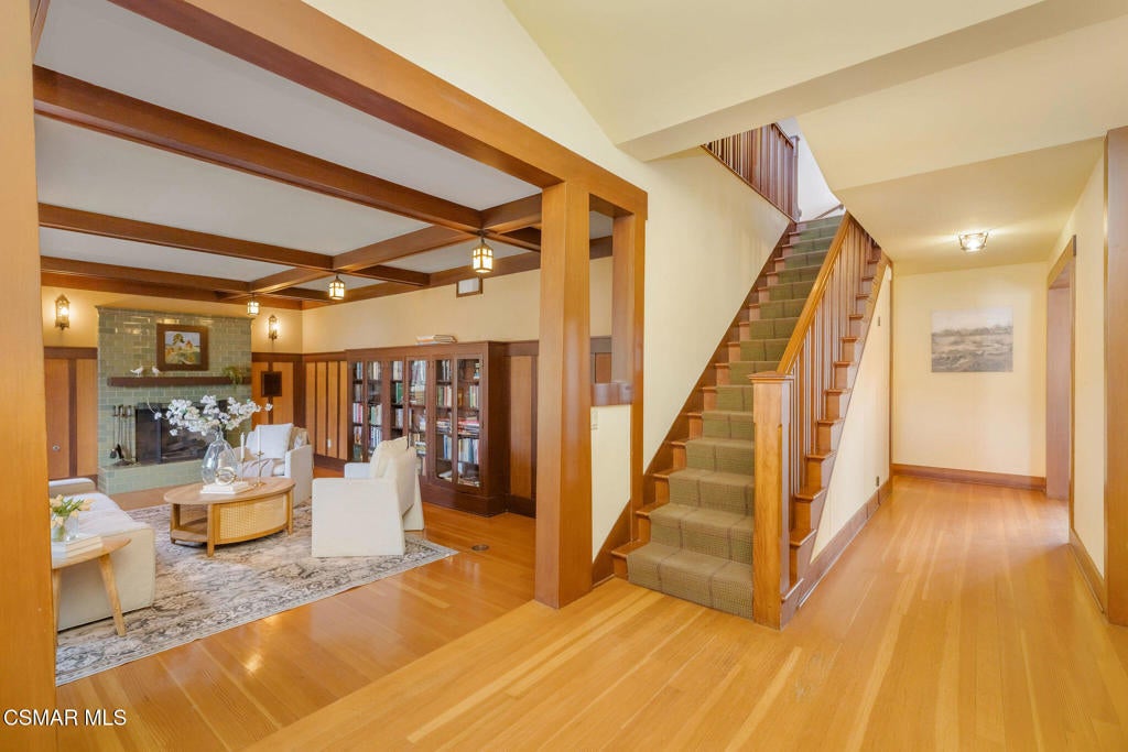 • Interior FeaturesBreakfast Bar, Separate/Formal Dining Room, Bedroom on Main Level, Primary Suite, Walk-In Pantry, Walk-In Closet(s), Beamed Ceilings, Multiple Staircases, Pantry