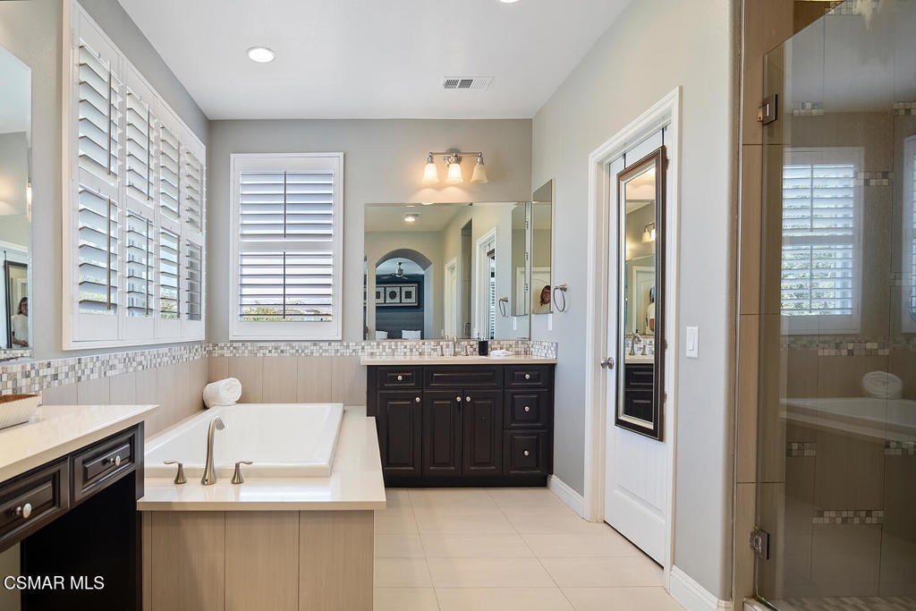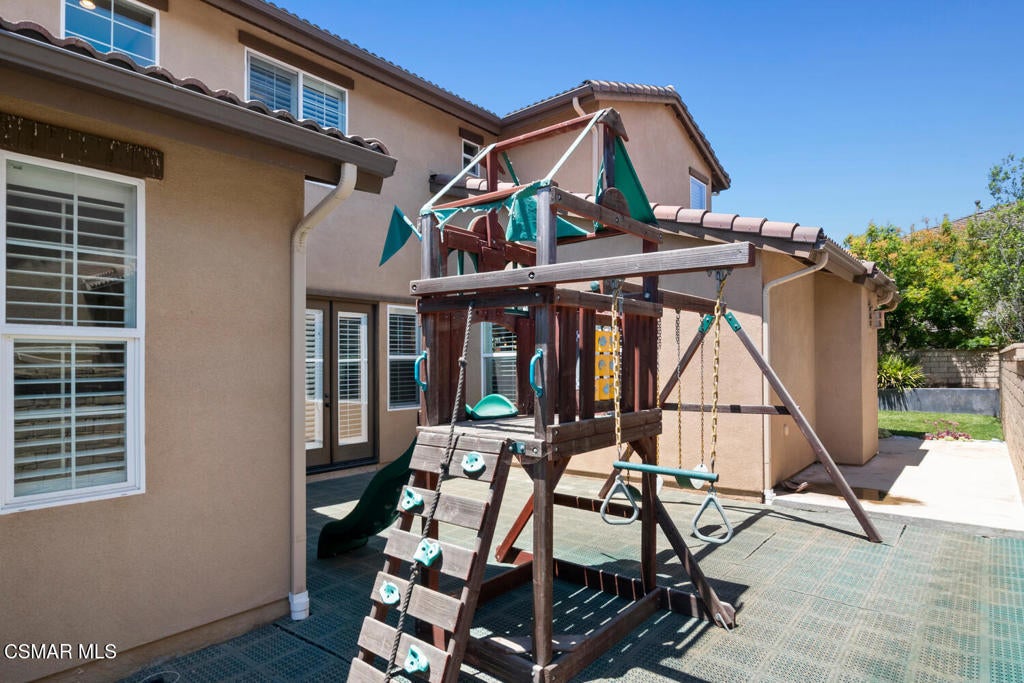 Discover this stunning 6-bedroom, 4-bath home in Camarillo's sought-after Village at the Park! The open layout centers around a chef's dream kitchen equipped with a Monogram 6-burner range and griddle, triple ovens, Bosch dishwasher, decorative backsplash, granite countertops, an oversized island perfect for gatherings, and abundant cabinetry. Enjoy formal living and dining rooms, plus two downstairs bedrooms ideal for guests and/or a home office. Upstairs offers a spacious loft, laundry room, 3 additional bedrooms, one of them with an en-suite, and a luxurious primary suite with dual walk-in closets and an upgraded bath. Stylish high-quality laminate flooring flows throughout. Enjoy a lush backyard with above-ground spa, large side yard, and charming courtyard complete with kid's play set. Community perks include two sparkling pools, clubhouse, modern gym, multiple playgrounds as well as retail shops and dining. Close to Rancho Rosal Elementary School, Channel Islands YMCA, and Pleasant Valley Fields!