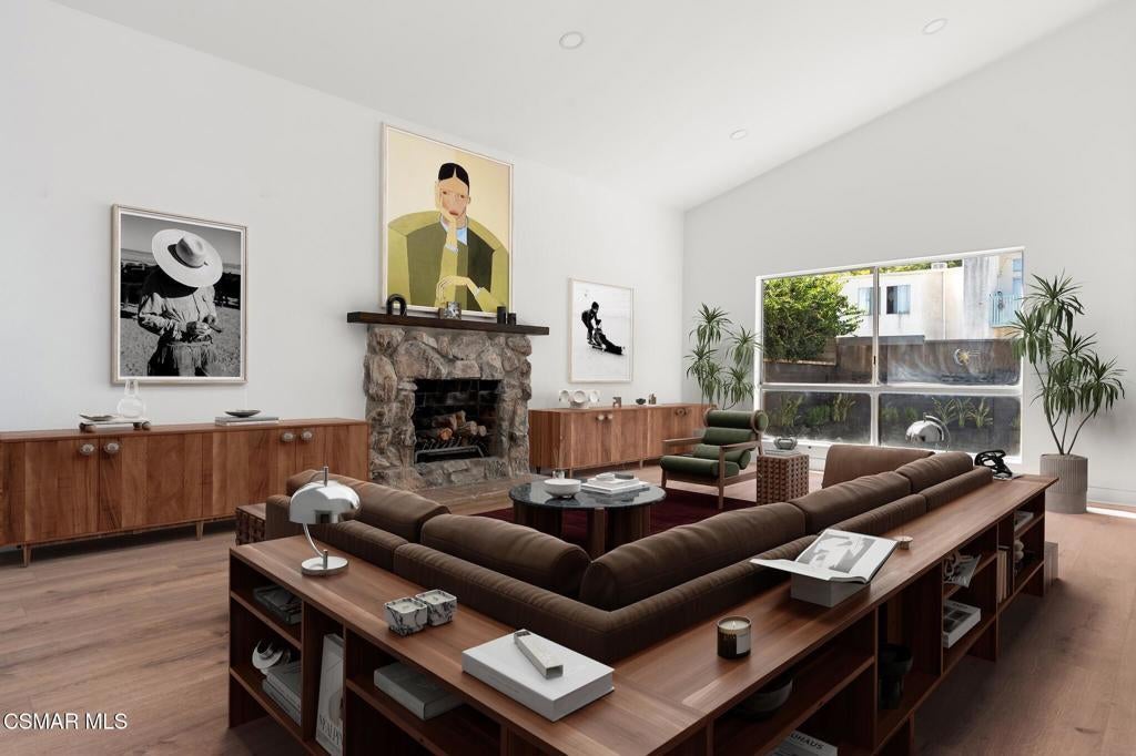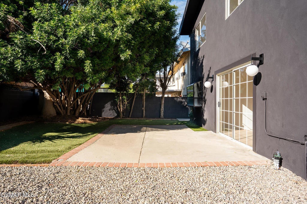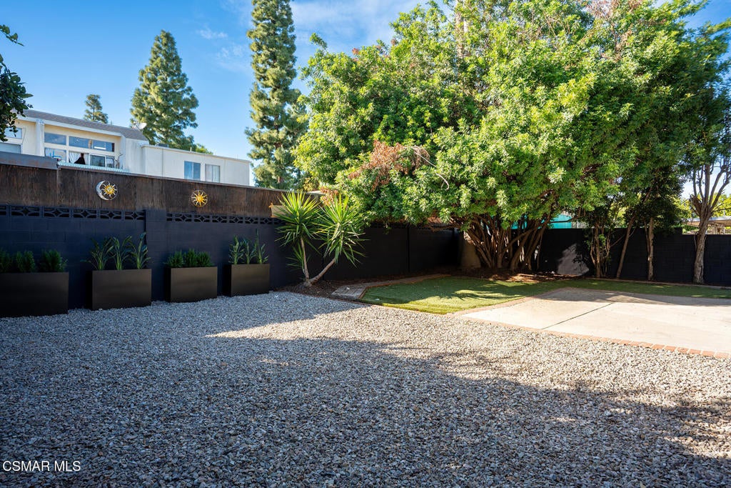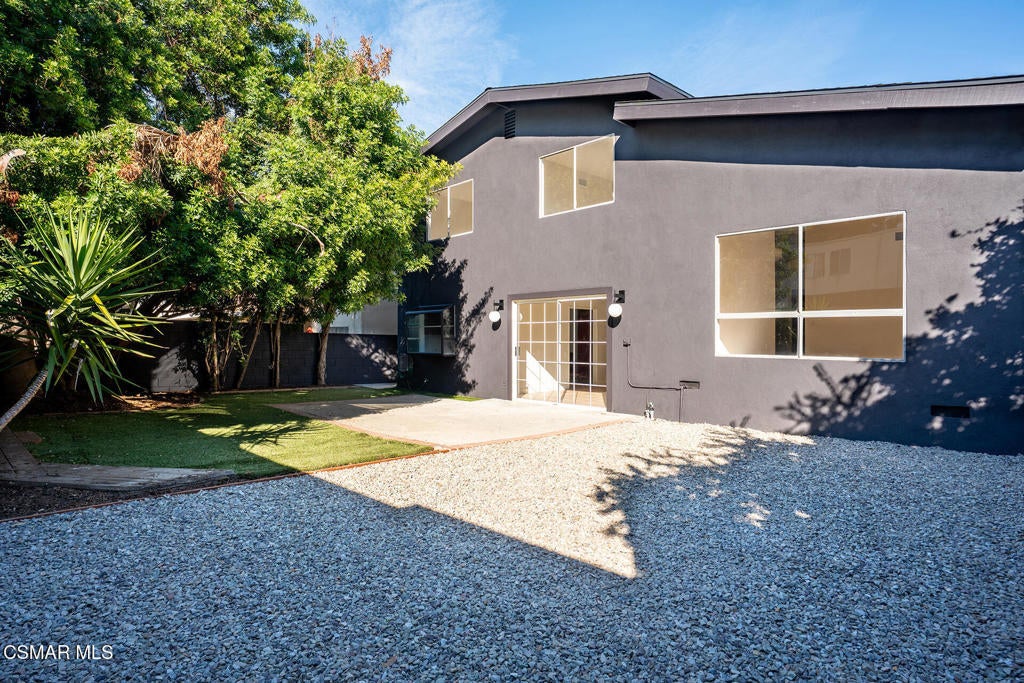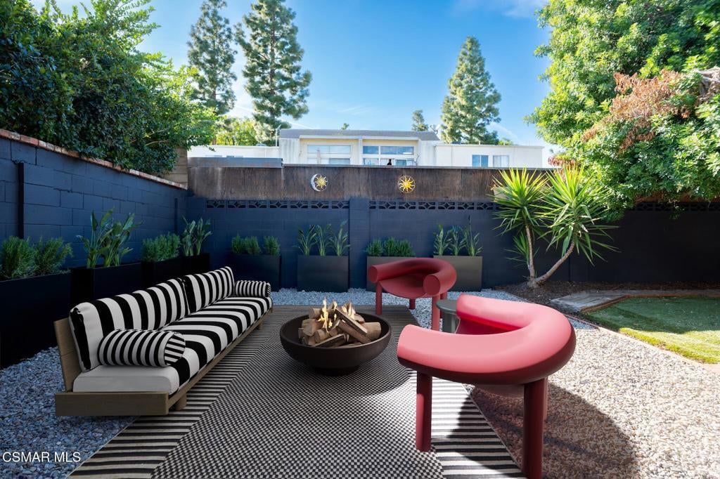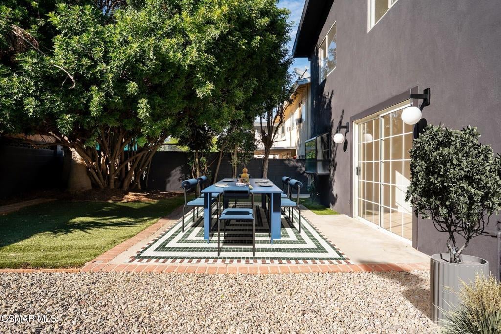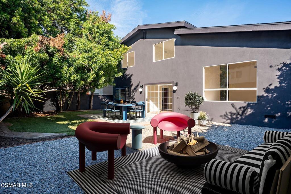 Tucked into one of Tarzana's most desirable neighborhoods, this fully transformed 4-bedroom, 3-bath home offers 2,273 square feet of thoughtfully updated living space--designed for real life, real gatherings, and the next chapter.From the moment you arrive, the deep navy mid-century exterior, chrome house numbers, and statement lighting set the tone. The double front doors open to soaring ceilings and dramatic West Elm lantern fixtures that immediately anchor the space with warmth and intention.Inside, the home unfolds with a clean, modern aesthetic layered over its natural 70's architecture. Acoustic ceilings have been smoothed. The entire interior and exterior have been freshly painted. New luxury European laminate flooring grounds the main living areas, while plush new carpet adds comfort upstairs. Modern baseboards run throughout the home, giving every room a crisp, finished feel. A brand-new roof and HVAC system bring peace of mind that goes far beyond cosmetics.The formal living room features high ceilings and a reimagined fireplace with a custom West Elm mantel--now a true focal point and an inviting place to gather. Recessed lighting brightens the space and enhances the open flow between living and dining.The kitchen blends function and personality. Freshly painted cabinetry with new wood hardware, a new sink, faucet, and dishwasher, and glazed countertops create a clean foundation. A custom-built bench upholstered in luxe fabric turns the dine-in area into the spot for weekday breakfasts, homework sessions, and casual dinners. Just beyond, the formal dining room--with its new statement fixture--is ready for holidays and celebrations.The layout offers flexibility that modern families need. A main-floor bedroom and full bath provide the perfect setup for guests, a home office, or extended family.Upstairs, you'll find the private sleeping quarters: the primary suite along with two additional bedrooms. All three bedrooms feature new carpet, modern baseboards, and high-tech ceiling fans with customizable settings and lighting temperature for personalized comfort. The result is simple, clean, and move-in ready--spaces that feel fresh now but flexible enough to evolve as life changes.All three bathrooms have been completely gutted and rebuilt with modern tile showers, updated vanities, new plumbing fixtures, and sleek sliding glass doors. The primary bath leans sophisticated with darker grout and elevated finishes. The hall bath brings a playful, youthful energy--fresh, functional, and designed with family living in mind.Step outside and the backyard delivers what so many families are looking for--usable space. A patio built for outdoor dining, a large shade tree that makes afternoons comfortable, and a versatile rock lounge area ideal for a fire pit, play space, or evening entertaining. Fresh planters and a newly painted block wall enclose the yard, creating privacy and warmth.Nearly every surface has been updated or replaced. The result is a clean, modern home that honors its mid-century roots while offering today's convenience. It's move-in ready, yet neutral enough to layer in your own art, furniture, and personality.This is the kind of home where birthday candles are blown out in the dining room, kids run between the family room and backyard, and friends linger long after dinner.In Tarzana, fully updated, with this kind of space and flow--it's not just a remodel. It's a reset.