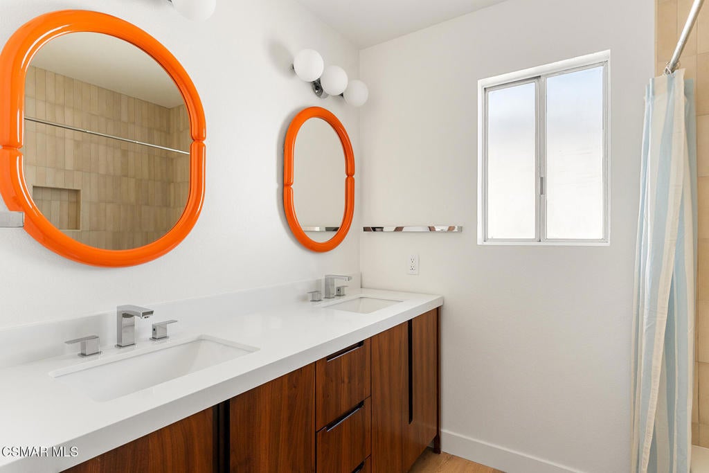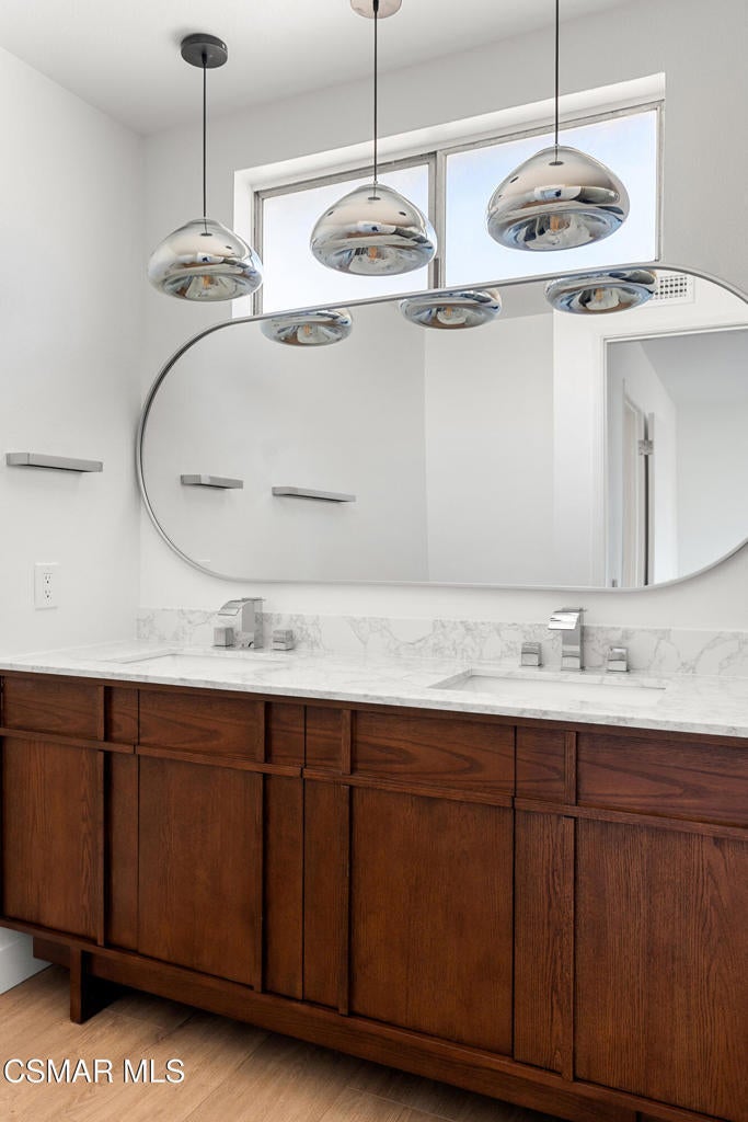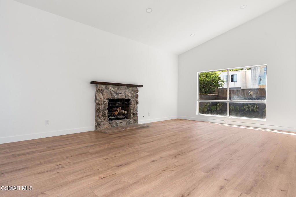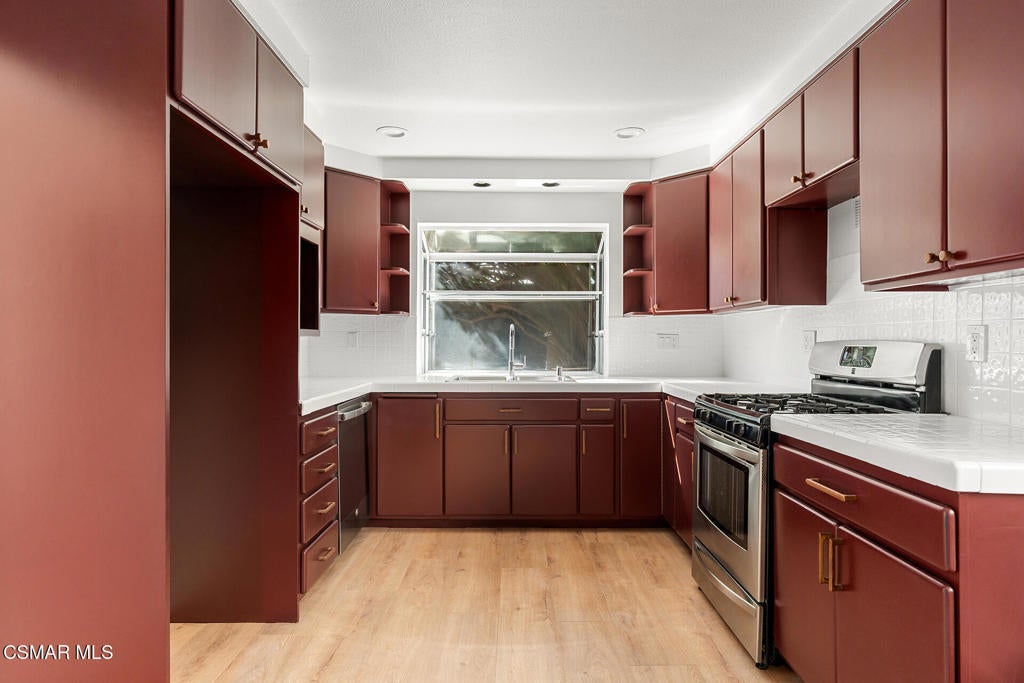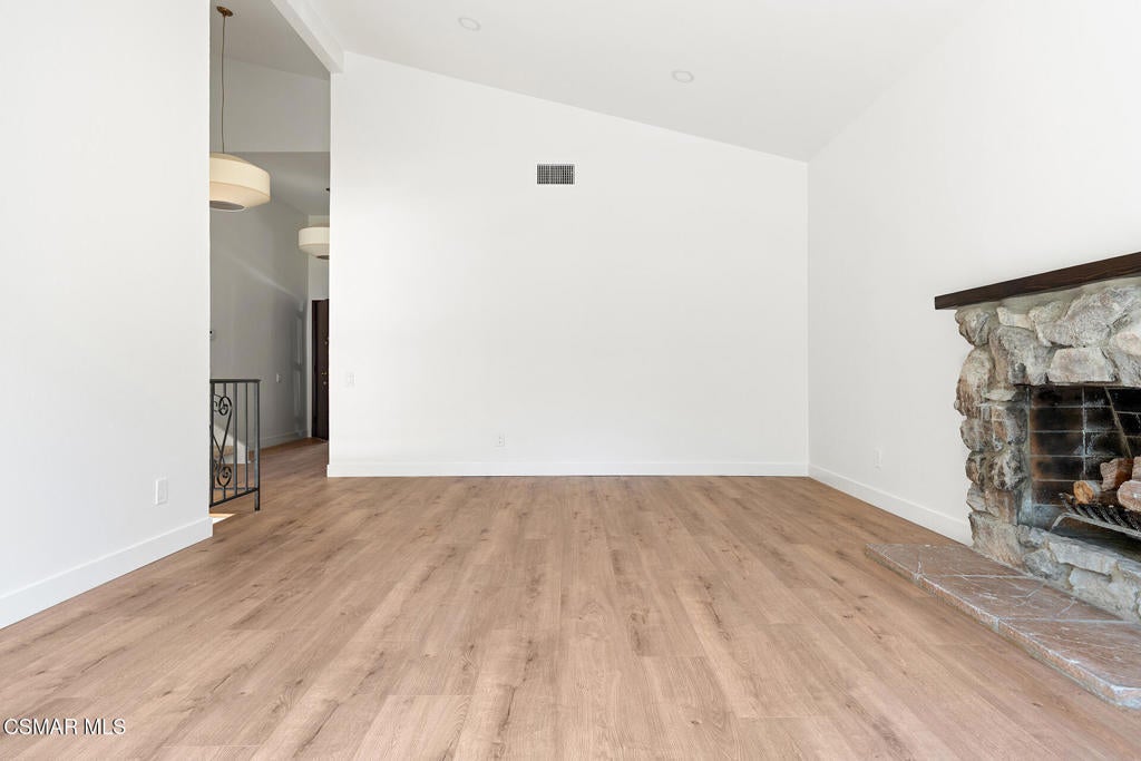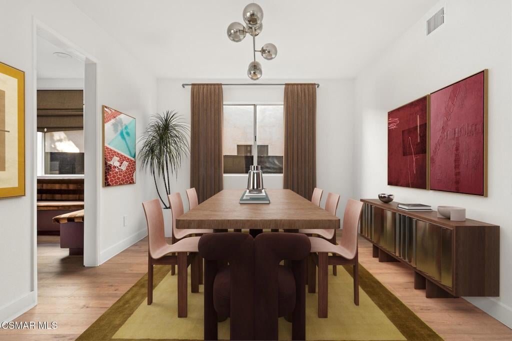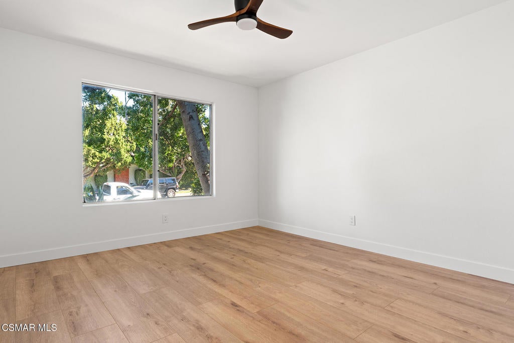 Tucked into one of Tarzana's most desirable neighborhoods, this fully transformed 4-bedroom, 3-bath home offers 2,273 square feet of thoughtfully updated living space--designed for real life, real gatherings, and the next chapter.From the moment you arrive, the deep navy mid-century exterior, chrome house numbers, and statement lighting set the tone. The double front doors open to soaring ceilings and dramatic West Elm lantern fixtures that immediately anchor the space with warmth and intention.Inside, the home unfolds with a clean, modern aesthetic layered over its natural 70's architecture. Acoustic ceilings have been smoothed. The entire interior and exterior have been freshly painted. New luxury European laminate flooring grounds the main living areas, while plush new carpet adds comfort upstairs. Modern baseboards run throughout the home, giving every room a crisp, finished feel. A brand-new roof and HVAC system bring peace of mind that goes far beyond cosmetics.The formal living room features high ceilings and a reimagined fireplace with a custom West Elm mantel--now a true focal point and an inviting place to gather. Recessed lighting brightens the space and enhances the open flow between living and dining.The kitchen blends function and personality. Freshly painted cabinetry with new wood hardware, a new sink, faucet, and dishwasher, and glazed countertops create a clean foundation. A custom-built bench upholstered in luxe fabric turns the dine-in area into the spot for weekday breakfasts, homework sessions, and casual dinners. Just beyond, the formal dining room--with its new statement fixture--is ready for holidays and celebrations.The layout offers flexibility that modern families need. A main-floor bedroom and full bath provide the perfect setup for guests, a home office, or extended family.Upstairs, you'll find the private sleeping quarters: the primary suite along with two additional bedrooms. All three bedrooms feature new carpet, modern baseboards, and high-tech ceiling fans with customizable settings and lighting temperature for personalized comfort. The result is simple, clean, and move-in ready--spaces that feel fresh now but flexible enough to evolve as life changes.All three bathrooms have been completely gutted and rebuilt with modern tile showers, updated vanities, new plumbing fixtures, and sleek sliding glass doors. The primary bath leans sophisticated with darker grout and elevated finishes. The hall bath brings a playful, youthful energy--fresh, functional, and designed with family living in mind.Step outside and the backyard delivers what so many families are looking for--usable space. A patio built for outdoor dining, a large shade tree that makes afternoons comfortable, and a versatile rock lounge area ideal for a fire pit, play space, or evening entertaining. Fresh planters and a newly painted block wall enclose the yard, creating privacy and warmth.Nearly every surface has been updated or replaced. The result is a clean, modern home that honors its mid-century roots while offering today's convenience. It's move-in ready, yet neutral enough to layer in your own art, furniture, and personality.This is the kind of home where birthday candles are blown out in the dining room, kids run between the family room and backyard, and friends linger long after dinner.In Tarzana, fully updated, with this kind of space and flow--it's not just a remodel. It's a reset.