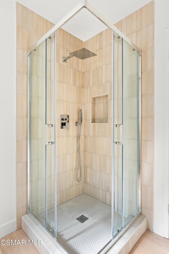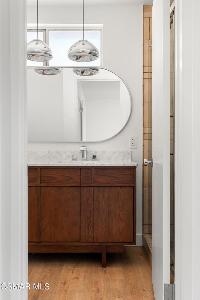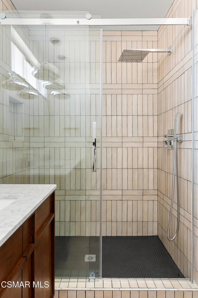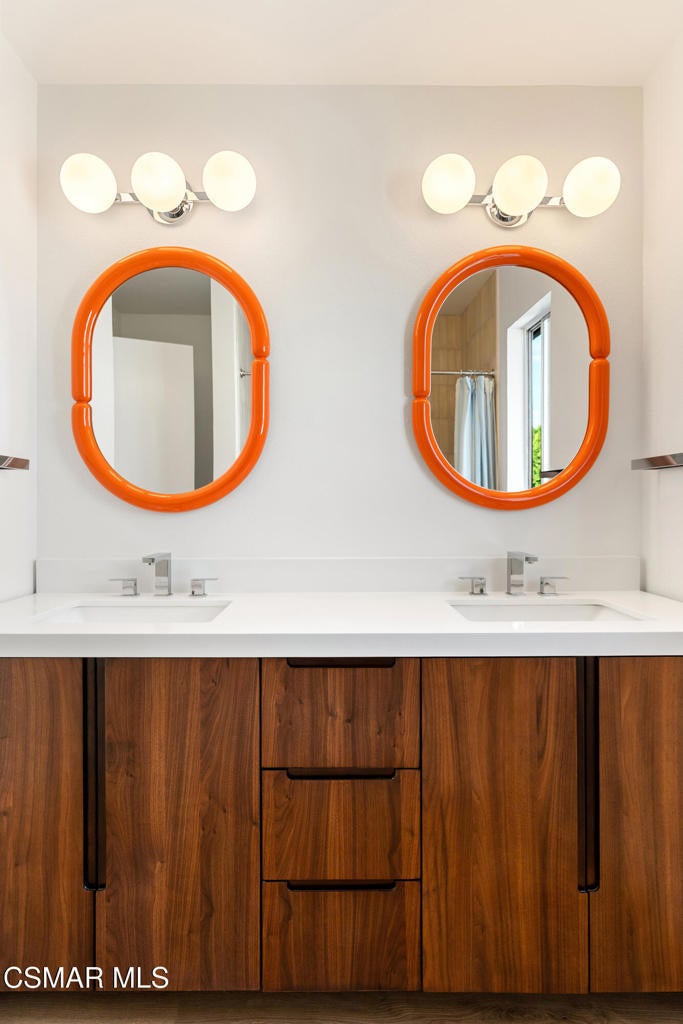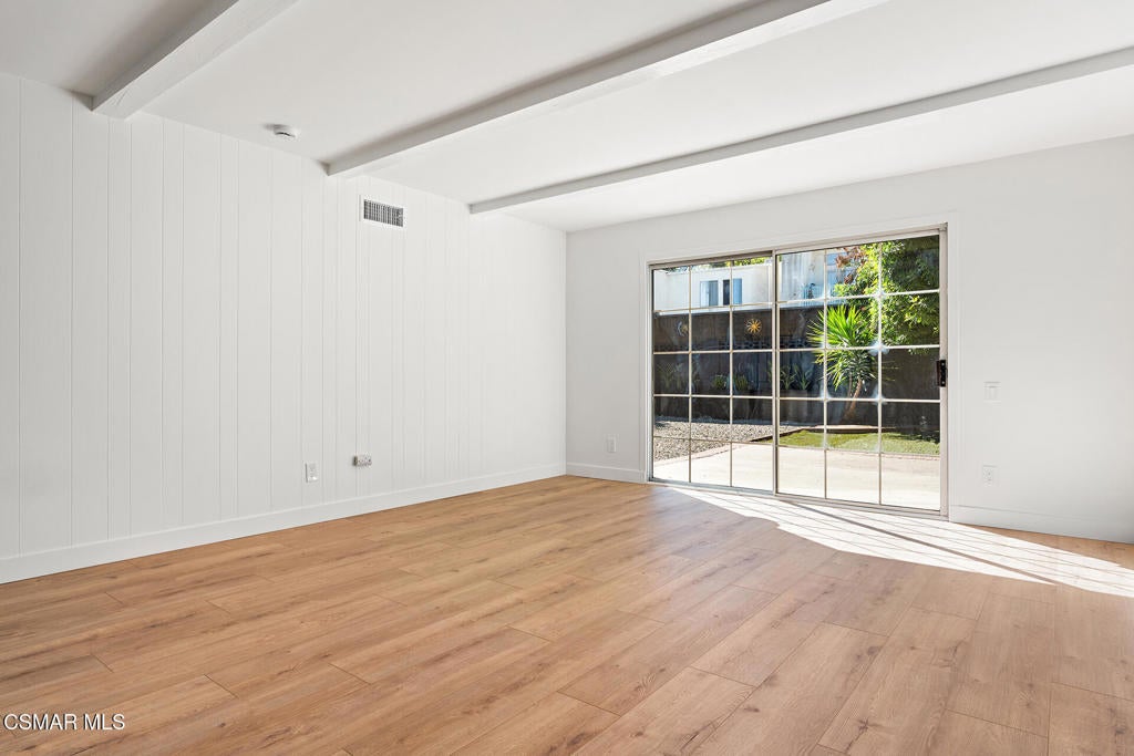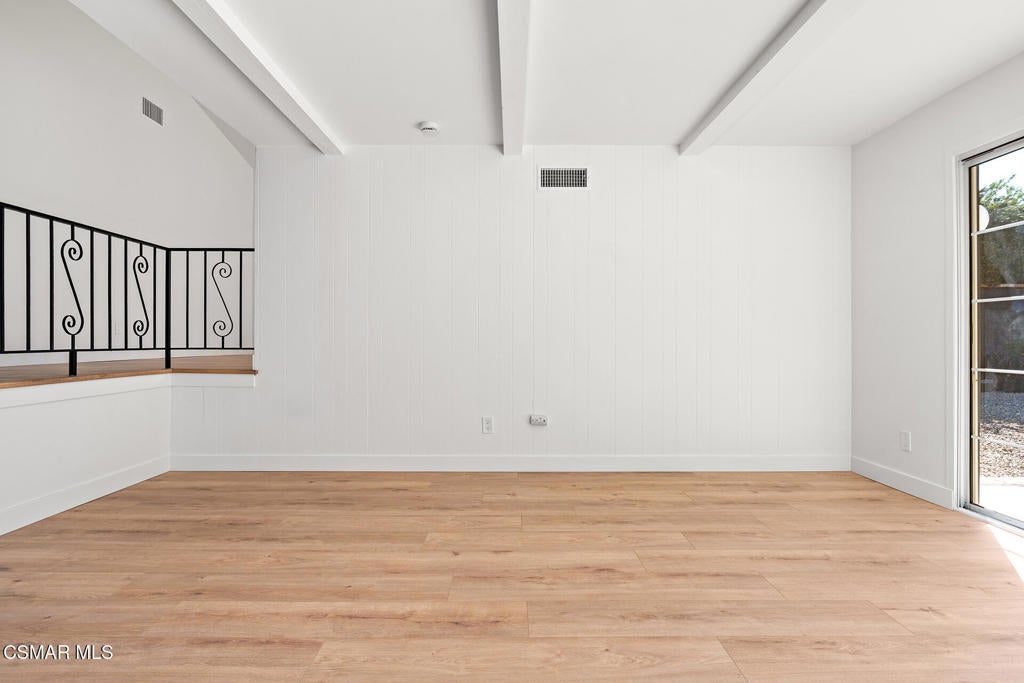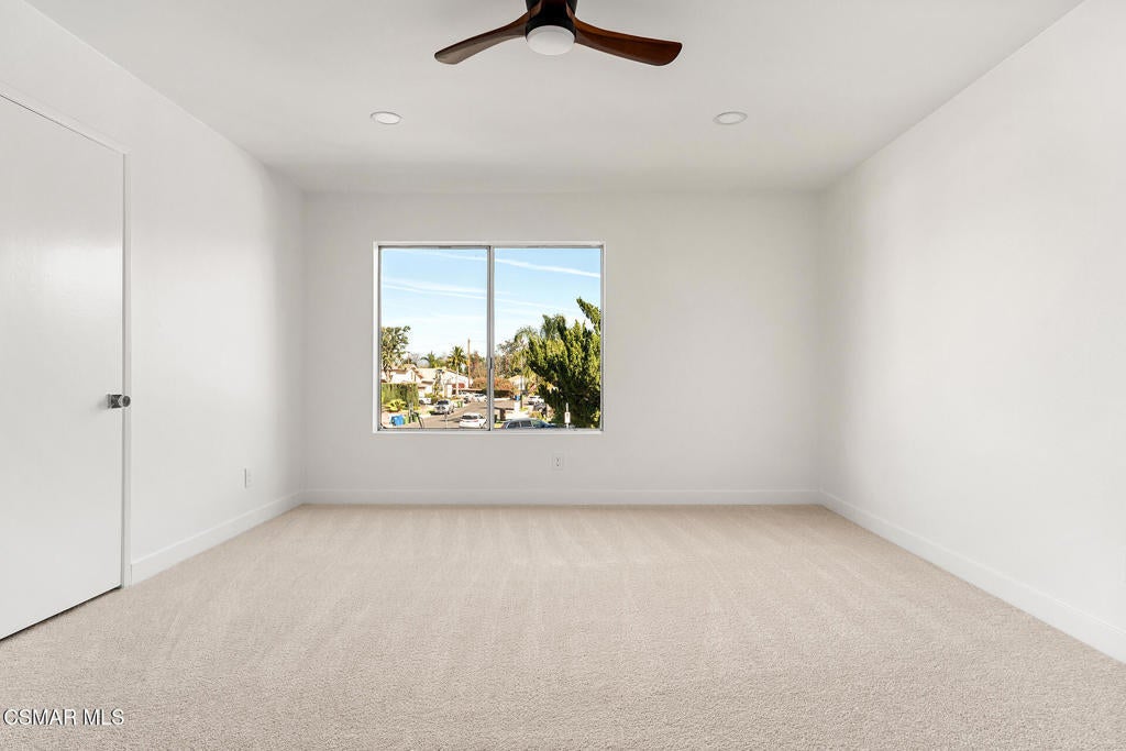 Tucked into one of Tarzana's most desirable neighborhoods, this fully transformed 4-bedroom, 3-bath home offers 2,273 square feet of thoughtfully updated living space--designed for real life, real gatherings, and the next chapter.From the moment you arrive, the deep navy mid-century exterior, chrome house numbers, and statement lighting set the tone. The double front doors open to soaring ceilings and dramatic West Elm lantern fixtures that immediately anchor the space with warmth and intention.Inside, the home unfolds with a clean, modern aesthetic layered over its natural 70's architecture. Acoustic ceilings have been smoothed. The entire interior and exterior have been freshly painted. New luxury European laminate flooring grounds the main living areas, while plush new carpet adds comfort upstairs. Modern baseboards run throughout the home, giving every room a crisp, finished feel. A brand-new roof and HVAC system bring peace of mind that goes far beyond cosmetics.The formal living room features high ceilings and a reimagined fireplace with a custom West Elm mantel--now a true focal point and an inviting place to gather. Recessed lighting brightens the space and enhances the open flow between living and dining.The kitchen blends function and personality. Freshly painted cabinetry with new wood hardware, a new sink, faucet, and dishwasher, and glazed countertops create a clean foundation. A custom-built bench upholstered in luxe fabric turns the dine-in area into the spot for weekday breakfasts, homework sessions, and casual dinners. Just beyond, the formal dining room--with its new statement fixture--is ready for holidays and celebrations.The layout offers flexibility that modern families need. A main-floor bedroom and full bath provide the perfect setup for guests, a home office, or extended family.Upstairs, you'll find the private sleeping quarters: the primary suite along with two additional bedrooms. All three bedrooms feature new carpet, modern baseboards, and high-tech ceiling fans with customizable settings and lighting temperature for personalized comfort. The result is simple, clean, and move-in ready--spaces that feel fresh now but flexible enough to evolve as life changes.All three bathrooms have been completely gutted and rebuilt with modern tile showers, updated vanities, new plumbing fixtures, and sleek sliding glass doors. The primary bath leans sophisticated with darker grout and elevated finishes. The hall bath brings a playful, youthful energy--fresh, functional, and designed with family living in mind.Step outside and the backyard delivers what so many families are looking for--usable space. A patio built for outdoor dining, a large shade tree that makes afternoons comfortable, and a versatile rock lounge area ideal for a fire pit, play space, or evening entertaining. Fresh planters and a newly painted block wall enclose the yard, creating privacy and warmth.Nearly every surface has been updated or replaced. The result is a clean, modern home that honors its mid-century roots while offering today's convenience. It's move-in ready, yet neutral enough to layer in your own art, furniture, and personality.This is the kind of home where birthday candles are blown out in the dining room, kids run between the family room and backyard, and friends linger long after dinner.In Tarzana, fully updated, with this kind of space and flow--it's not just a remodel. It's a reset.