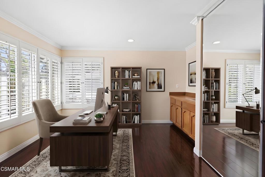 Located on a quiet cul-de-sac street in the highly desirable Morrison Ranch community of Agoura Hills, this spacious two story home offers four bedrooms, three bathrooms, and a wonderful opportunity to create your ideal living space. Known for its tree lined streets, strong sense of community, and access to scenic parks and hiking trails, Morrison Ranch is also part of the award winning Las Virgenes Unified School District.A grand staircase welcomes you upon entry, leading into a light filled floor plan designed for both everyday living and entertaining. The home features multiple living areas, including a bright living room with a fireplace and bar and an inviting family room with its own fireplace, offering comfortable spaces for relaxing or gathering with friends and family. A formal dining room provides the perfect setting for holidays and special occasions. The kitchen is equipped with granite countertops, cabinetry with pull out shelves, stainless steel appliances, and generous storage. A charming breakfast nook overlooks the backyard, creating an ideal spot for casual meals or morning coffee.The flexible floor plan includes a bedroom and full bathroom on the main level, ideal for guests, a home office, or multigenerational living. Upstairs, the expansive primary suite features a sitting area/office with a wet bar along with large walk-in closet, and a spacious en-suite bathroom, a soaking tub, and a separate shower. Two additional bedrooms share a hall bathroom.Step outside to a private backyard retreat designed for enjoying the Southern California lifestyle. The space features a sparkling pool, along with multiple areas for outdoor dining, lounging, and entertaining. The home also features solar for added energy efficiency.With its generous layout, desirable location, and incredible potential, this Morrison Ranch home offers a rare opportunity to create something truly special.