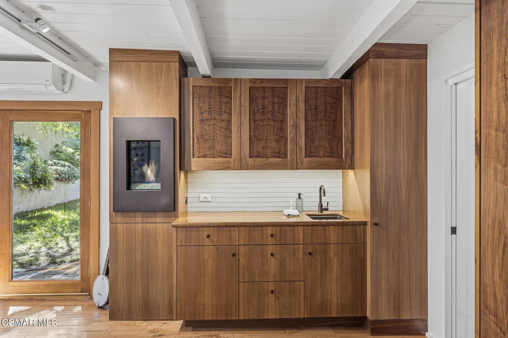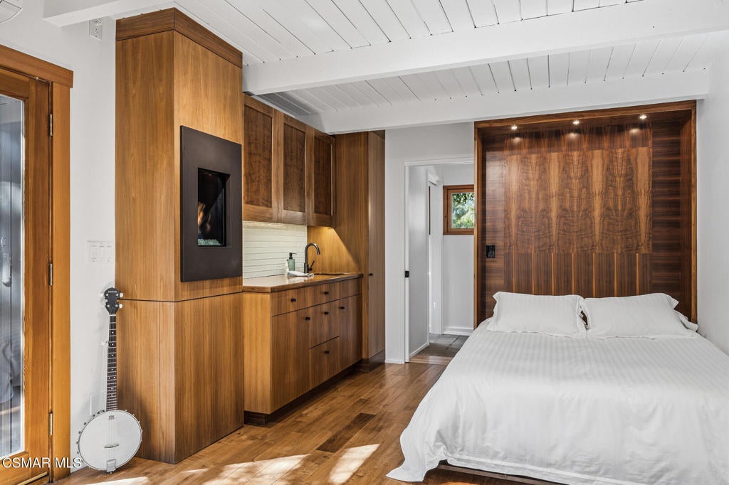 PRIVATE RETREATWelcome to a ''Jewel Box'' of a home, includes high-end finishes, set back from the street, that blends modern comfort within the sanctuary of mature landscaping. The open concept layout invites natural light pulling ones view into the gardens. Relax and read a good book on the tranquil front patio covered with paver stones overlooking the lush landscape.Antique travertine stone fireplace, limestone bathroom, and a newly refaced kitchen all blend together to create a detailed sense of luxury and care. Perfect for relaxing and entertaining. Another added feature is the Tesla charging unit conveniently located along the beautiful paver driveway.The detached ADU provides endless possibilities. Ideal for guests, home office, or rental income. The space includes quarter-sawn walnut cabinetry and a built-in Murphy bed a gas fireplace, kitchenette and private bath.Proximity to nature and amenities: within two blocks are hiking and biking trails that can eventually take you to the ocean views to the hills behind the house. Just a five-minute drive away is Sycamore Canyon where you can bike all the way to the ocean. After a enjoyable day at the beach , hike or ride you can cool off with the outdoor shower. Also enjoy the convenience of restaurants, shopping and schools minutes away.Don't miss this rare opportunity of a lovely home environment that combines luxury, comfort, local amenities, and the allure of nature. Schedule your private tour today!