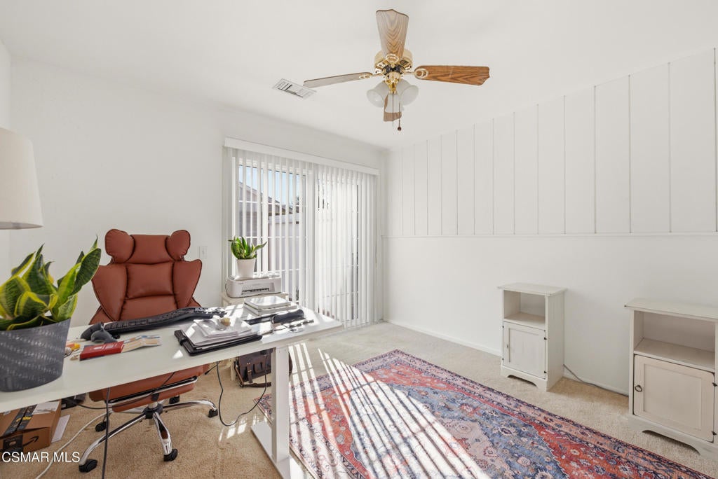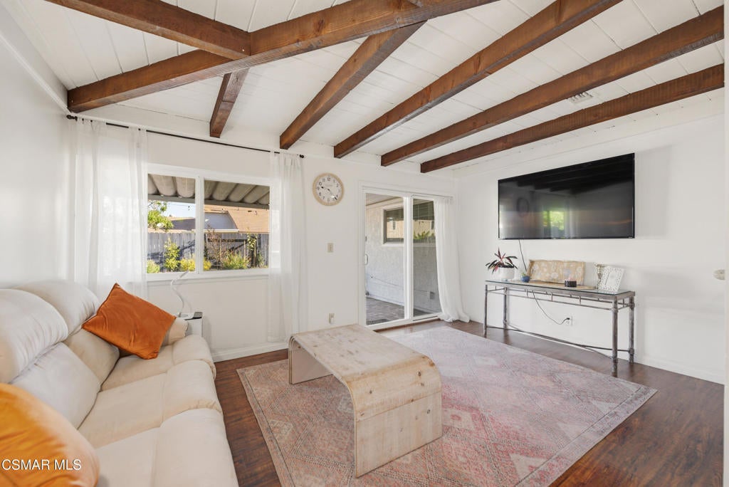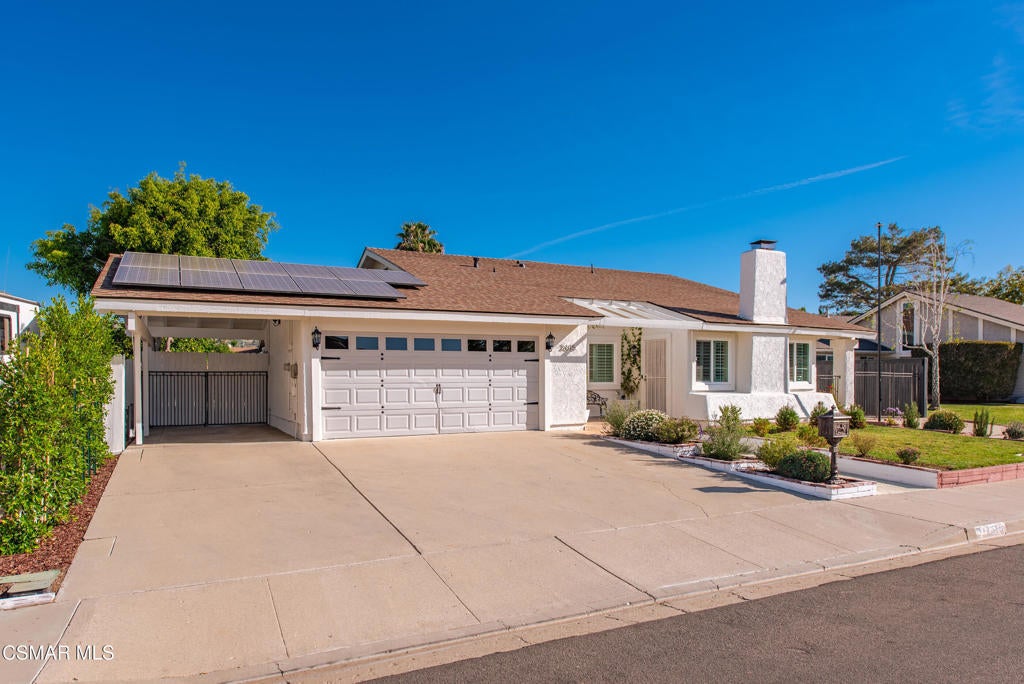 Welcome to this beautifully maintained single-story home in the highly sought-after Arneill Ranch community of Camarillo. Offering great curb appeal with freshly painted exterior and all-new landscaping, this light and bright home features a versatile floor plan designed for comfortable everyday living and easy entertaining.Step inside to soaring ceilings in the living room, complemented by an adjacent dining area, creating an open and inviting atmosphere. The kitchen offers abundant cabinetry, a charming breakfast nook, and flows seamlessly into the family room highlighted by stunning wood beam ceilings--adding warmth and character to the space.The spacious primary suite features direct access to the backyard and an ensuite bathroom with dual vanities, a dedicated makeup vanity, and ample storage. Two additional guest bedrooms are well-sized and share a full hall bathroom.A unique bonus loft space above the garage provides flexible use--ideal for a home office, gym, or creative studio.Enjoy outdoor living in the private backyard with a covered patio, mature fruit trees, and a grassy area perfect for relaxing or entertaining. The side yard offers potential RV parking, while additional highlights include a 2-car garage, carport, and extended driveway parking. Leased solar panels add energy efficiency and cost savings.Located in a desirable Camarillo neighborhood close to parks, shopping, dining, and top-rated schools, this home offers an exceptional opportunity you won't want to miss.
