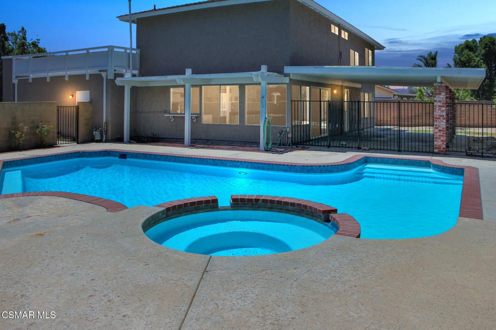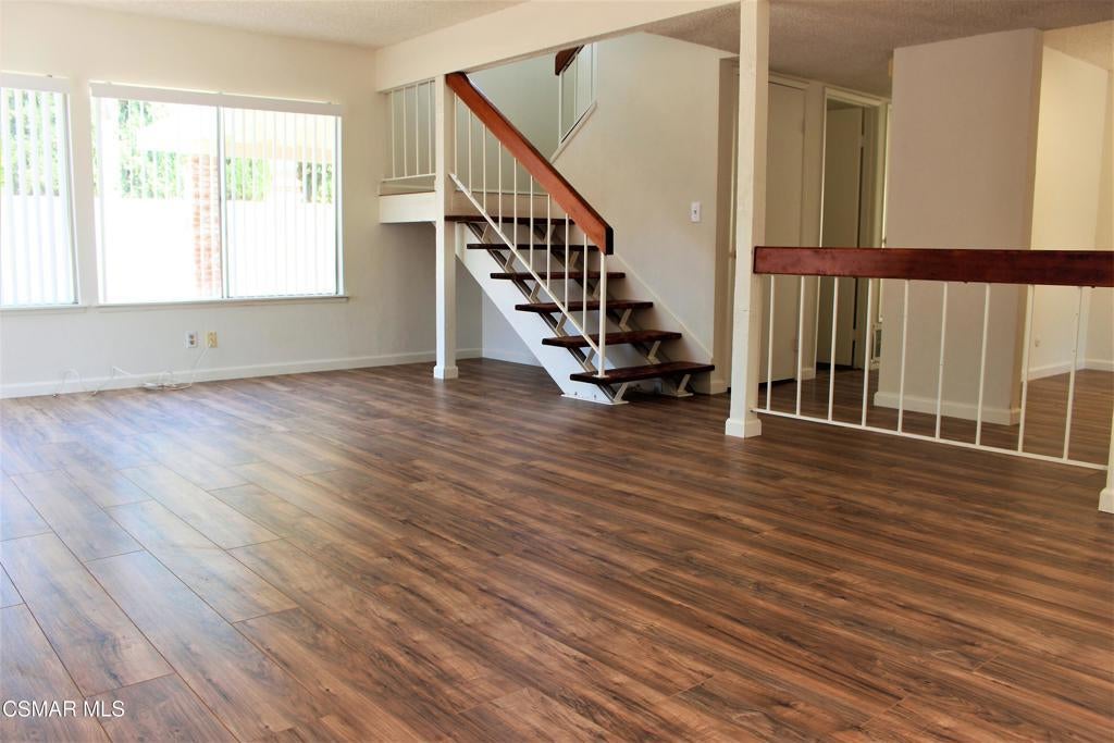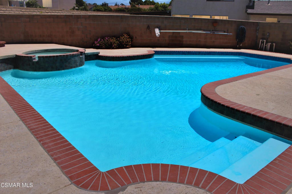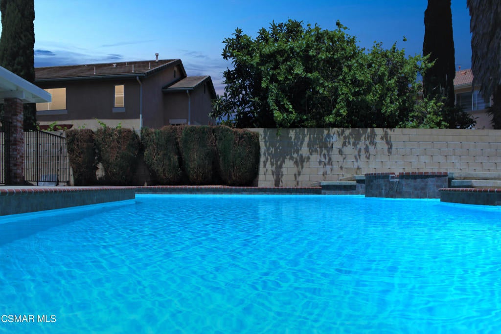 Welcome to this beautiful Simi Valley 4 bed, 2.5 bath cul-de-sac home. As you walk up you will notice the lovely brick porch entry. The downstairs is graced with an open floor plan, cozy fireplace, and new wood-like flooring. The kitchen is equipped with a brand new stainless-steel gas range and dishwasher, quartz counter tops, recessed lighting, and opens to the living room with 180 degree views of the backyard. Off the kitchen there is also a quaint formal dining room and formal living room. In the master retreat there are updated dual vanities, a spacious walk-in closet, and a roof top deck with views of the mountains, perfect to enjoy a cup of coffee on. Get ready for summer in your large backyard oasis with a sparkling pool and spa, fire pit, and fruit trees. There is also a large 2-car garage with direct access, washer/dryer hook ups, and brand new Central A/C. Located close to hiking and biking trails, shopping, and fwy access. This is a great place to call home!