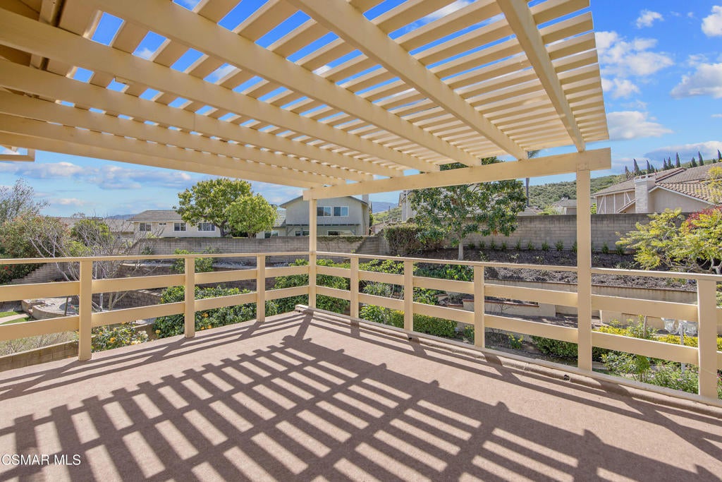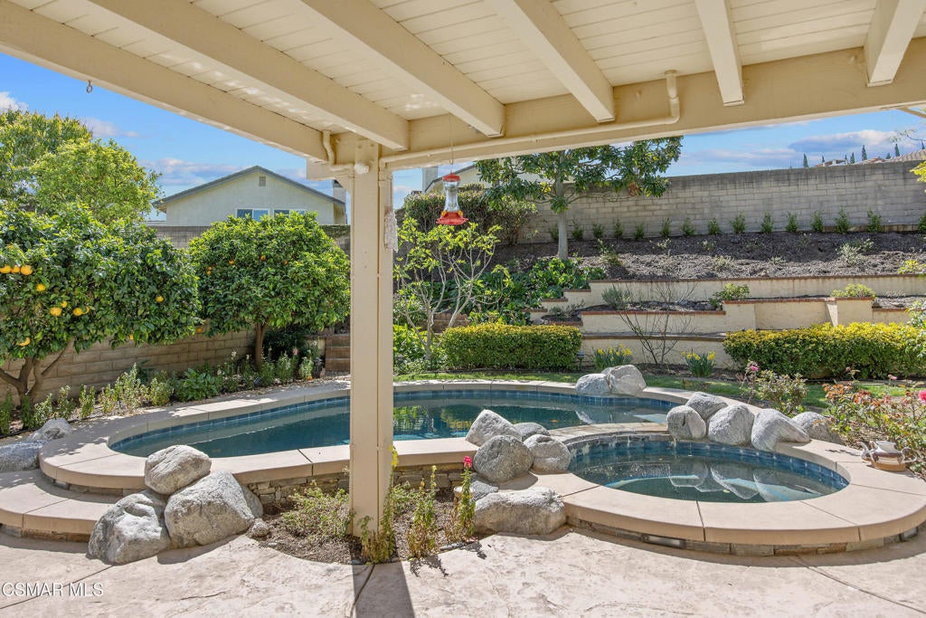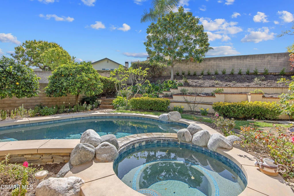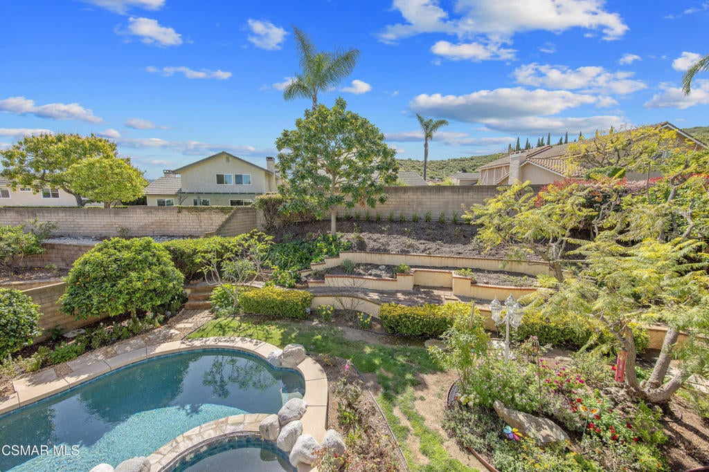 Welcome to this exceptional Oakridge Estates residence, perfectly positioned at the top of a quiet cul-de-sac in one of Newbury Park's most desirable communities. Offering over 2,100 square feet of thoughtfully designed living space, this 4-bedroom, 3-bathroom home blends comfort, elegance, and privacy in a truly serene setting.Step inside to soaring vaulted ceilings and a light-filled, open floor plan featuring a formal living room, dining room, and a beautifully updated kitchen that flows seamlessly into the family room--creating the ideal space for both everyday living and entertaining. A highly sought-after downstairs bedroom and full bath provide flexibility for guests, extended family, or a private office.The backyard is a true retreat--lush, tranquil, and garden-inspired with tiered planters, a sparkling pool and spa, and a covered patio perfect for relaxing or hosting. Upstairs, the spacious primary suite offers a private balcony with mountain views, creating the perfect place to unwind and take in the peaceful surroundings.Additional highlights include three generously sized upstairs bedrooms, a well-appointed floor plan, a spacious two-car attached garage, and paid for & owned solar, providing long-term energy efficiency and cost savings.Ideally located near top-rated schools, Peppertree Park, hiking trails and convenient shopping, this home offers the perfect blend of privacy, comfort, and accessibility.This is a rare opportunity to own a private, view-oriented home in the highly sought-after Oakridge Estates community--where lifestyle, location, and luxury come together.