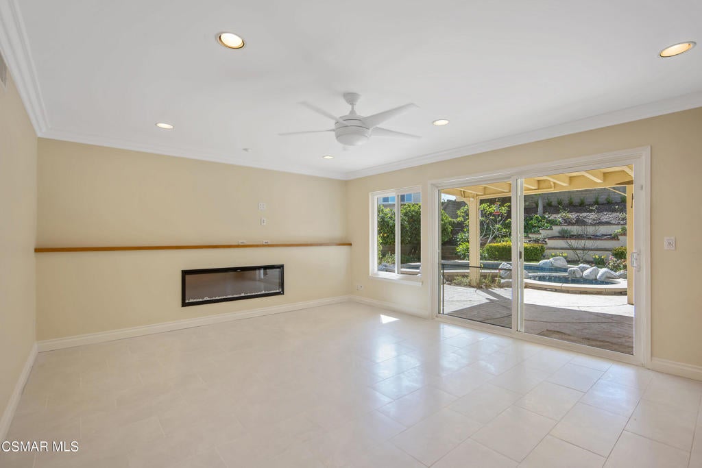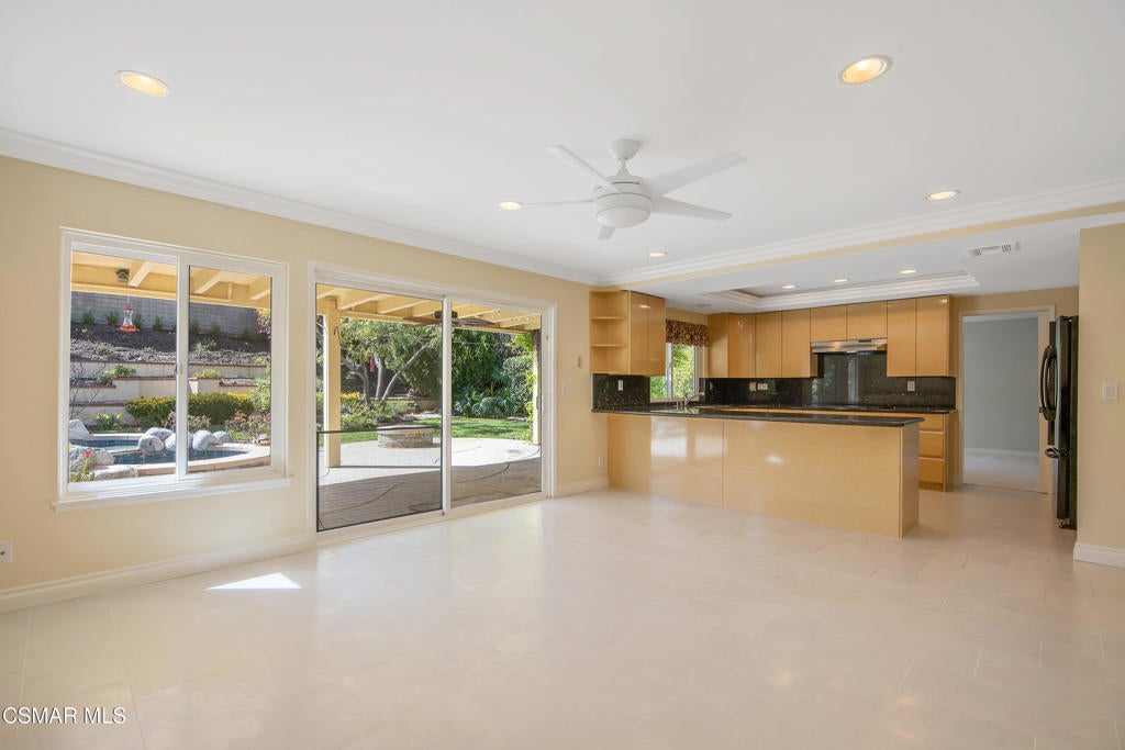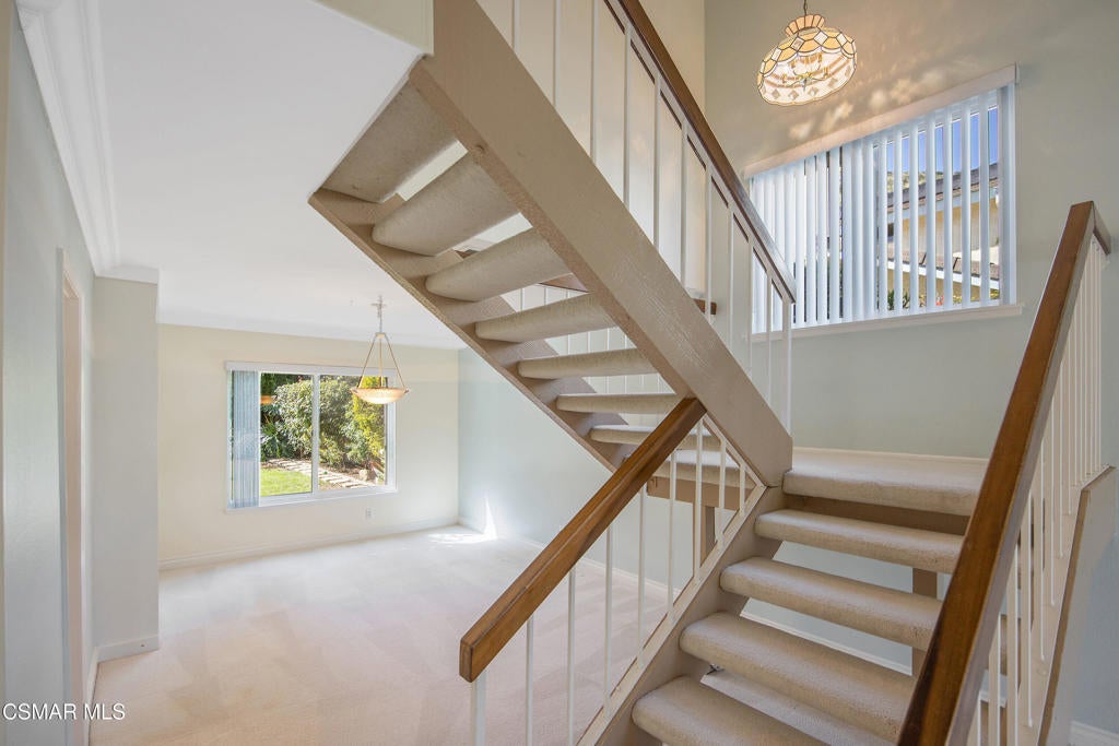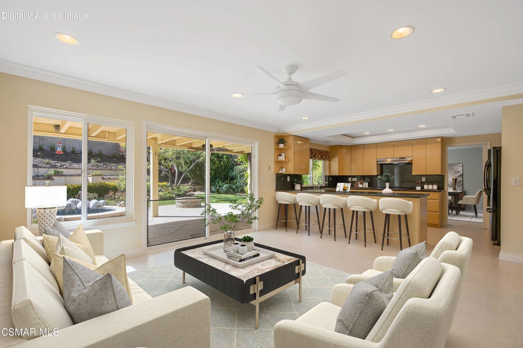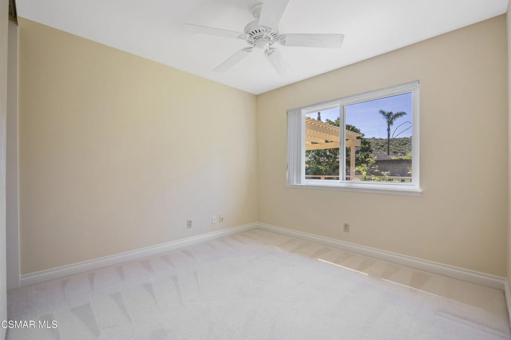 Welcome to this exceptional Oakridge Estates residence, perfectly positioned at the top of a quiet cul-de-sac in one of Newbury Park's most desirable communities. Offering over 2,100 square feet of thoughtfully designed living space, this 4-bedroom, 3-bathroom home blends comfort, elegance, and privacy in a truly serene setting.Step inside to soaring vaulted ceilings and a light-filled, open floor plan featuring a formal living room, dining room, and a beautifully updated kitchen that flows seamlessly into the family room--creating the ideal space for both everyday living and entertaining. A highly sought-after downstairs bedroom and full bath provide flexibility for guests, extended family, or a private office.The backyard is a true retreat--lush, tranquil, and garden-inspired with tiered planters, a sparkling pool and spa, and a covered patio perfect for relaxing or hosting. Upstairs, the spacious primary suite offers a private balcony with mountain views, creating the perfect place to unwind and take in the peaceful surroundings.Additional highlights include three generously sized upstairs bedrooms, a well-appointed floor plan, a spacious two-car attached garage, and paid for & owned solar, providing long-term energy efficiency and cost savings.Ideally located near top-rated schools, Peppertree Park, hiking trails and convenient shopping, this home offers the perfect blend of privacy, comfort, and accessibility.This is a rare opportunity to own a private, view-oriented home in the highly sought-after Oakridge Estates community--where lifestyle, location, and luxury come together.