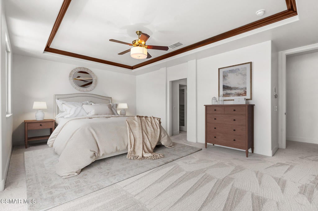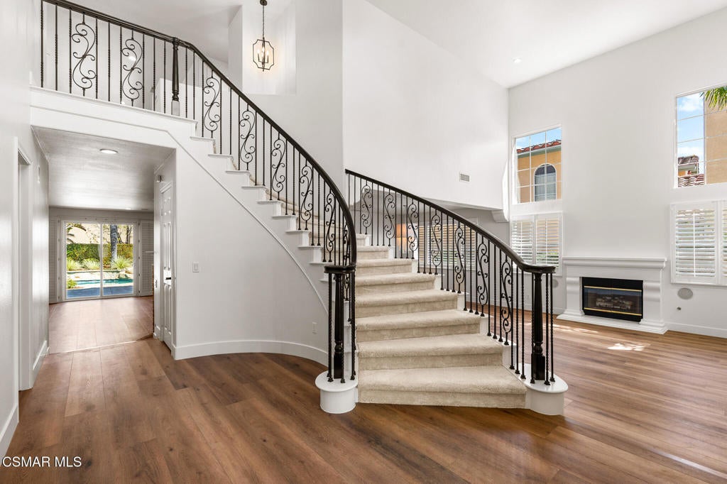 This property is a dream come true for a large family! The curb appeal on this cul-de-sac location draws you in even as you drive by. From the moment you walk through the front door and step into the foyer you notice the soaring ceilings with abundant windows offering wonderful light and bright ambiance! The residence offers 5 bedrooms with 3 full and 1 half bathroom PLUS lower level, double-door entry office AND upper level game room with a most desirable floorplan. (Some photos are virtually staged). The primary suite has its own 'wing' featuring brand new neutral carpeting, slider to viewing balcony, coffered ceiling, dual walk-in closets, en-suite bathroom with oversized stall shower, dual vanity, spa tub and private water closet with window to exterior. The remaining three upstairs bedrooms are all spacious and include brand new neutral carpeting. The convenient hall bath has a dual vanity and a separate water closet with toilet and shower/tub combination. The 5th bedroom is downstairs with a private en-suite bathroom and is great as a guest room. The powder room has a pedestal sink, commode and rounds out the bathrooms. There is a formal living room with one of two fireplaces, formal dining room with custom chandelier and wine fridge, lastly the family room with second fireplace, built-in desk, additional storage and a slider to the rear yard. The kitchen with breakfast room and bar, walk-in pantry also has new double ovens (2025), new Subzero refrigerator (2021), beverage fridge (2026), new Bosch dishwasher (2024). In addition, CHECK OUT THIS LIST of other amenities: *interior paint throughout (2026), *new neutral carpeting (2026) *new luxury vinyl plank flooring (2026) *fresh exterior paint including trim details (2023) *HVAC, water heater and pool pump replaced in last few years. The rear yard with inviting, sparking pool and waterfall spa is a great space to play, relax, entertain and enjoy our wonderful weather: upgrades include colorful landscape with recently replaced BBQ grill, sprinklers and low voltage lighting (2024) *dual-paned windows, *Plantation shutters, *indoor laundry room, *new hardware on all raised-panel interior doors, *concrete shake roof ALL THIS AND SO MUCH MORE!