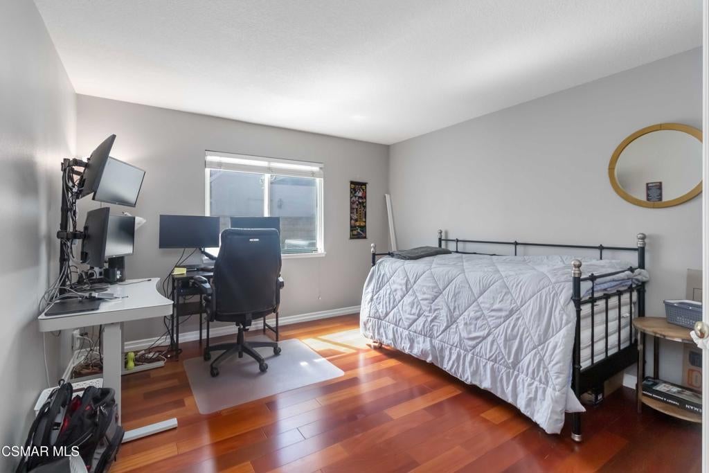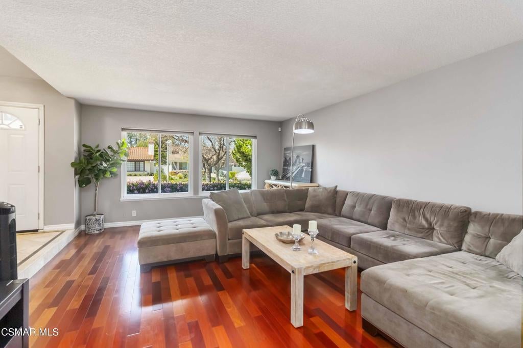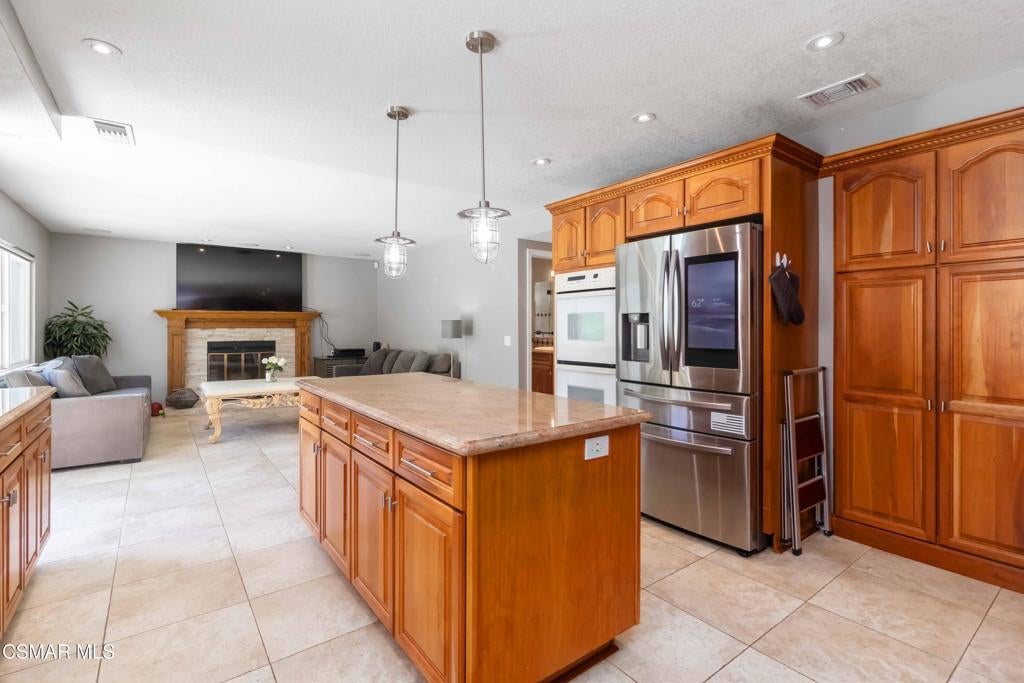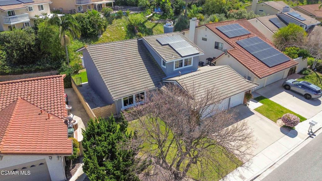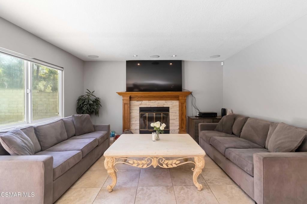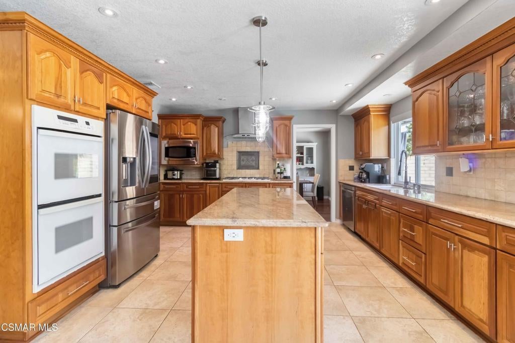 Welcome to this great home in Fountainwood East, a lovely community in Thousand Oaks. This spacious four-bedroom, three-bath residence offers approximately 2,600 sq. ft. of thoughtfully designed living space, perfectly situated on a desirable cul-de-sac. The heart of the home is the gourmet kitchen, featuring an oversized island, granite countertops, travertine backsplash, soft-close KraftMaid Cherry cabinets, stainless steel refrigerator, double oven, and gas cooktop. The adjoining family room boasts a cozy fireplace and views of the backyard. A desirable bedroom is conveniently located downstairs with a full bath showcasing granite countertops, a KraftMaid Cherry wood vanity, and travertine and porcelain tile finishes. Upstairs, the spacious primary suite features a large walk-in closet, a private balcony, and an adjoining bath. Two additional bedrooms complete the upper level. Step outside to the backyard, complete with an inviting pool, spa, and outdoor entertaining spaces--perfect for gatherings or relaxing in privacy. Located in the award-winning Conejo Valley School District, this home offers easy freeway access and is close to all that the Conejo Valley has to offer. A lovely home in a truly desirable neighborhood! Very Low HOA!