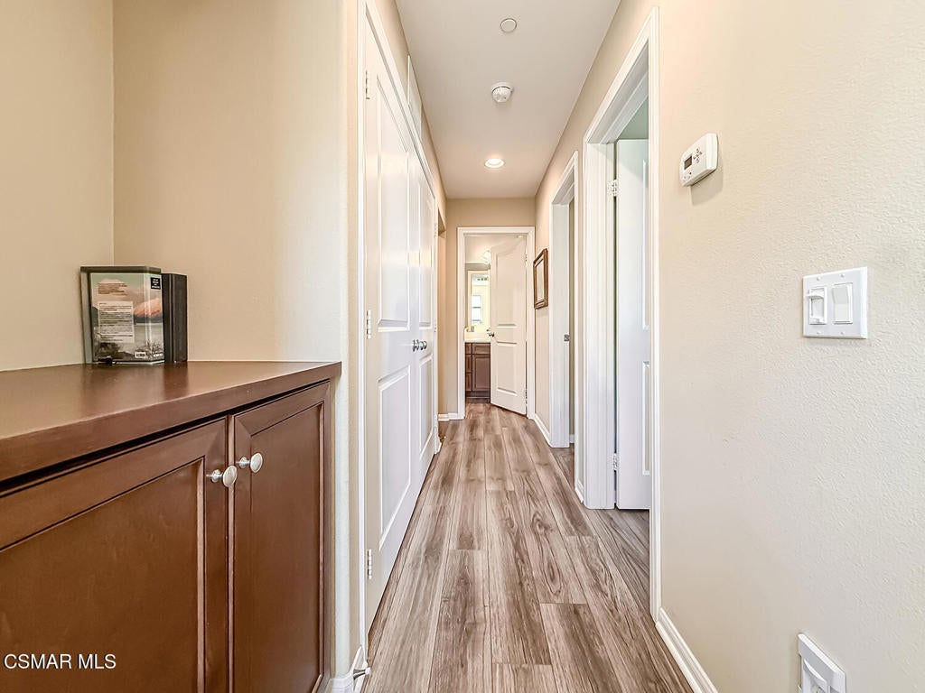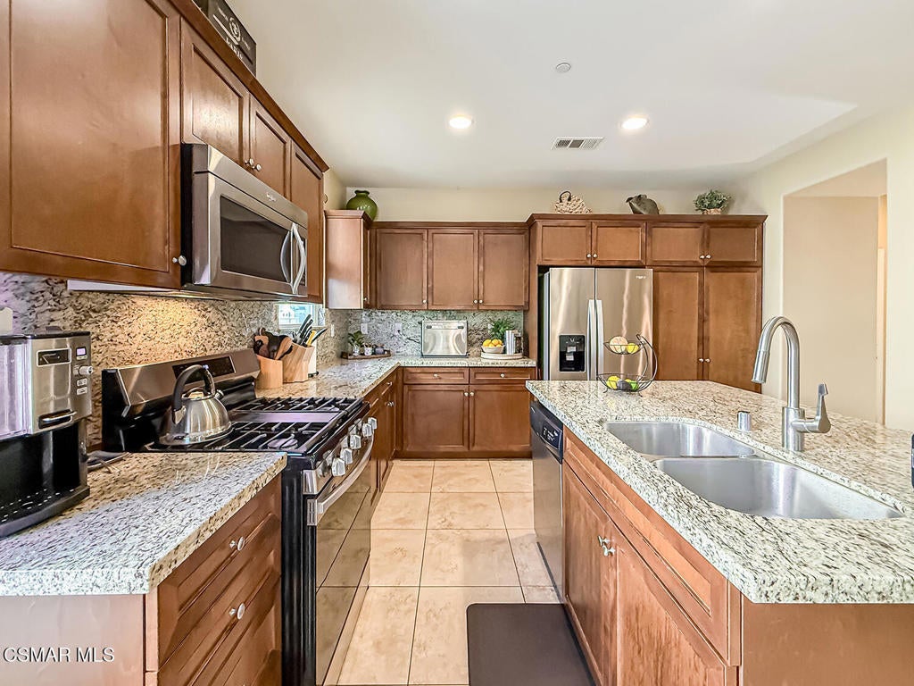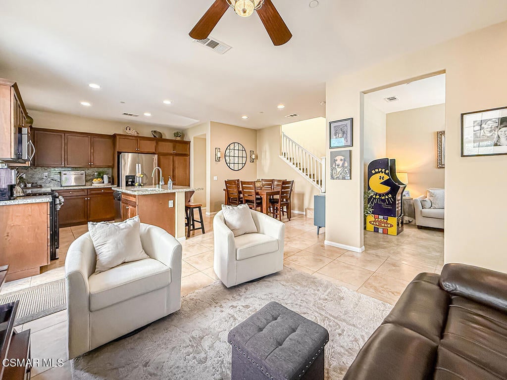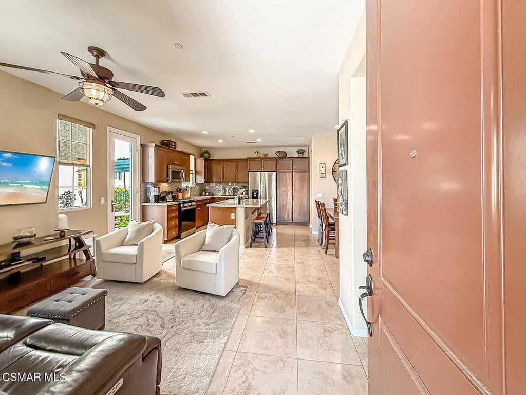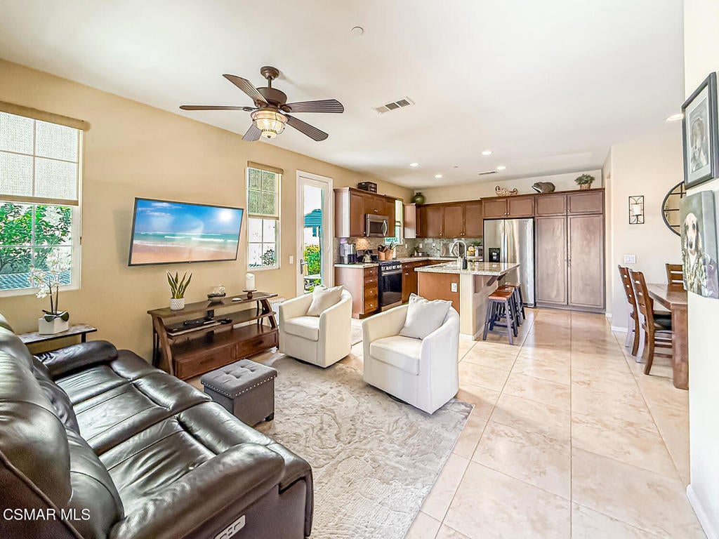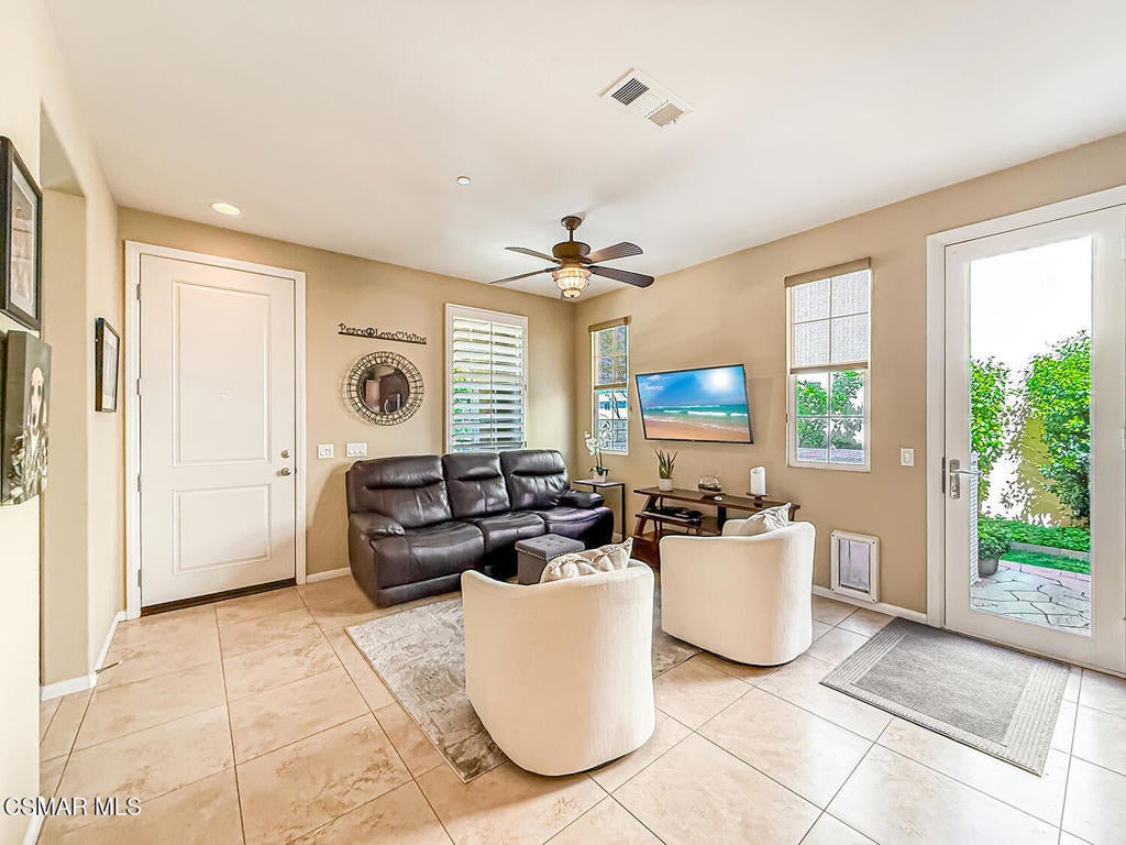 A Refined Tri-Pointe Residence with Whiteface Mountain Views -- Elevated Living in Central/West Simi ValleyDiscover a rare and sophisticated offering within one of Central Simi Valley's most charming and private enclaves--a beautifully appointed Tri-Pointe residence that effortlessly blends elevated design with everyday livability. Tucked inside a peaceful, self-contained community, this light-filled home welcomes you with a sense of calm, privacy, and understated elegance.Thoughtfully designed, the versatile floor plan features three spacious bedrooms upstairs, complemented by a main-level bedroom or flex space--ideal as a private office, guest suite, or multigenerational living option. Sunlight pours through the interiors, highlighting refined finishes, including custom 4-inch shutters that add both warmth and architectural polish.The kitchen presents a clean, modern aesthetic with newer appliances, sleek stainless-steel accents, and a seamless connection to the dining area. A glass door extends the living experience outdoors, revealing one of the largest and most inviting backyards in the community--a true private sanctuary. Designed for both entertaining and relaxation, the outdoor space showcases a generous paver patio, lush lawn, and curated landscaping. Mature plantings of lemon, plumeria, jasmine, and fuchsia create a vibrant yet tranquil retreat, while thoughtful additions such as a pet door and optional catio enhance everyday ease.Upstairs, durable flooring and an open, airy feel continue throughout. From the primary suite, enjoy picturesque views of Whiteface Mountain--an inspiring natural backdrop that elevates daily living and brings a sense of serenity right to your window.Perfectly positioned, this exceptional residence offers convenient access to top-rated schools, dining, grocery stores, specialty markets, and shopping. Outdoor enthusiasts will appreciate close proximity to the Arroyo Simi Equestrian Center, nearby parks, and easy access to the 118 freeway--making both recreation and commuting effortlessly accessible.Every detail of this home reflects a harmonious balance of style, comfort, and functionality--delivering a living experience that is both refined and inviting.